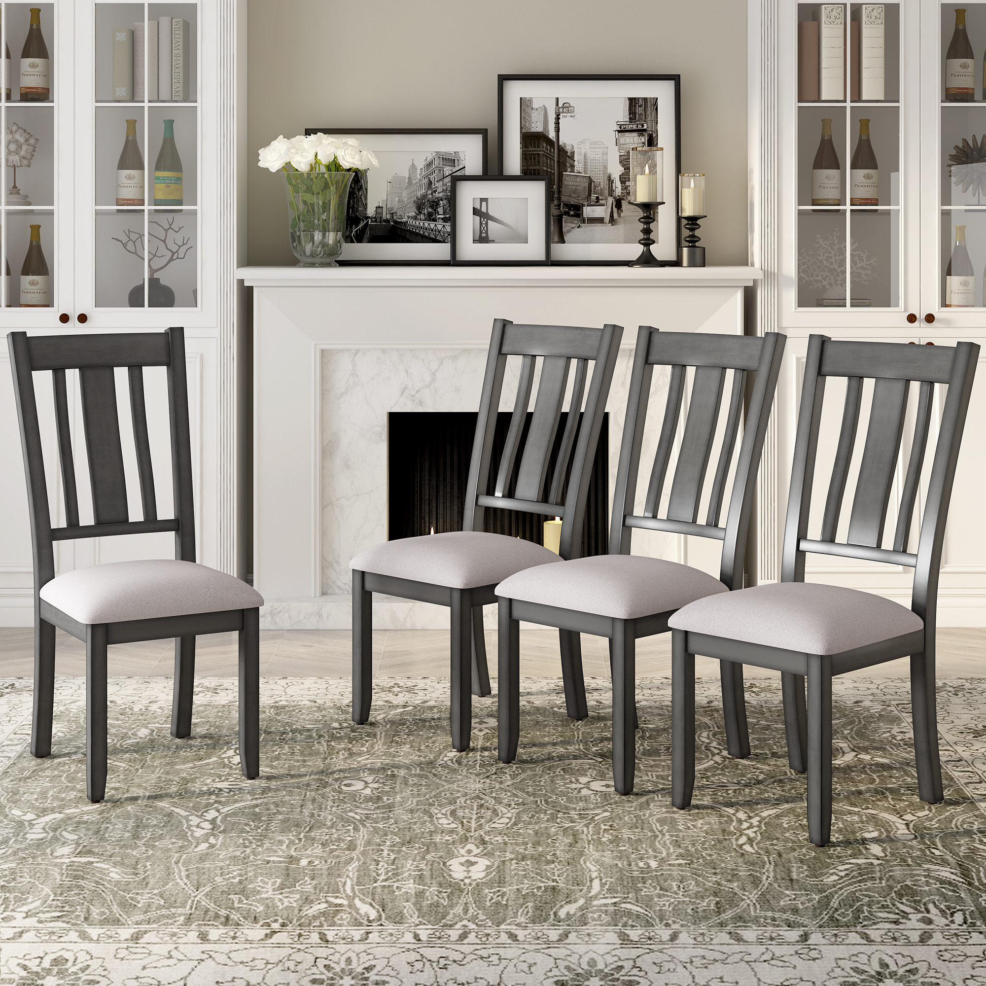 TREXM Industrial Style Wooden Dining Chairs with Ergonomic Design, Set of 4 (Gray)