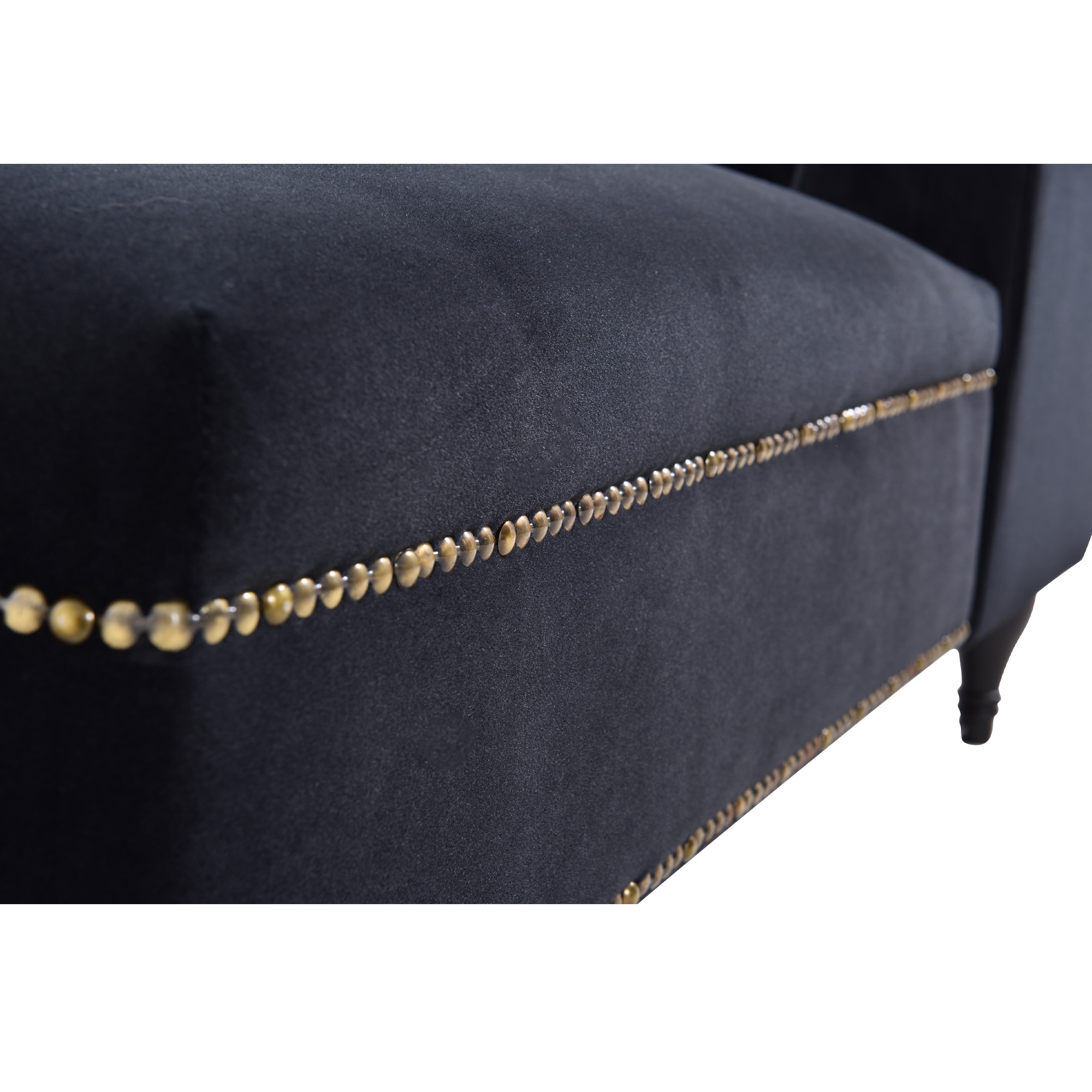 If comfort and style are what you're looking for, then this chaise lounge is a perfect choice. Designed with velvet fabric, we were obsessed with every detail - from the shape of the armrests to the perfect seating position - blending sturdy support with sinking softness. This chaise lounge exists to maximize your comfort. Thanks to its black color, this toffee chair blends seamlessly with almost any color scheme. The perfect addition to your home, our tufted right arm toffee chair allows you to read, chat and relax in a cozy little space. It's the perfect piece of furniture for everyone. This chaise lounge will require some assembly upon arrival.