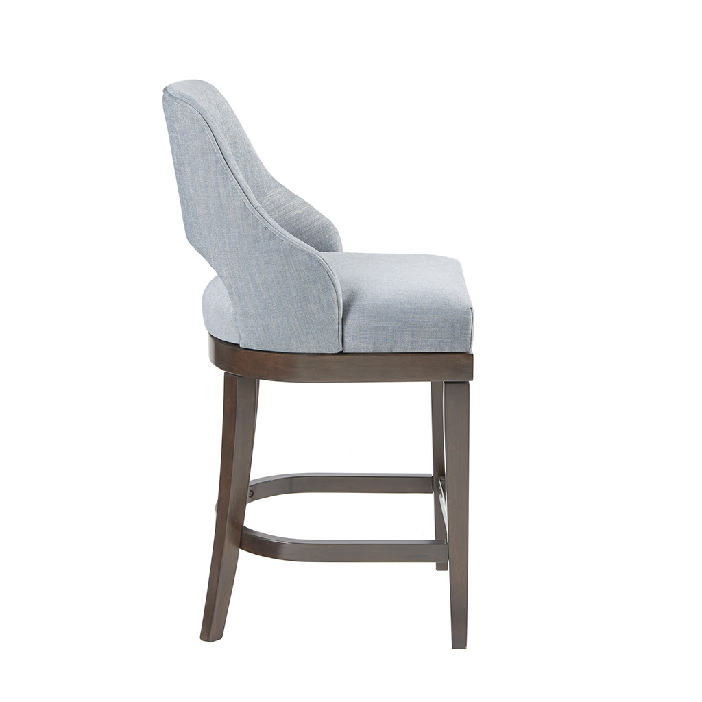 Long Descriptions | The Madison Park Jillian Counter Stool provides a simply stylish update to your dining area. This counter stool features an open back design and rectangular seat in beautiful blue upholstery. The straight rubber wood legs create a sturdy base and sport a Morocco finish to complete the look, while the silver kick plate protects the footrest from every day wear and tear. Elegantly crafted, this counter stool offers a stunning update that perfectly fits with any transitional dining room. Assembly is required. Max weight capacity: 300 lbs. |