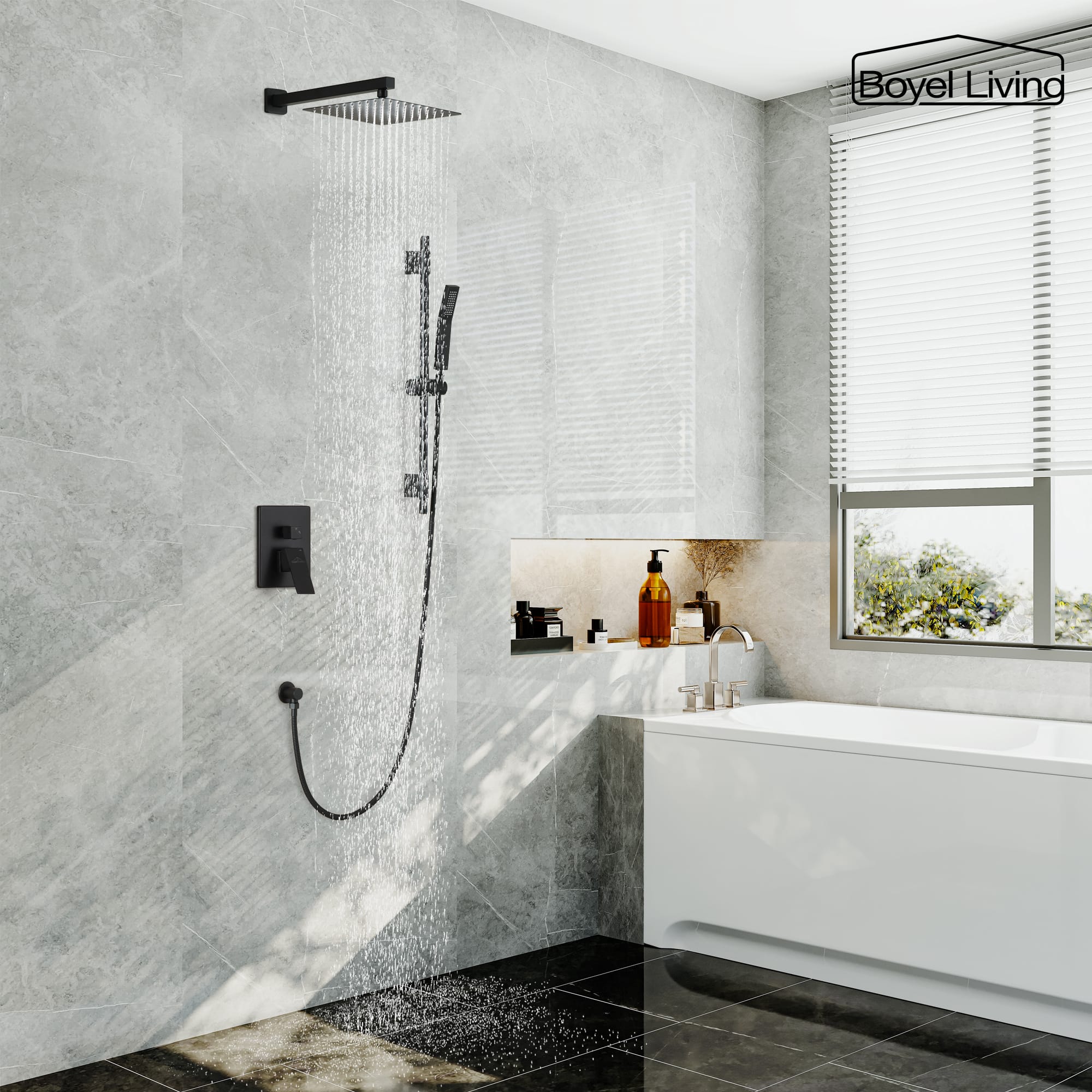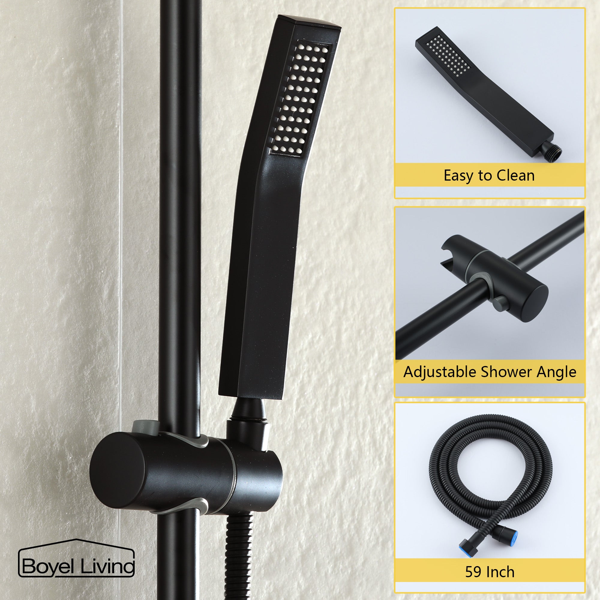 The Shower System is made of quality, durable brass. This stylish product features a rainfall shower head and handheld shower. The diverter allows you to switch from smoothing shower to manual operation with the push of a button.