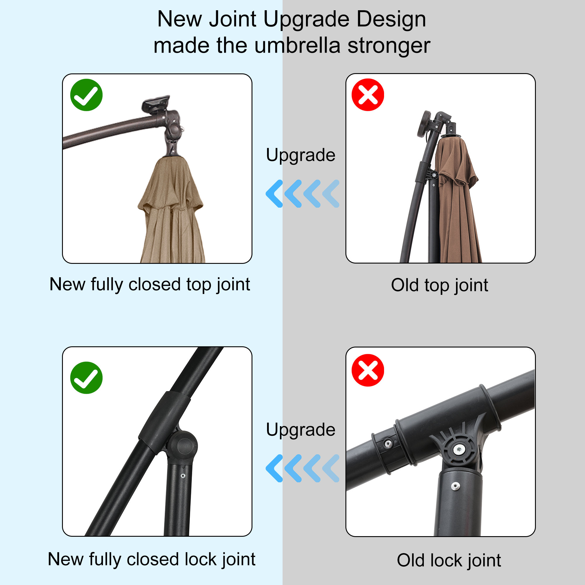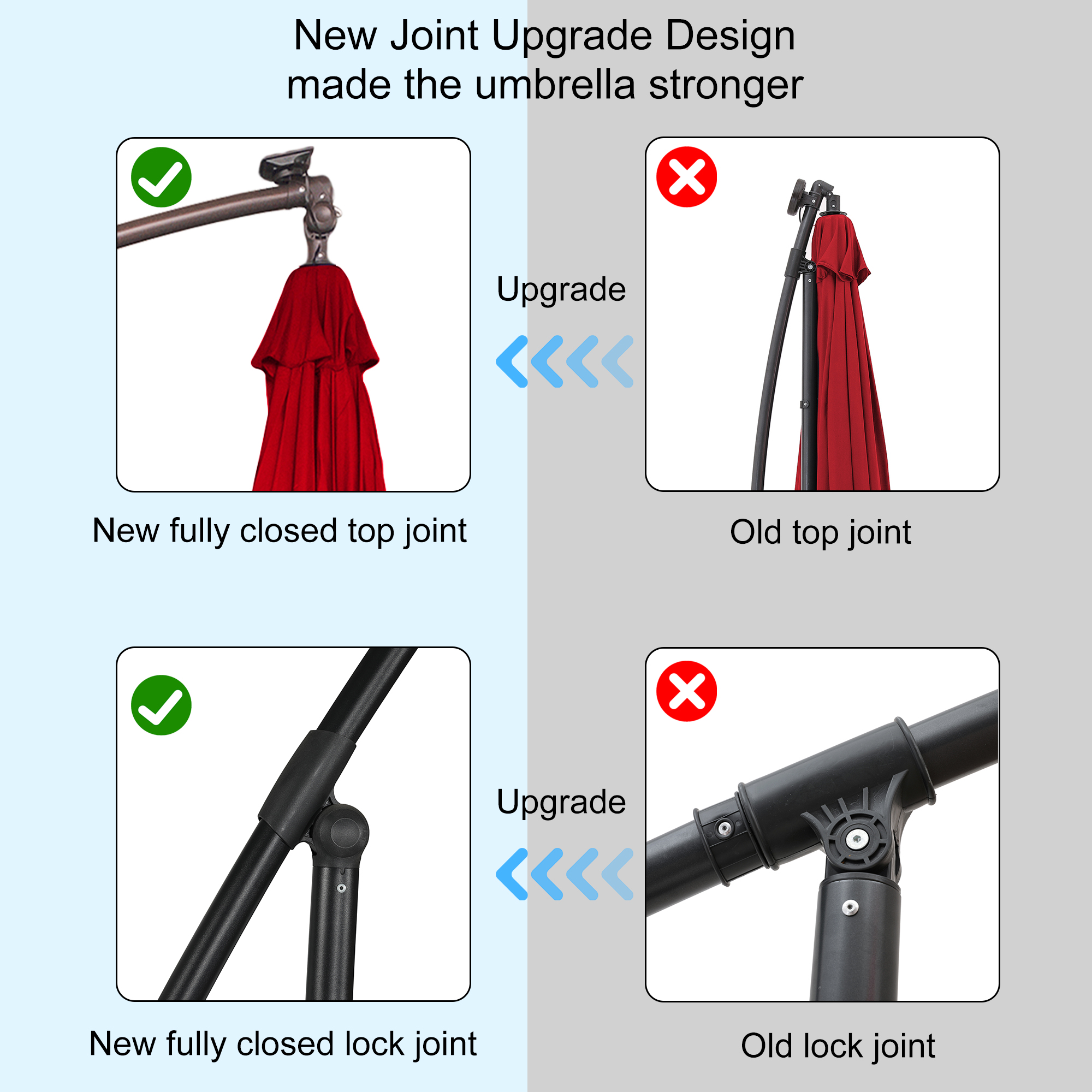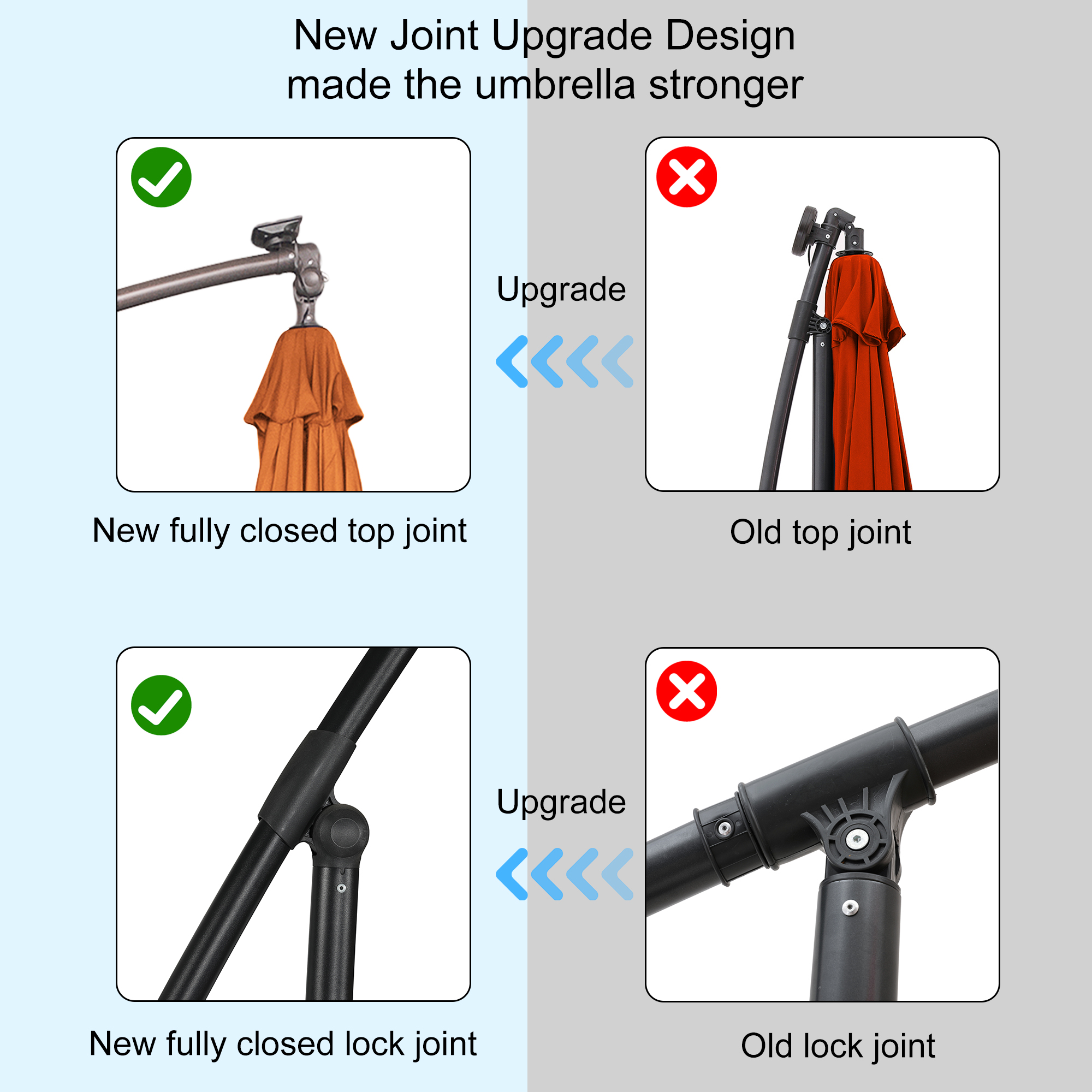 - Easy to operate crank lifting system—we added a smooth crank lifting handle to the umbrella pole, which can open or close the umbrella in just a few seconds