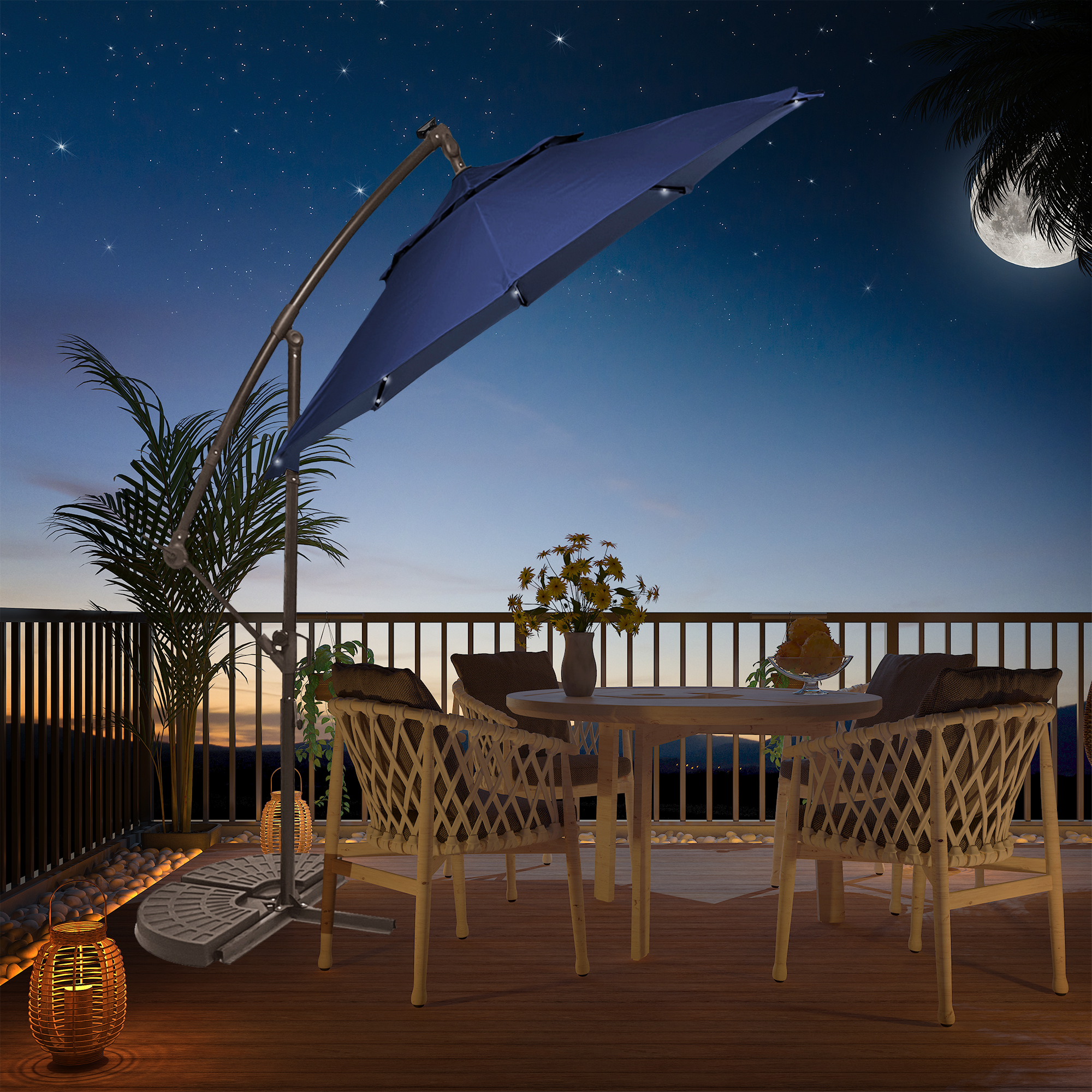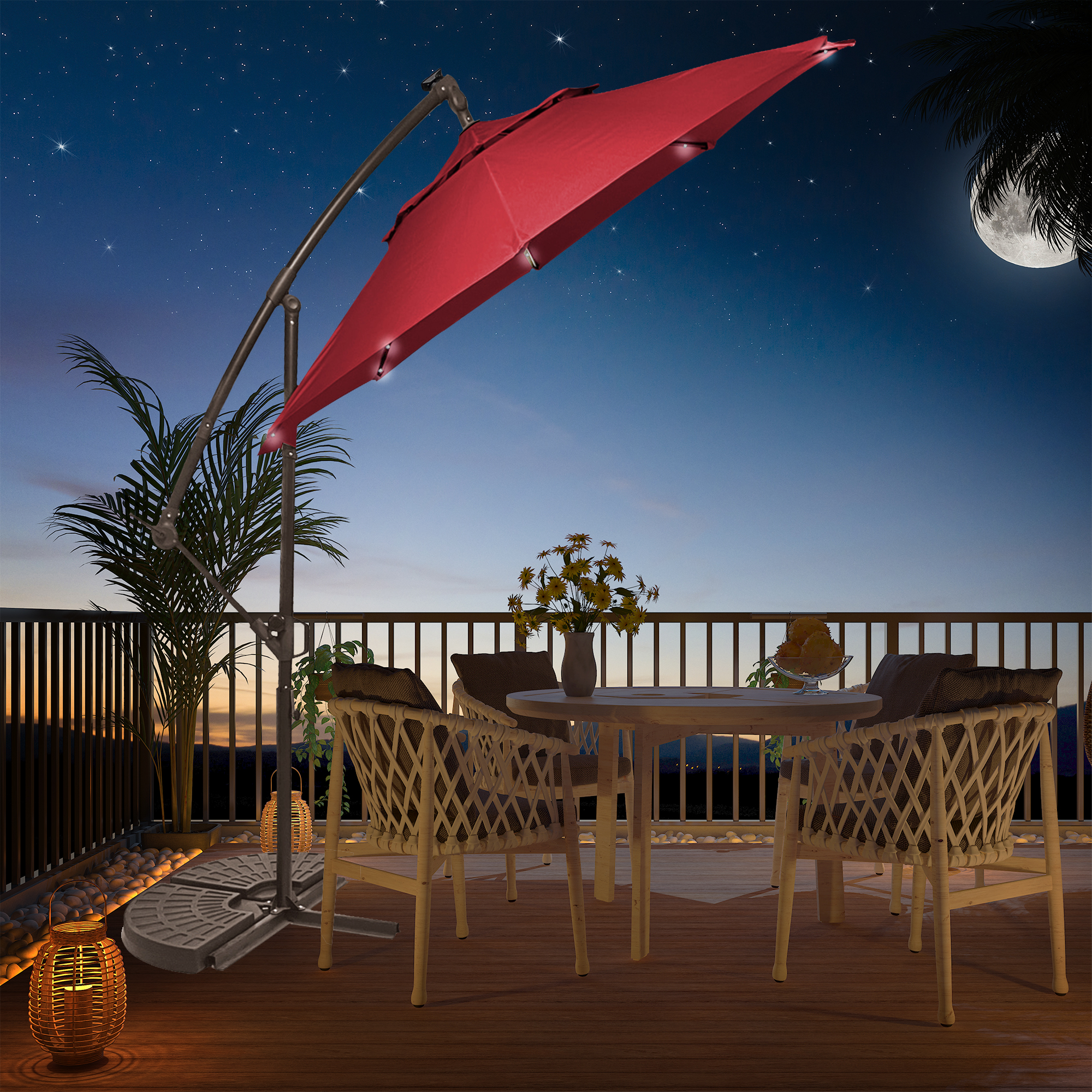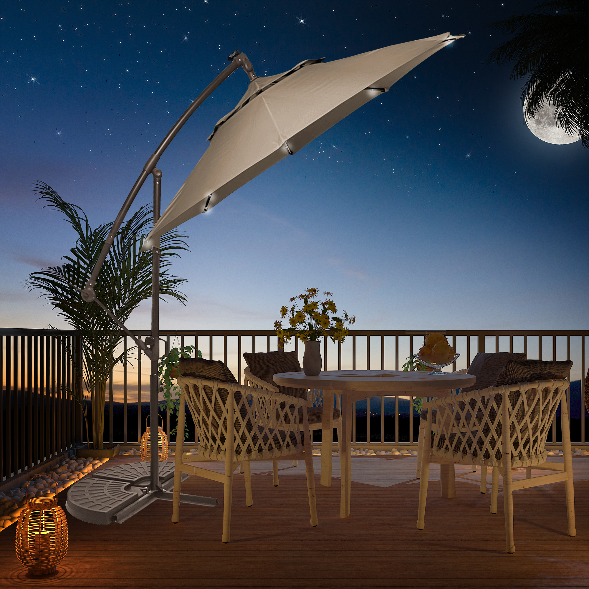 - There are 4 lights on each rib, a total of 32 LED lights, providing sufficient lighting for your outdoor dining at night