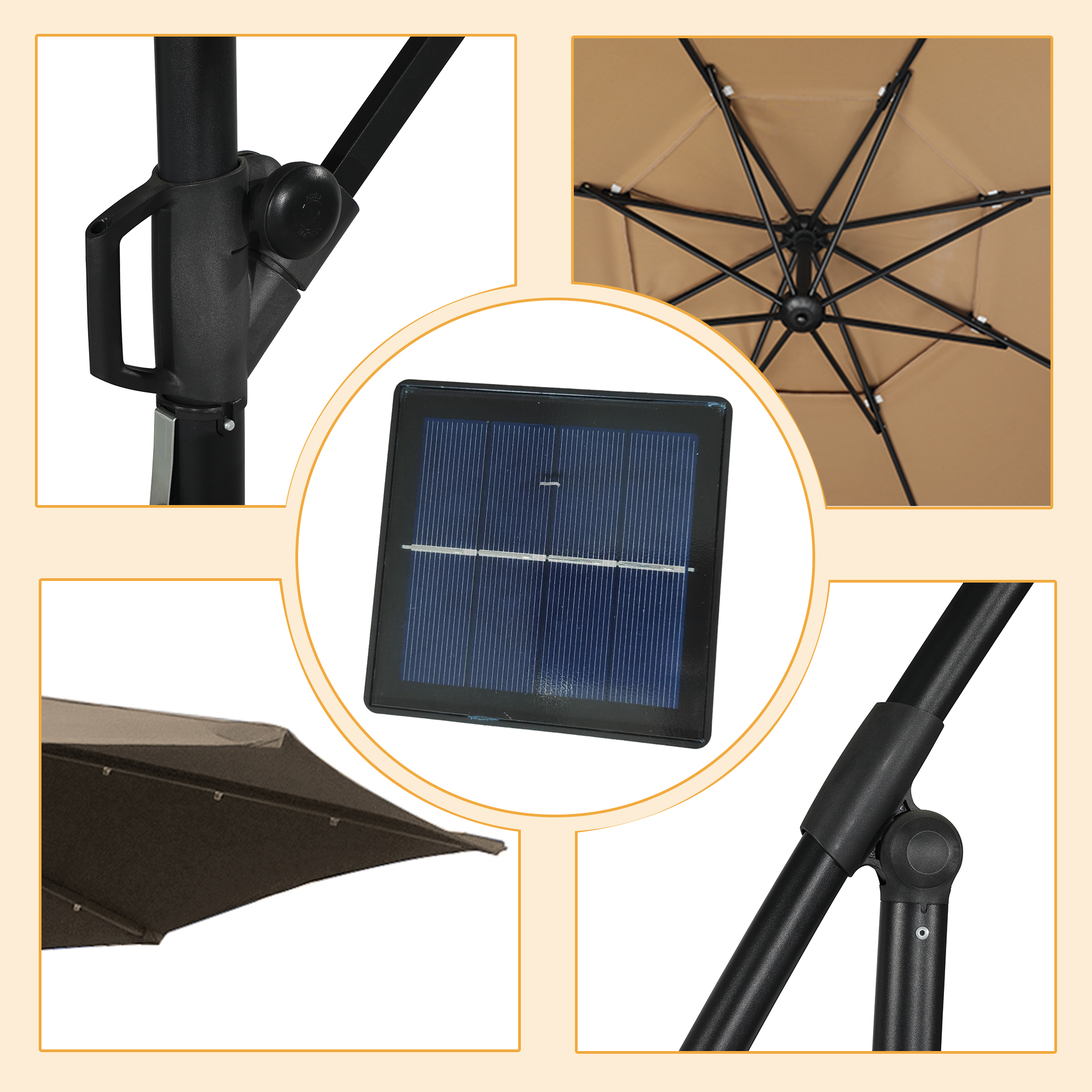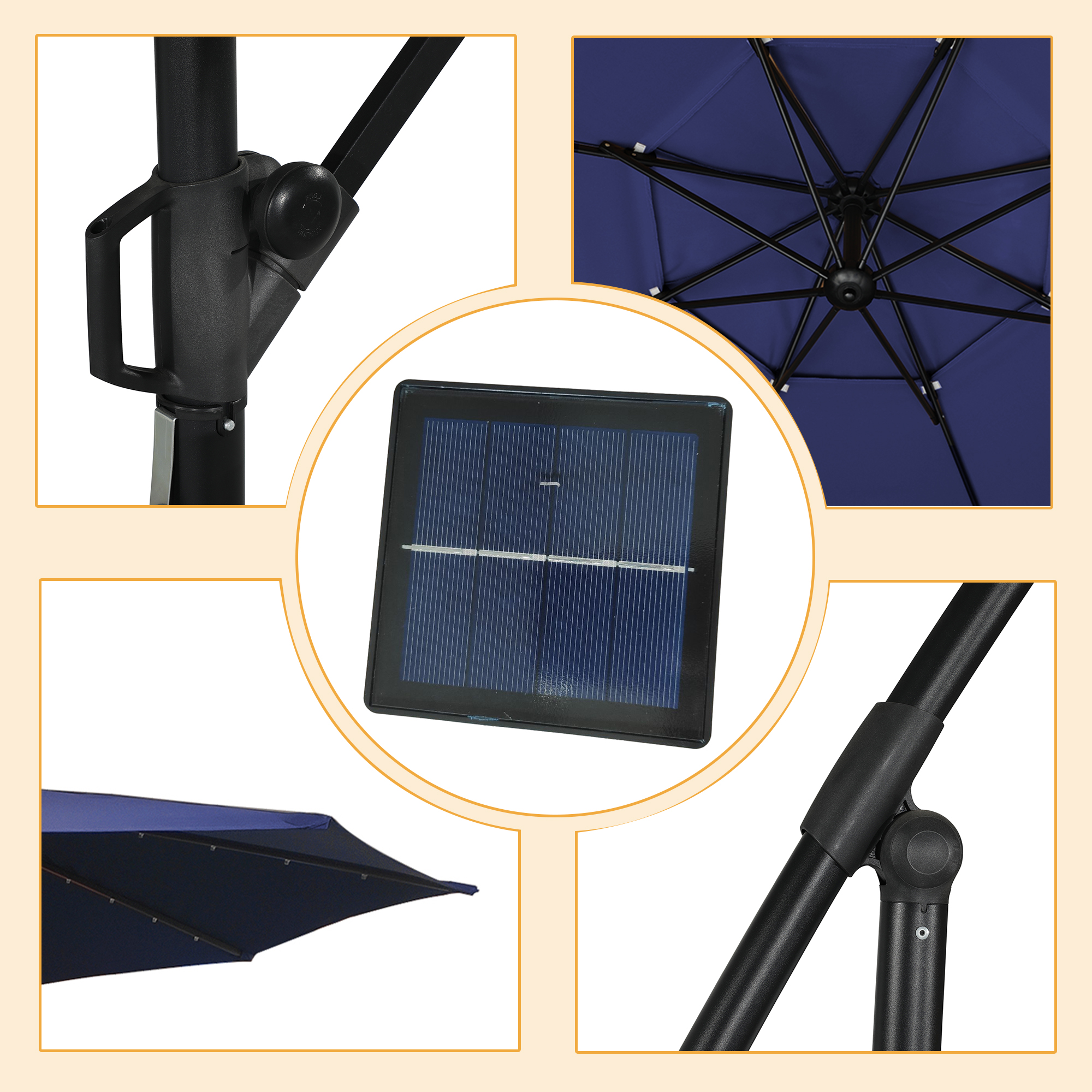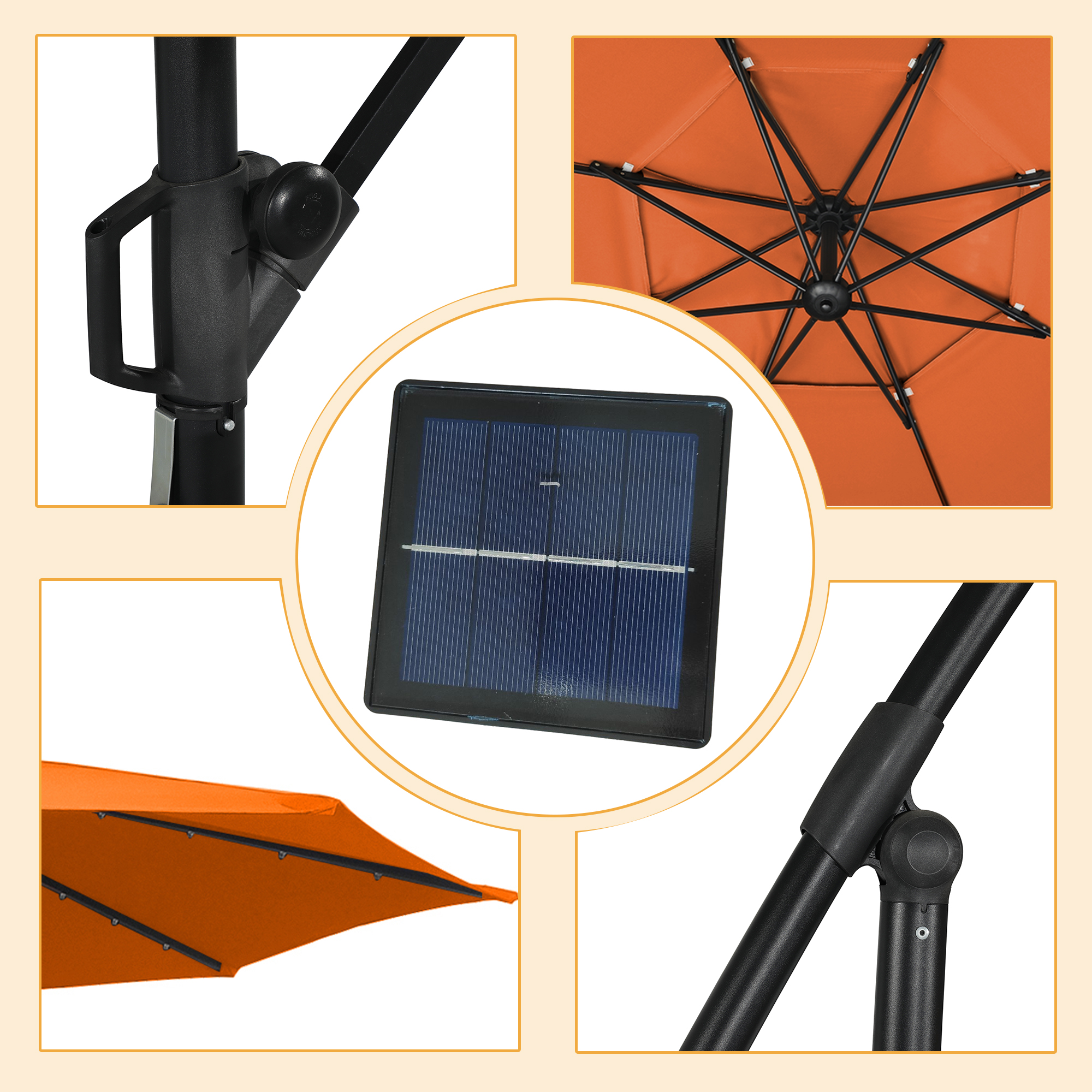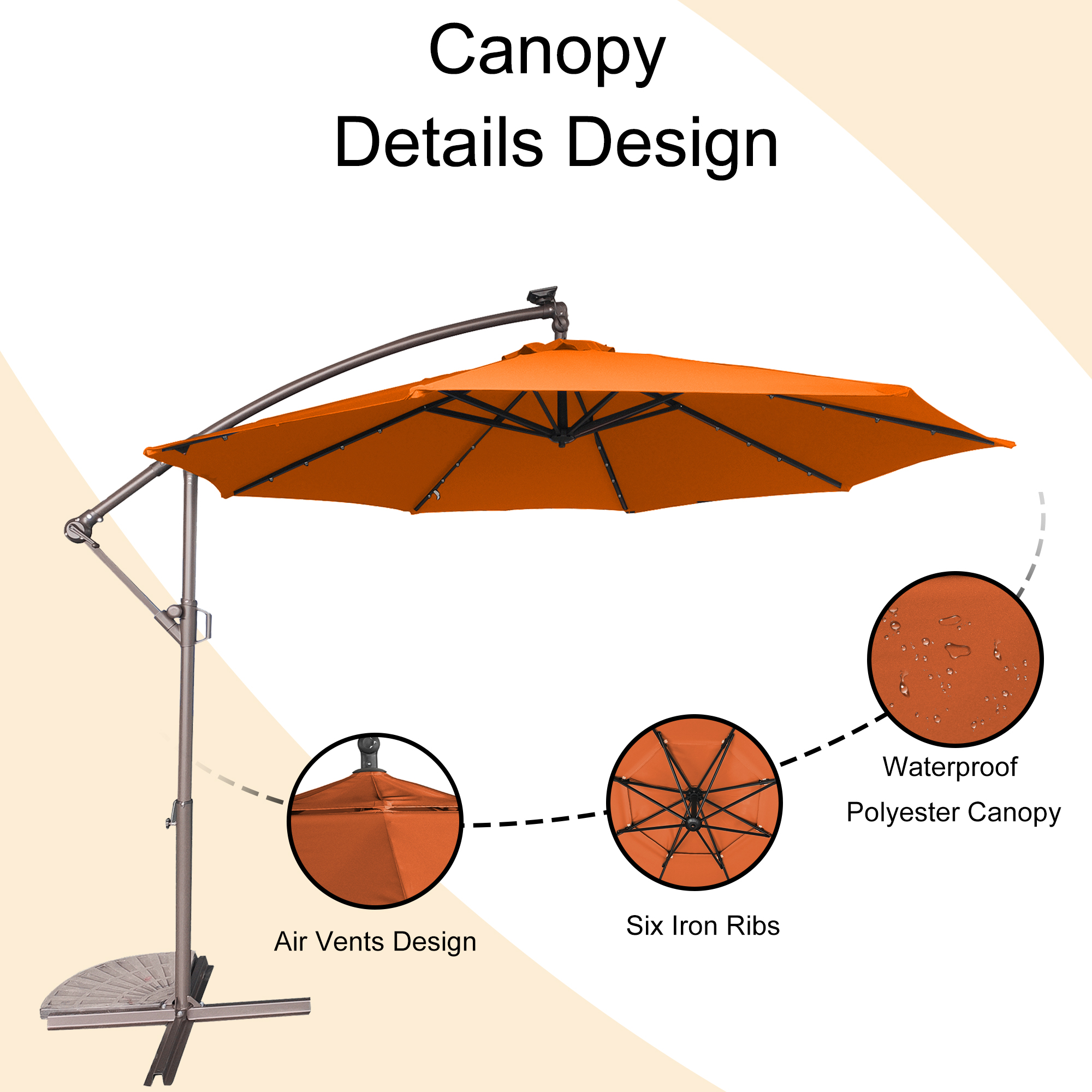 - Polyester umbrella fabric through the American Standard Level 4 certification, lasting color, and waterproof and UV protection