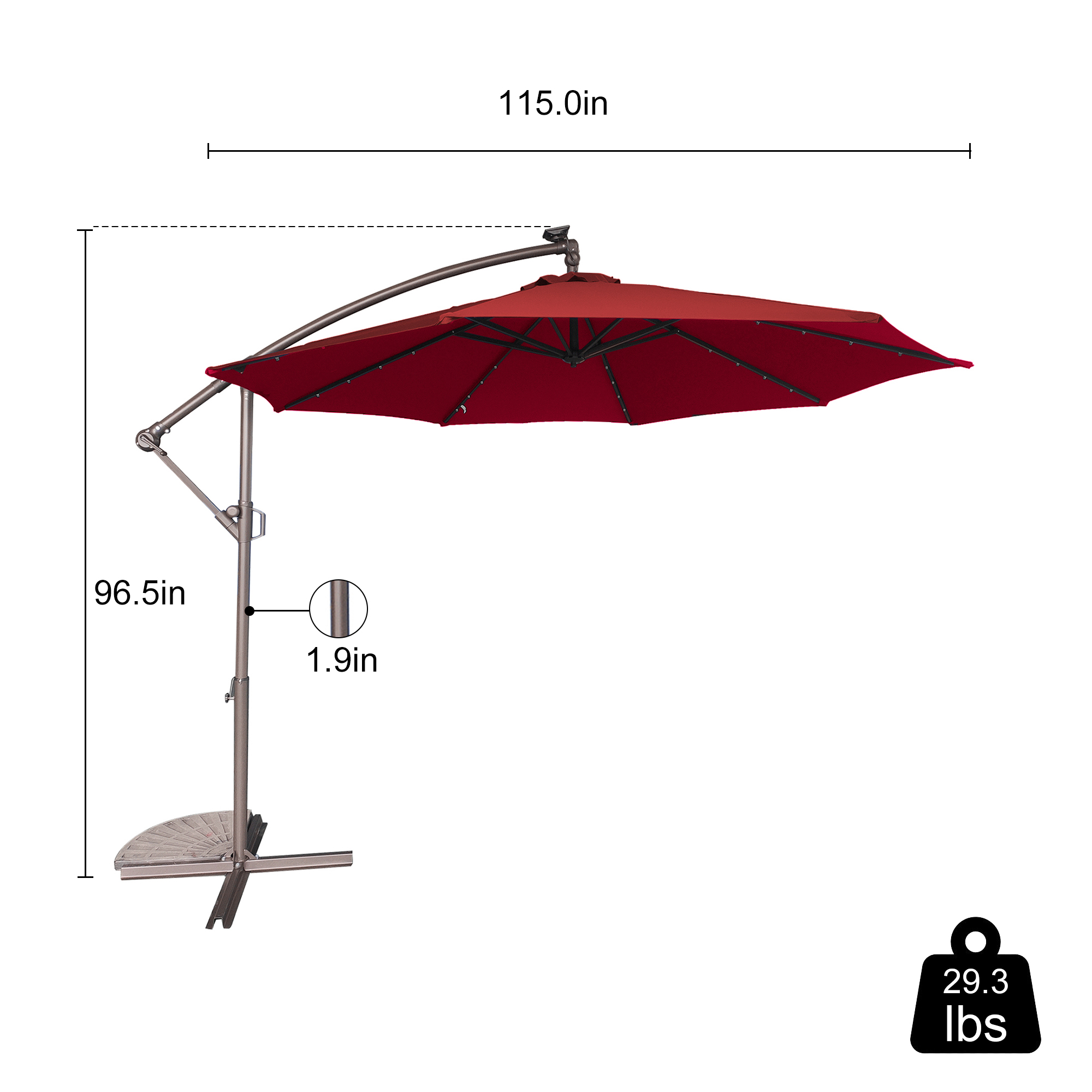 - Note: this umbrella does not have a weight base, you need to purchase a weight base separately