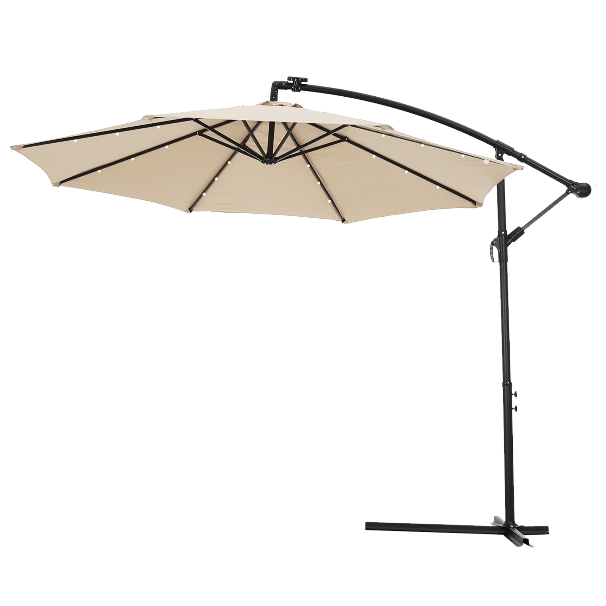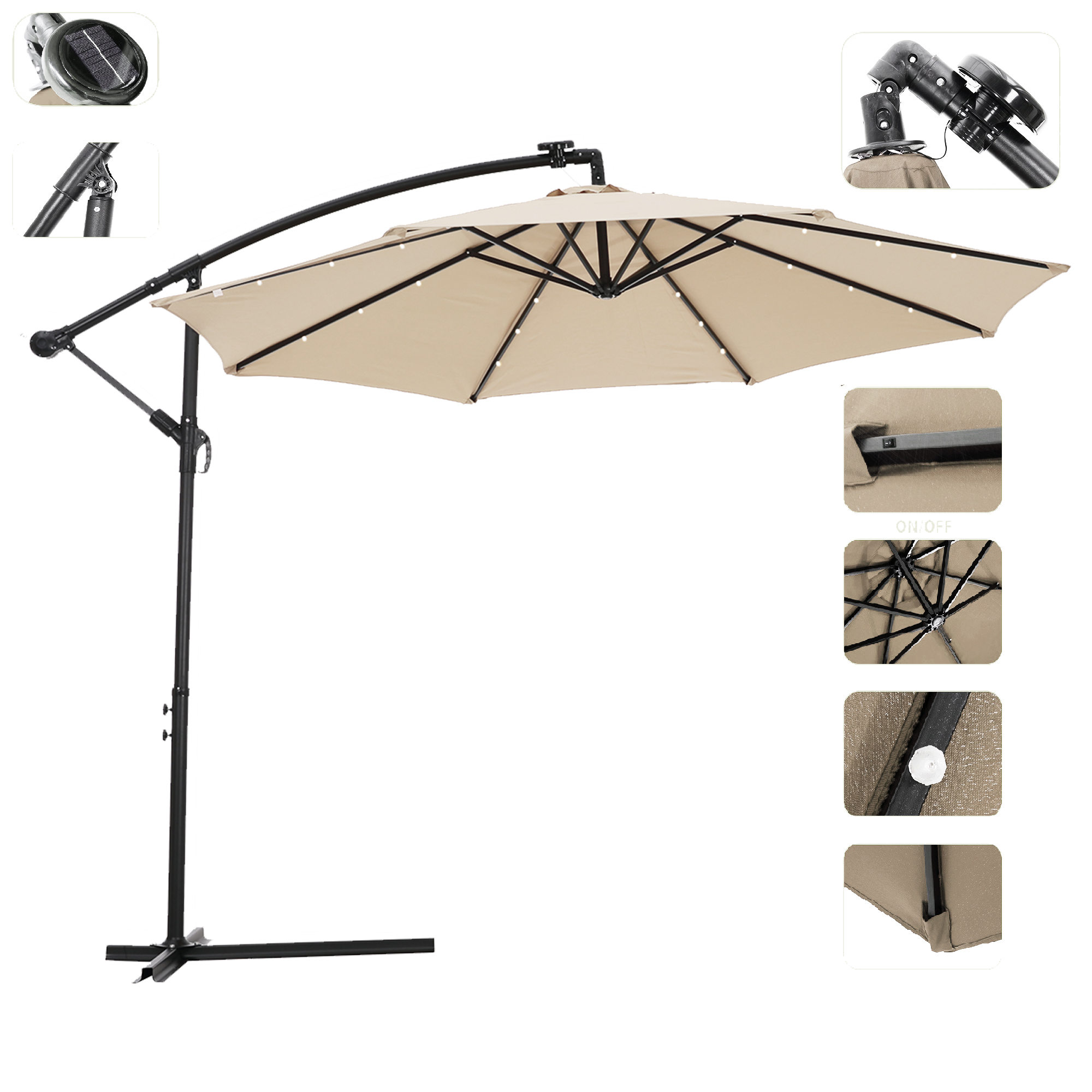 Package Includes: | 1 X 24 LED Lighted Patio Umbrella; 1 X Solar Panel;1X Cross umbrella base |