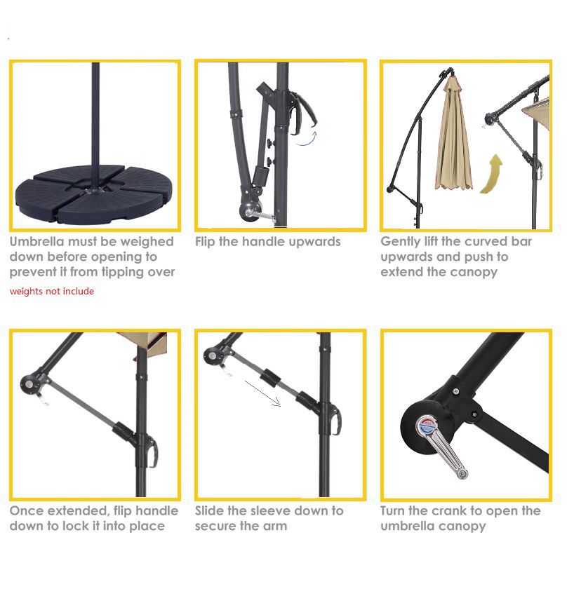 2.The umbrella must be secured with weights on its cross base. You may also use