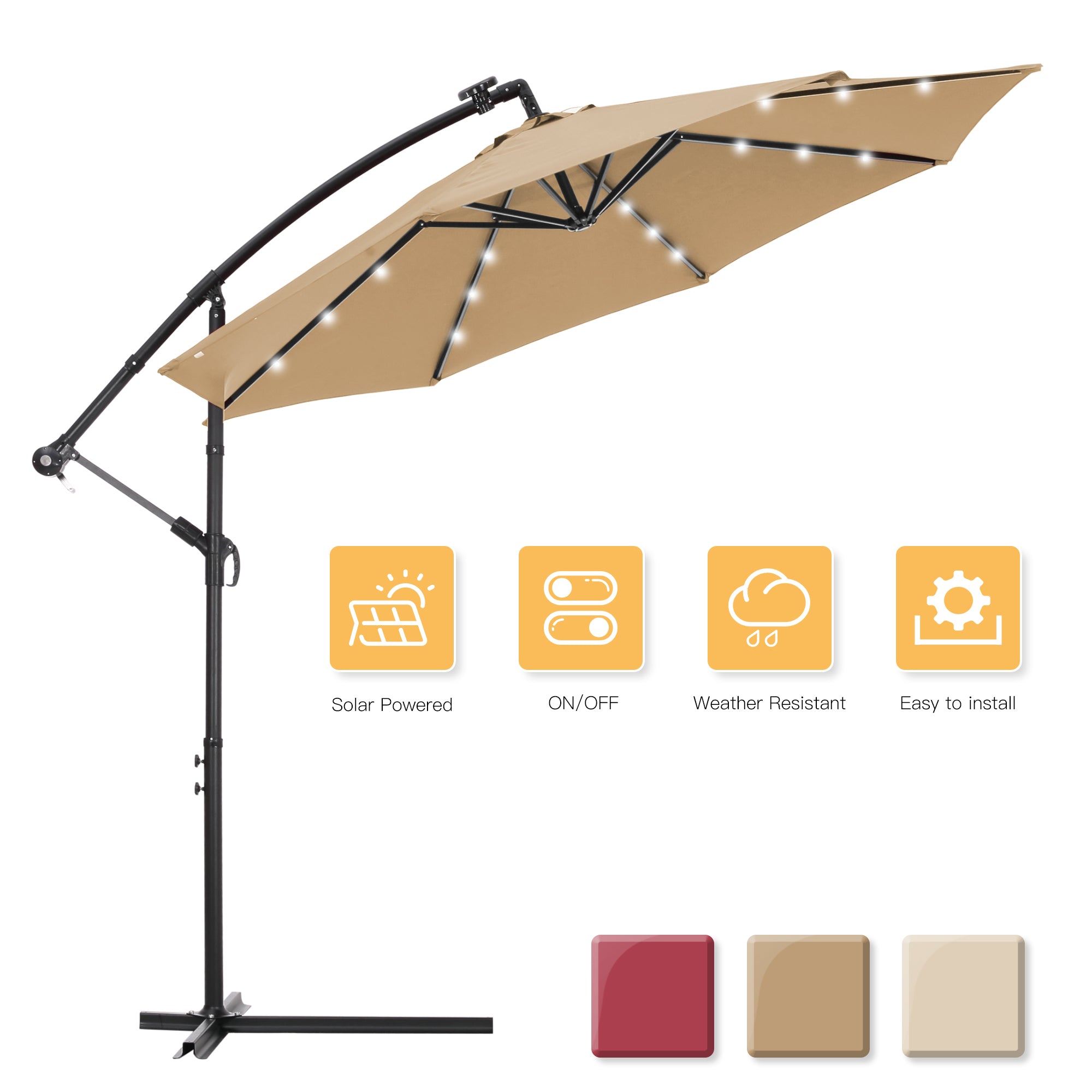 Package Includes | 1 X 24 LED Lighted Patio Umbrellaï¼?/p> 1 X Solar Panel;1X Cross umbrella base |