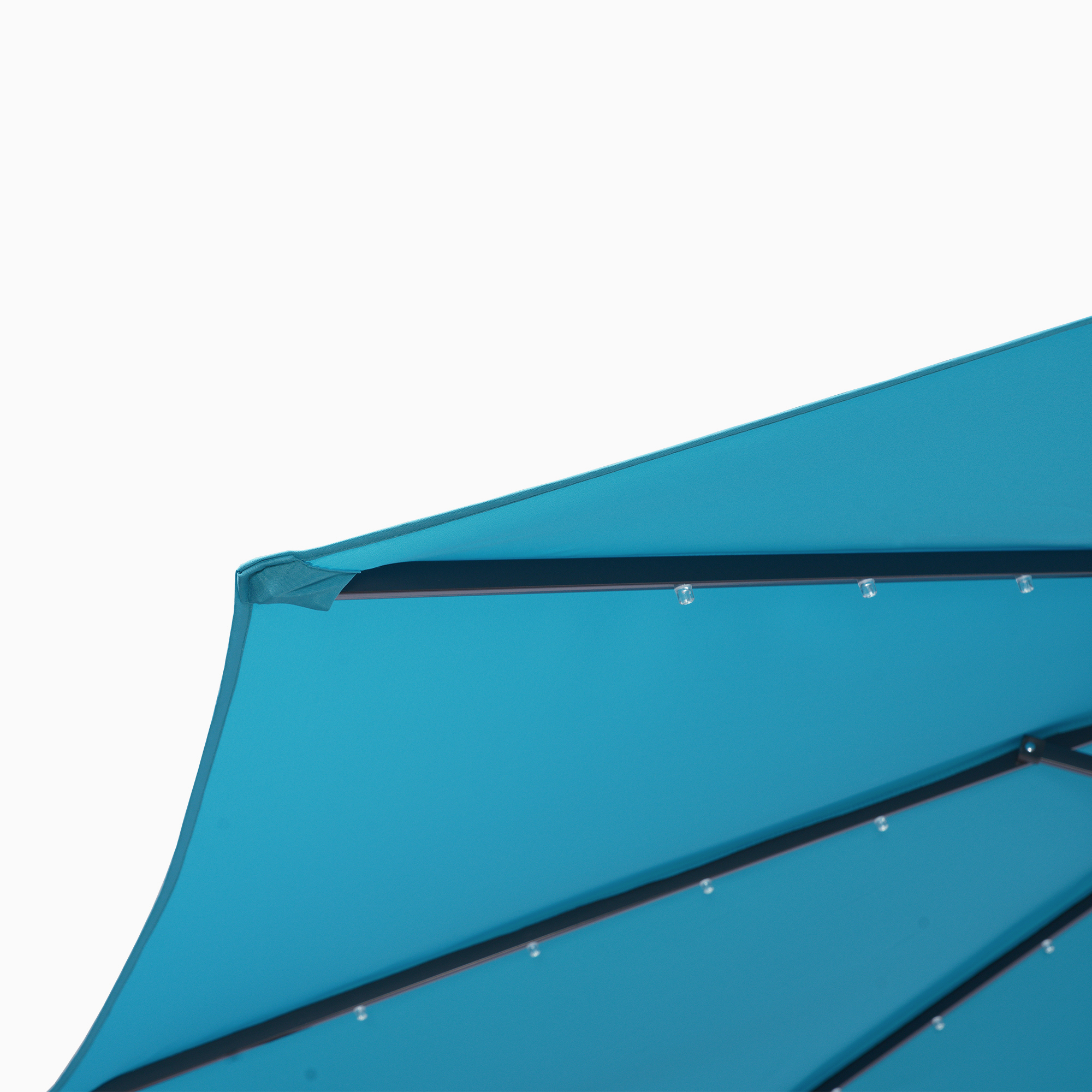 This is a product that has sun-proof function and sturdy construction with 32 solar LED lights. Even on the sunniest day, you can enjoy your outdoor living spaces and remain cooler by using this Patio Sun Shading Umbrella. It is probably the best way to stay outside without absorbing the harmful UV rays of sun, which causes serious sunburns or even skin cancers. At the same time, it is a perfect choice when there is time that rain spotting and you still want to enjoy outdoor scenery and cool breeze.And when the sun falls, eco-friendly & energy-efficient solar powered LED lights with Upgraded solar panel makes it romantic and warm to enjoy night scenery also besides sun shading needs in the day.