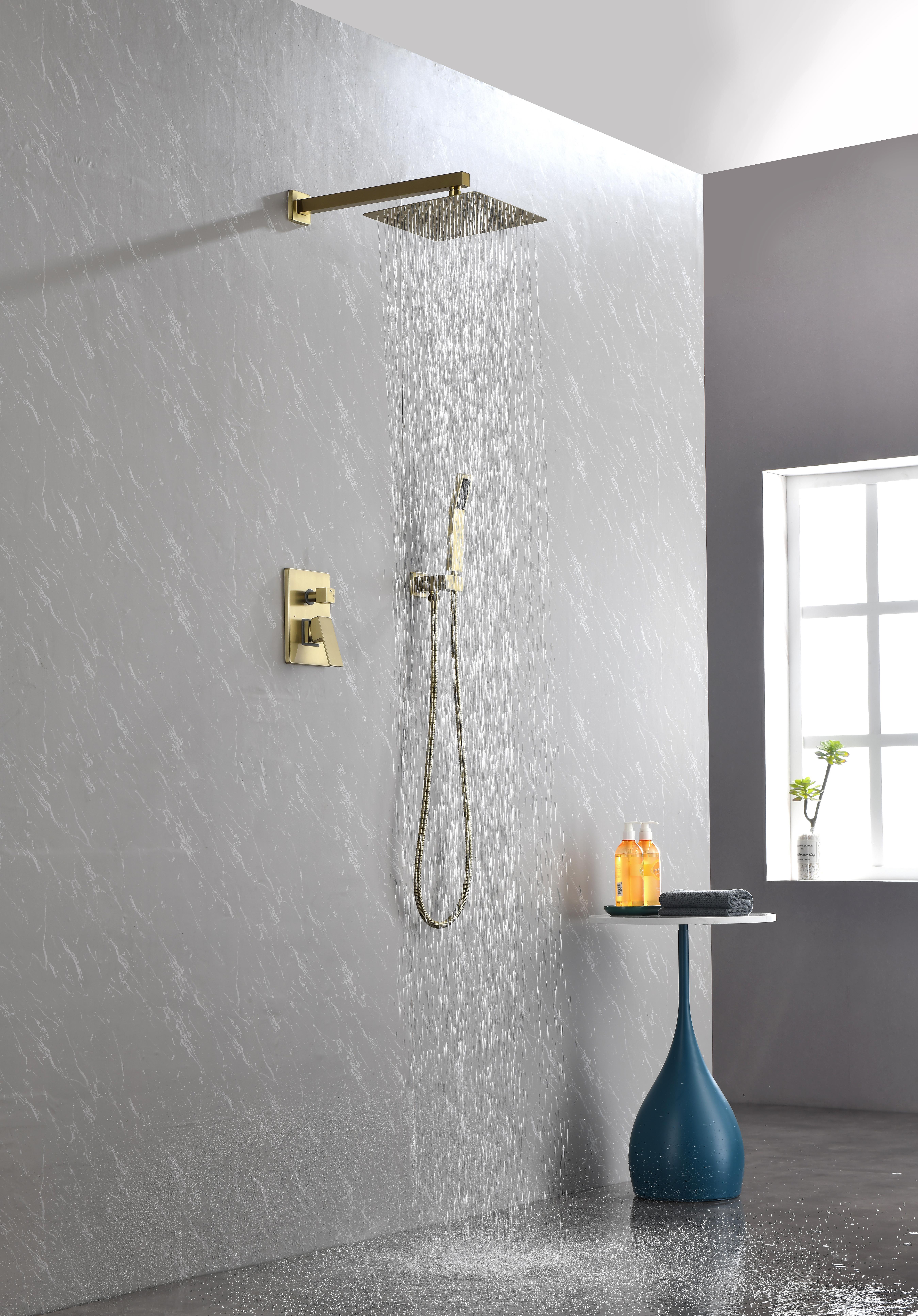 Transform your shower with this modern rainfall shower system. With crisp, clean lines and right angles, it instantly gives a modern look for your bathroom upgrade. Featuring a ultra-thin air injection showerhead, this shower system will provide a consistent, powerful spray that simulates the feeling of raindrops falling down onto your skin, an unprecedented therapeutic massage. A matching hand shower will aim focused spray wherever you want for targeted cleaning and washing.A lasting and eye-catching addition to your bathroom.