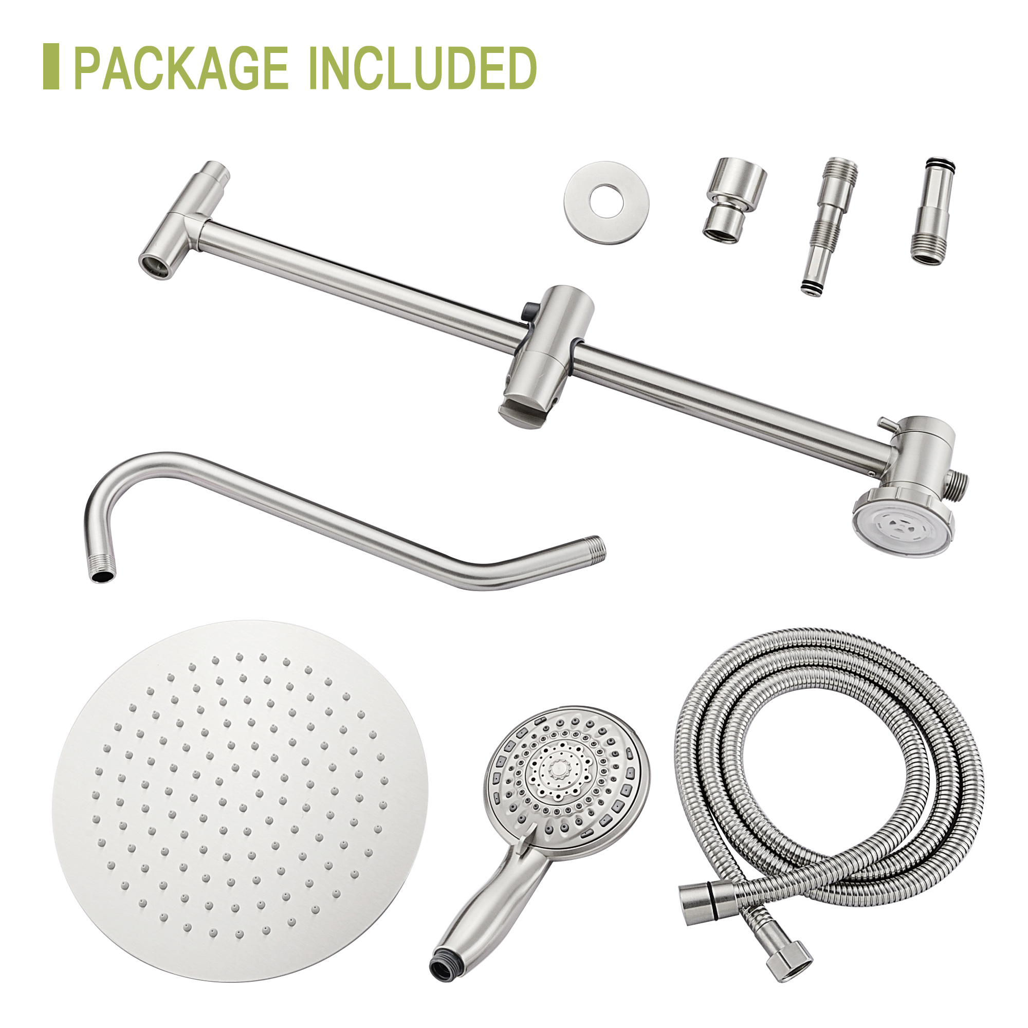 The 10-inch round shower set comes with an adjustable and removable hand shower that can be used separately from the shower or at the same time as the shower. This shower set gives you a variety of options, as you can choose to have water flowing only from the overhead shower or the hand shower, and choose from five outlet modes for a more sophisticated showering experience.