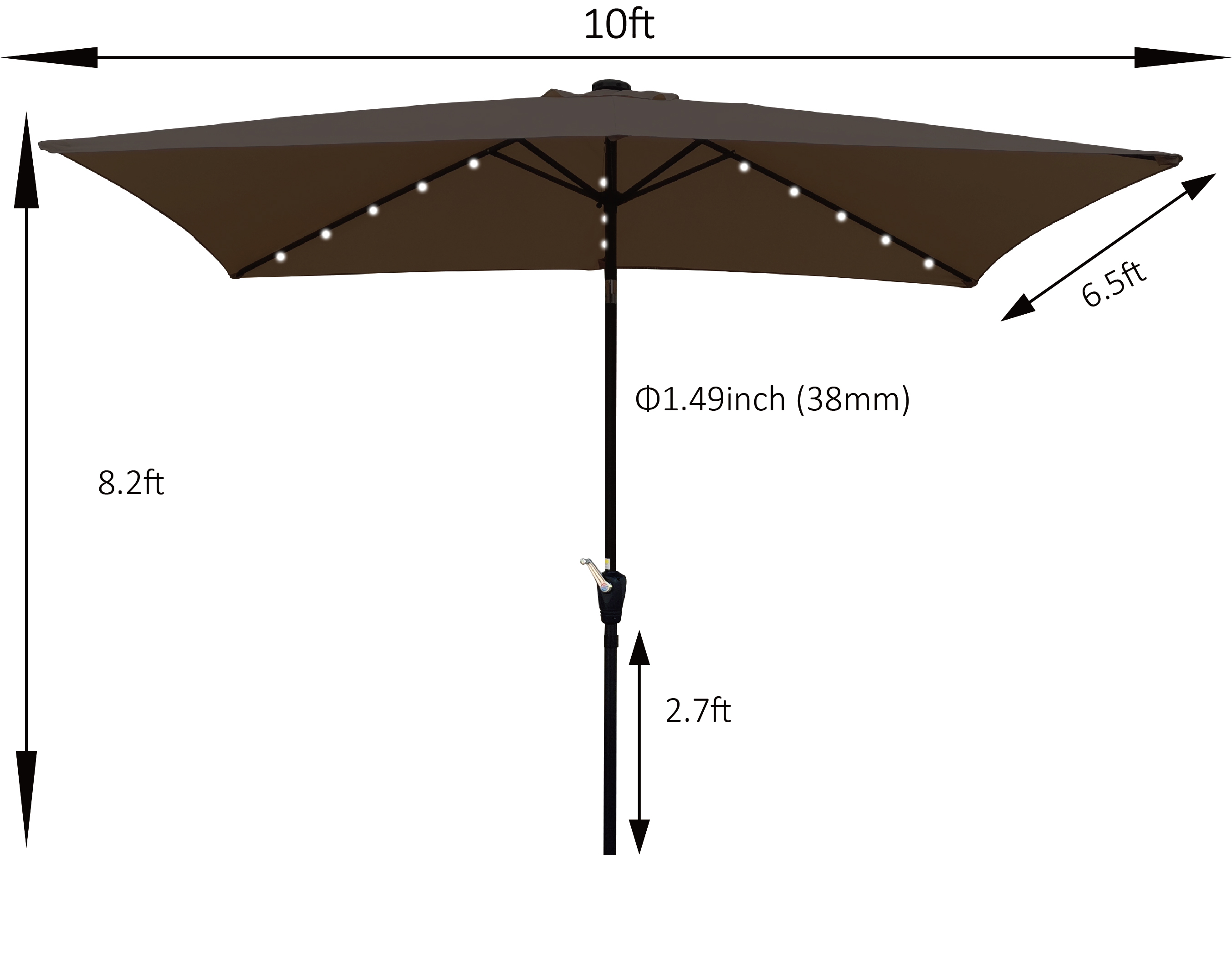 Umbrella Shade Size: | 10 x 6.5 ft |