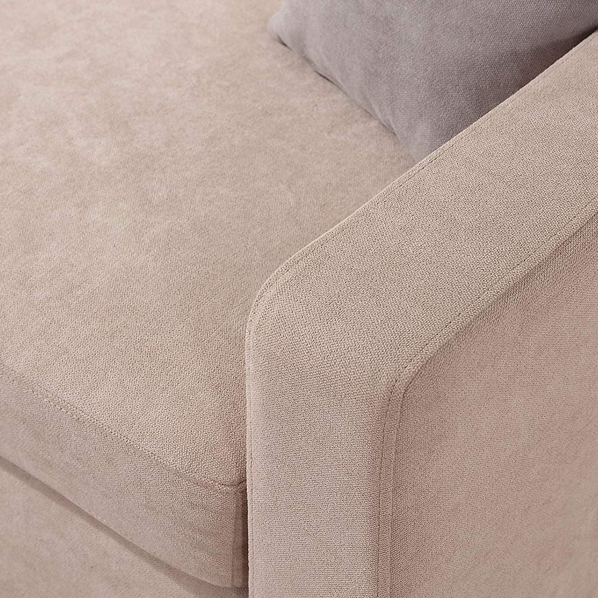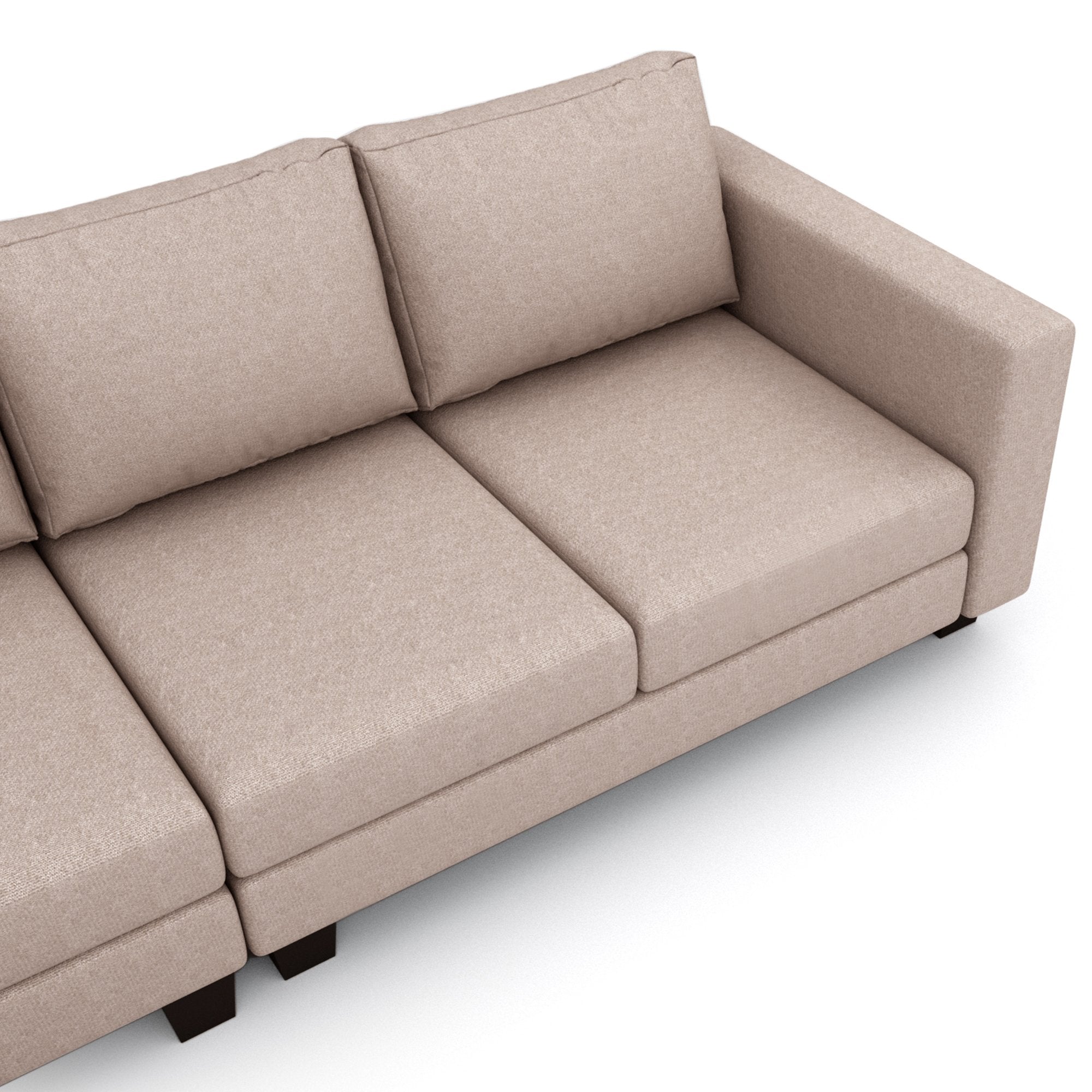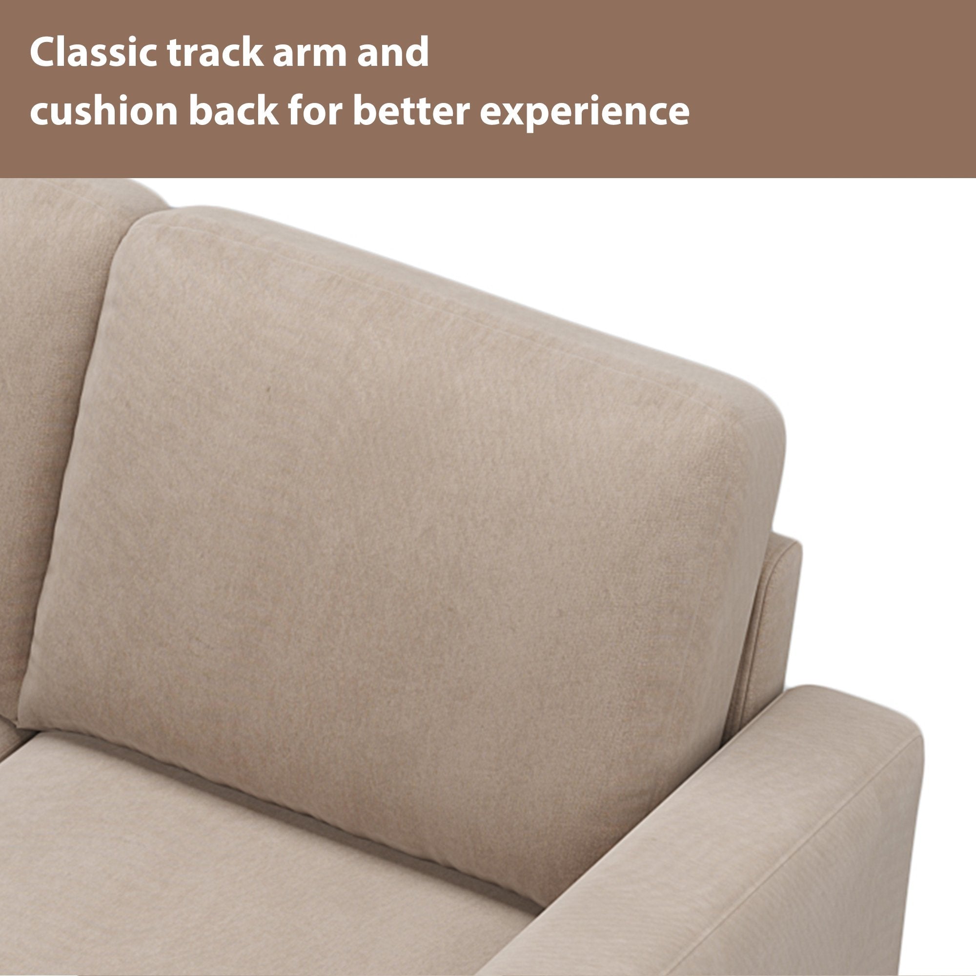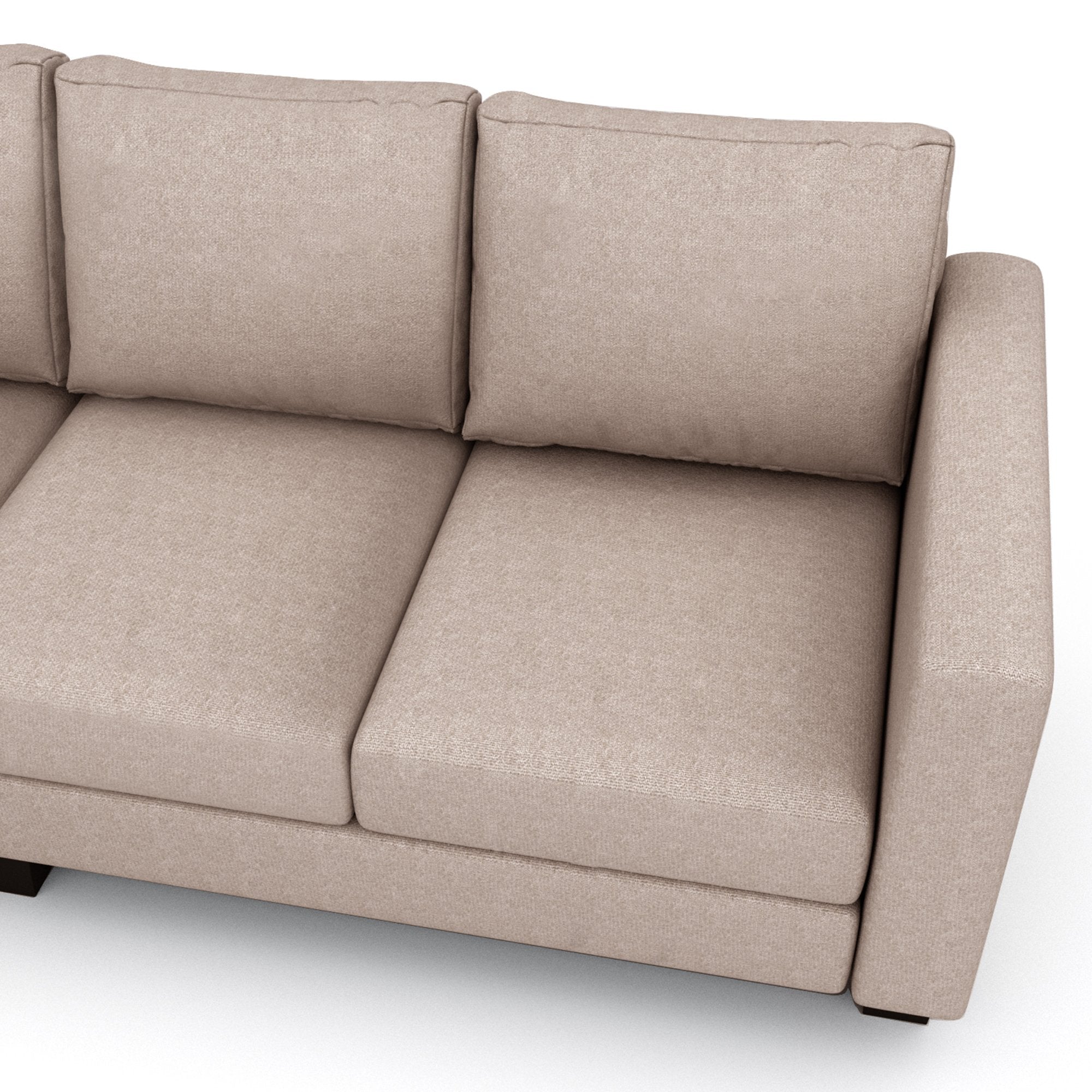 The wide track armrest, box cushions and the legs lend a clean, contemporary aesthetic. Warm grey with grain faux linen.Modern and sophisticated with wide square armrests on one side.