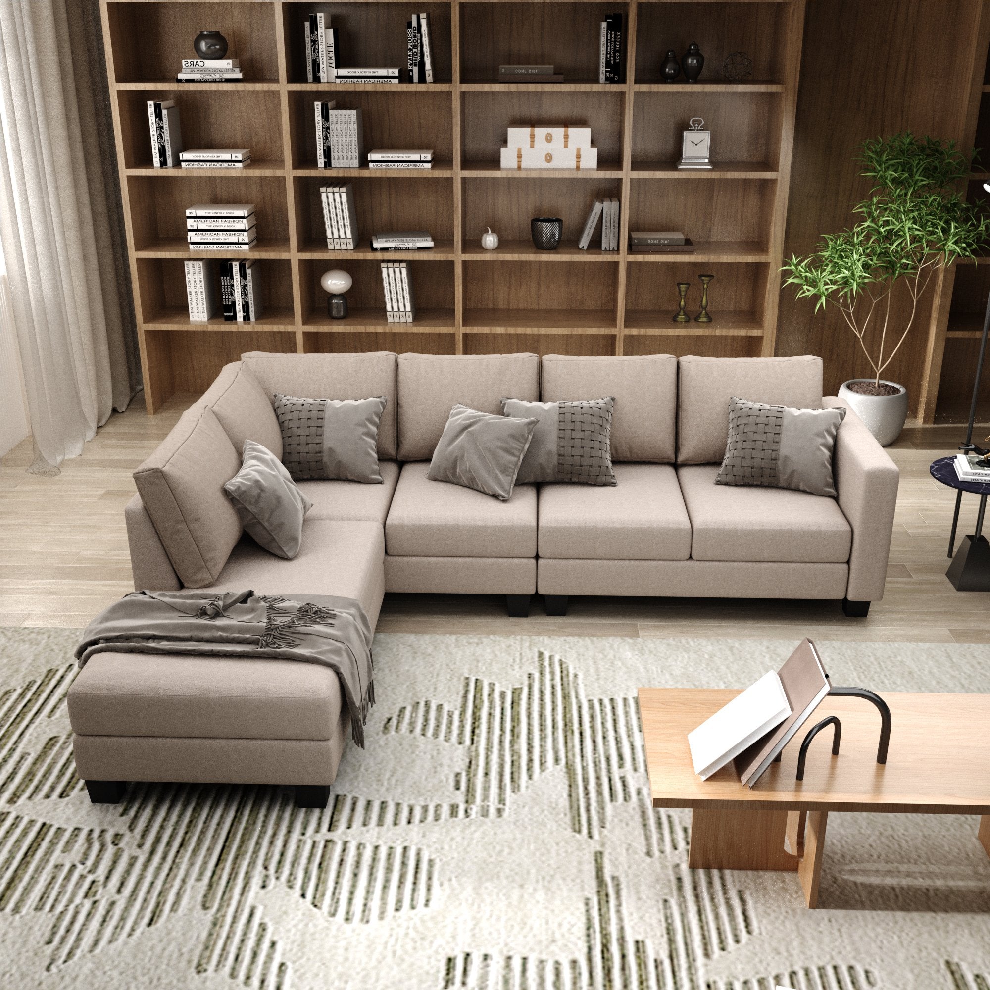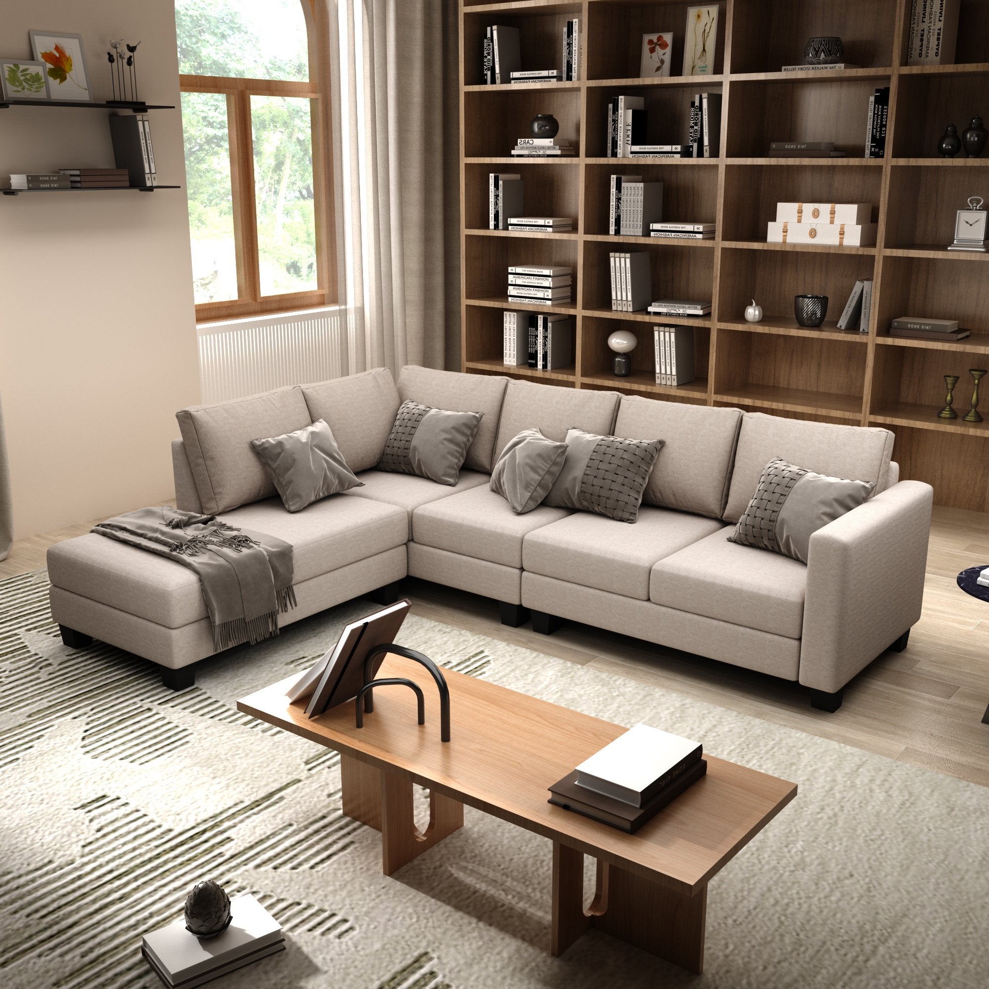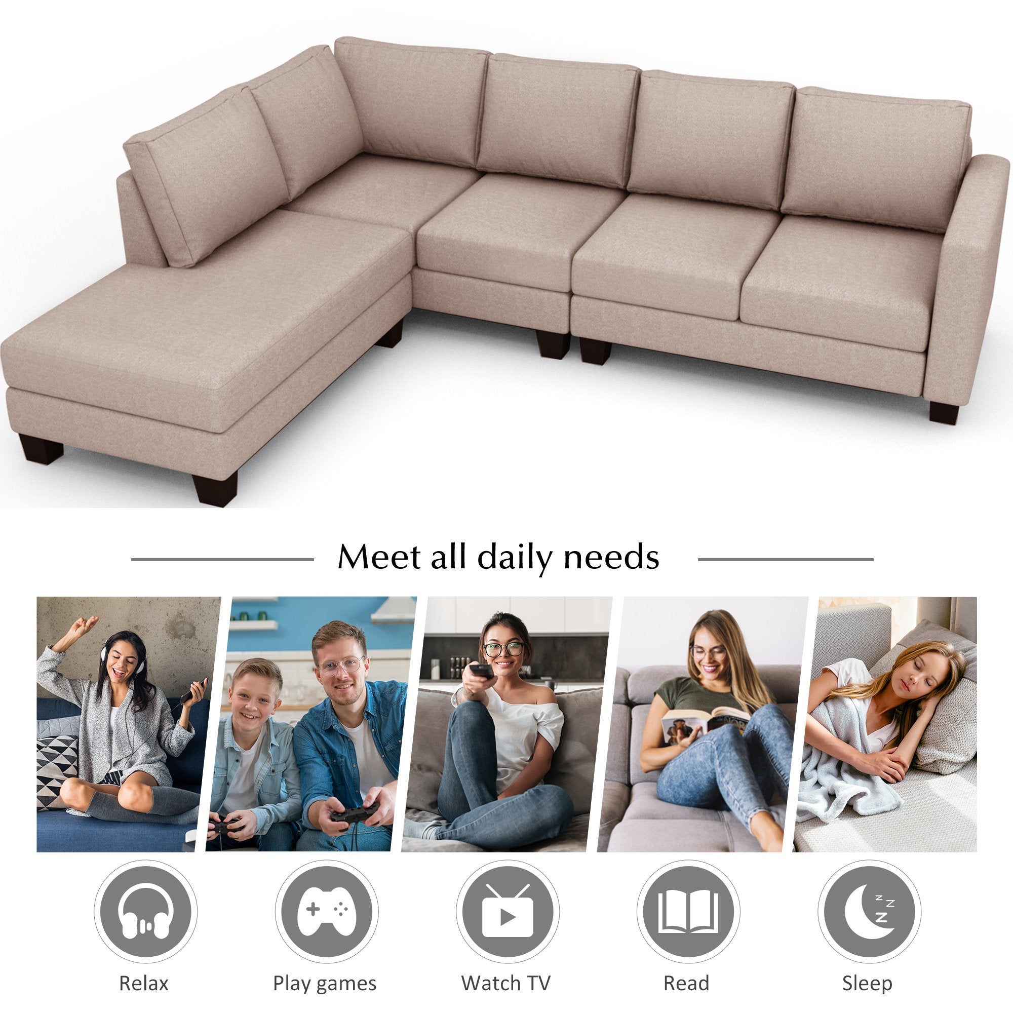 107.25*87"Textured Fabric Sectional Sofa Set, L-shaped Sofa With 5 Seaters for Home Use, Left-arm Facing Chaise, Warm Grey