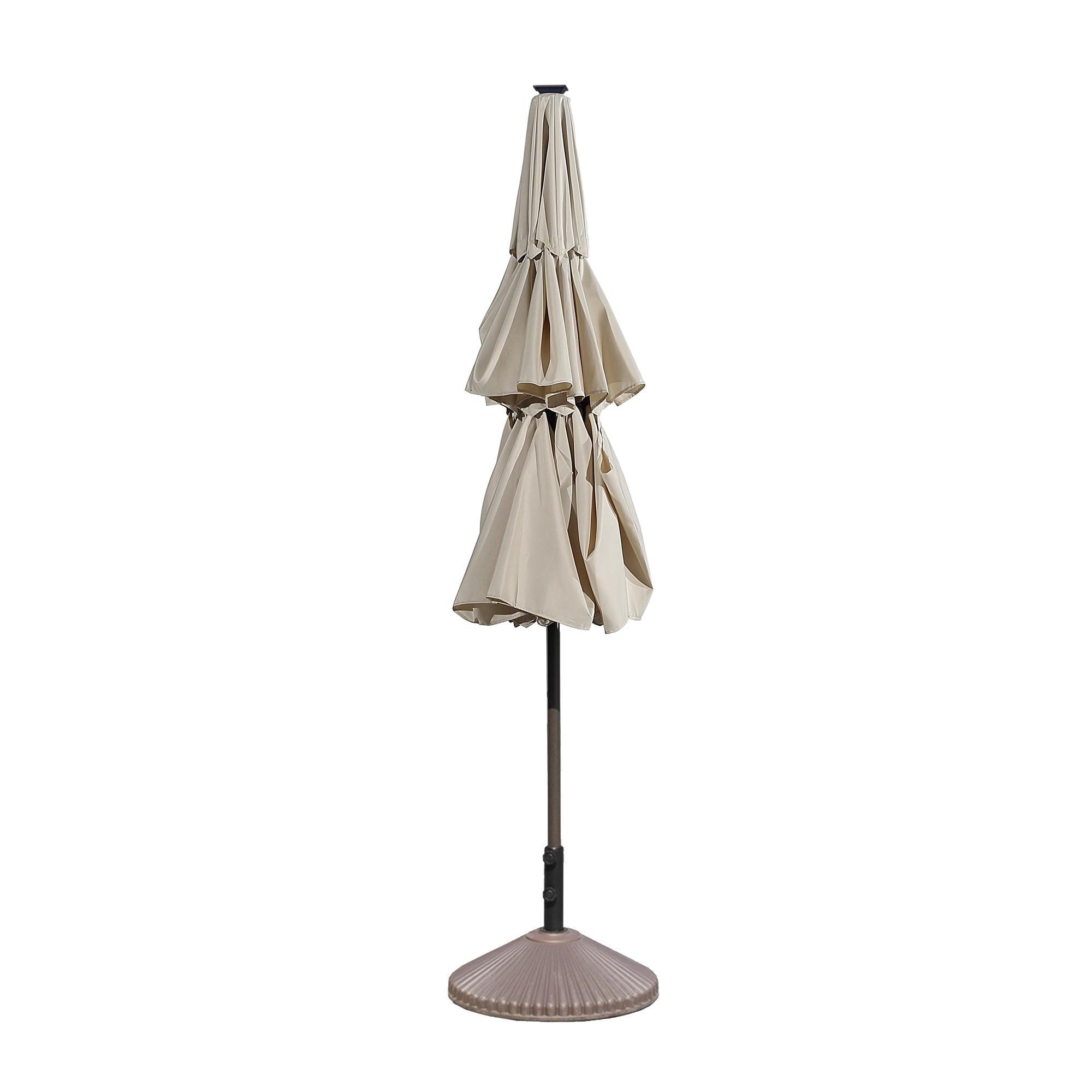 - Strong and long-lasting but also lightweight iron column and aluminum umbrella ribs