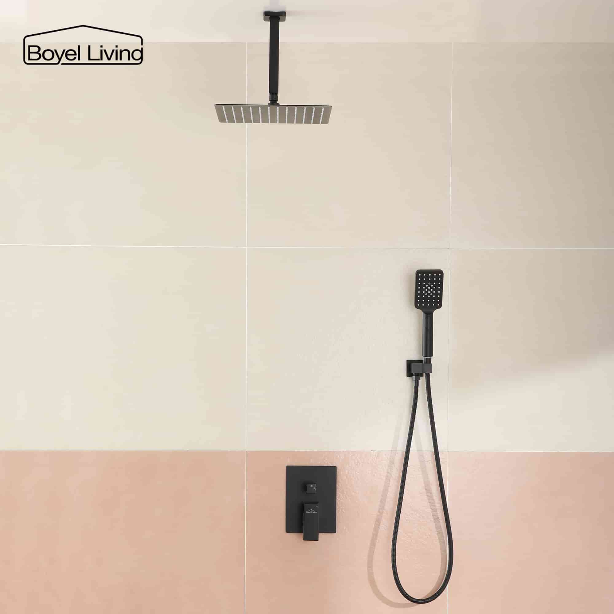 The Shower System is made of quality, durable brass. This stylish product features a rainfall shower head and handheld shower. The diverter allows you to switch from smoothing shower to manual operation with the push of a button.