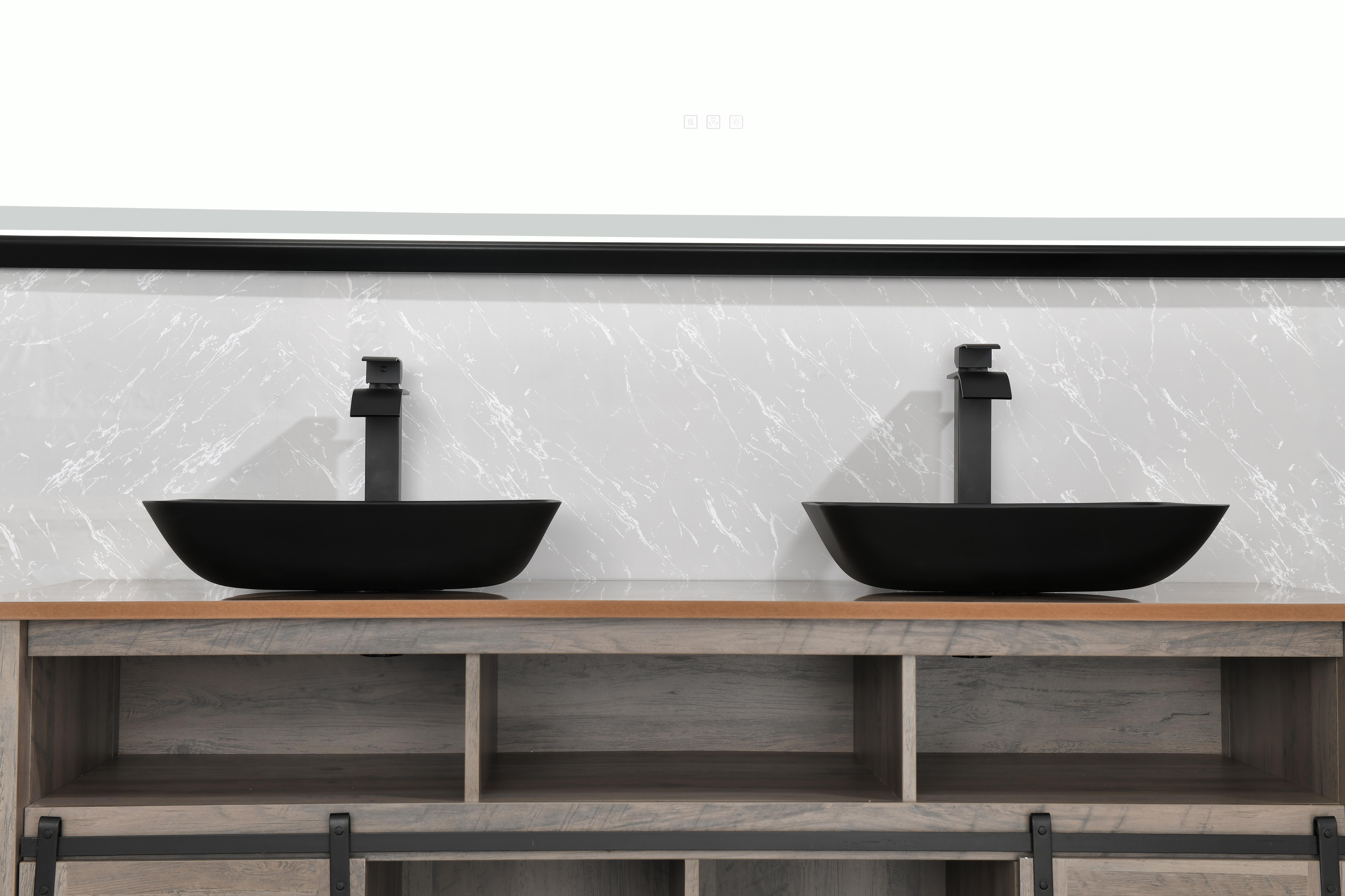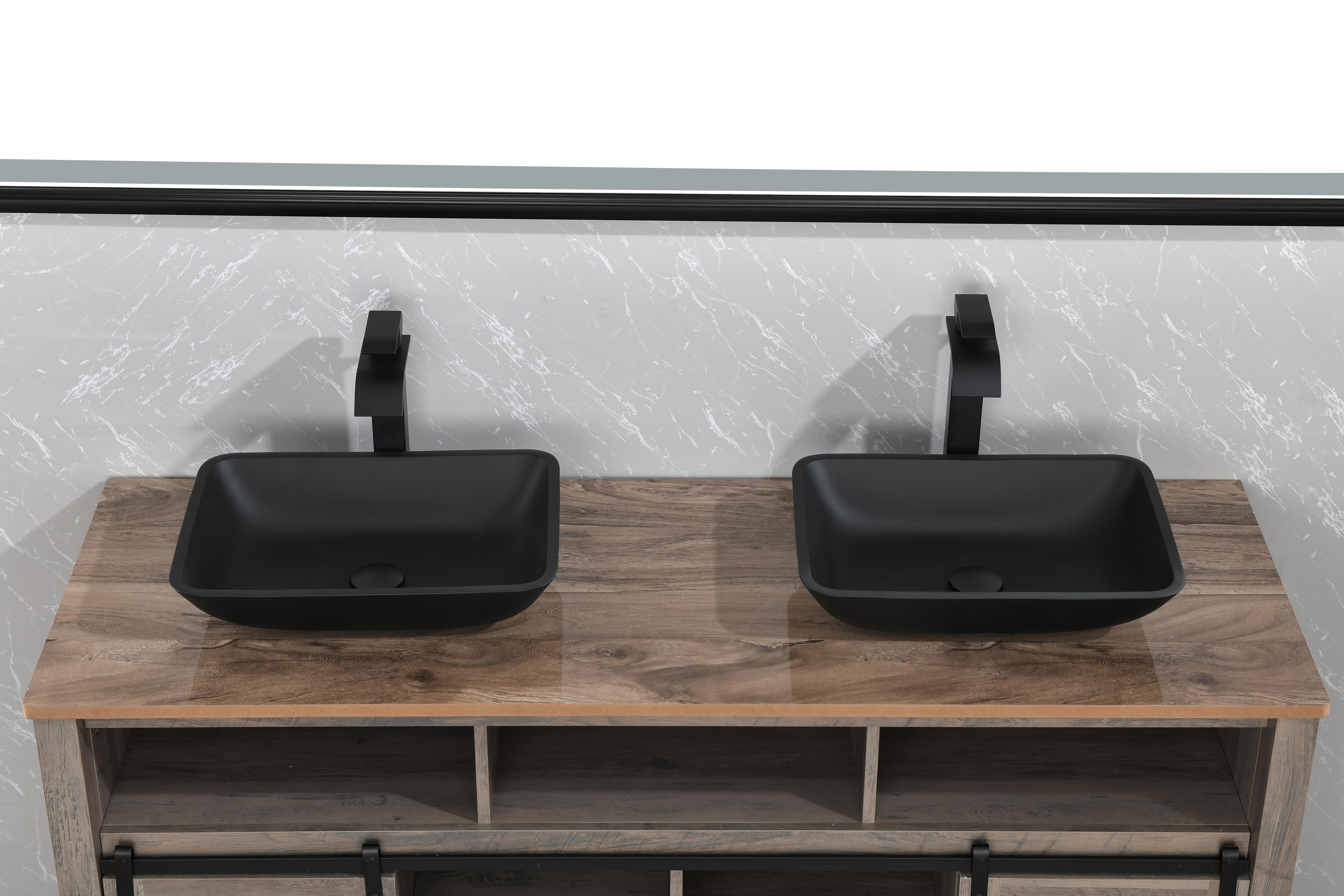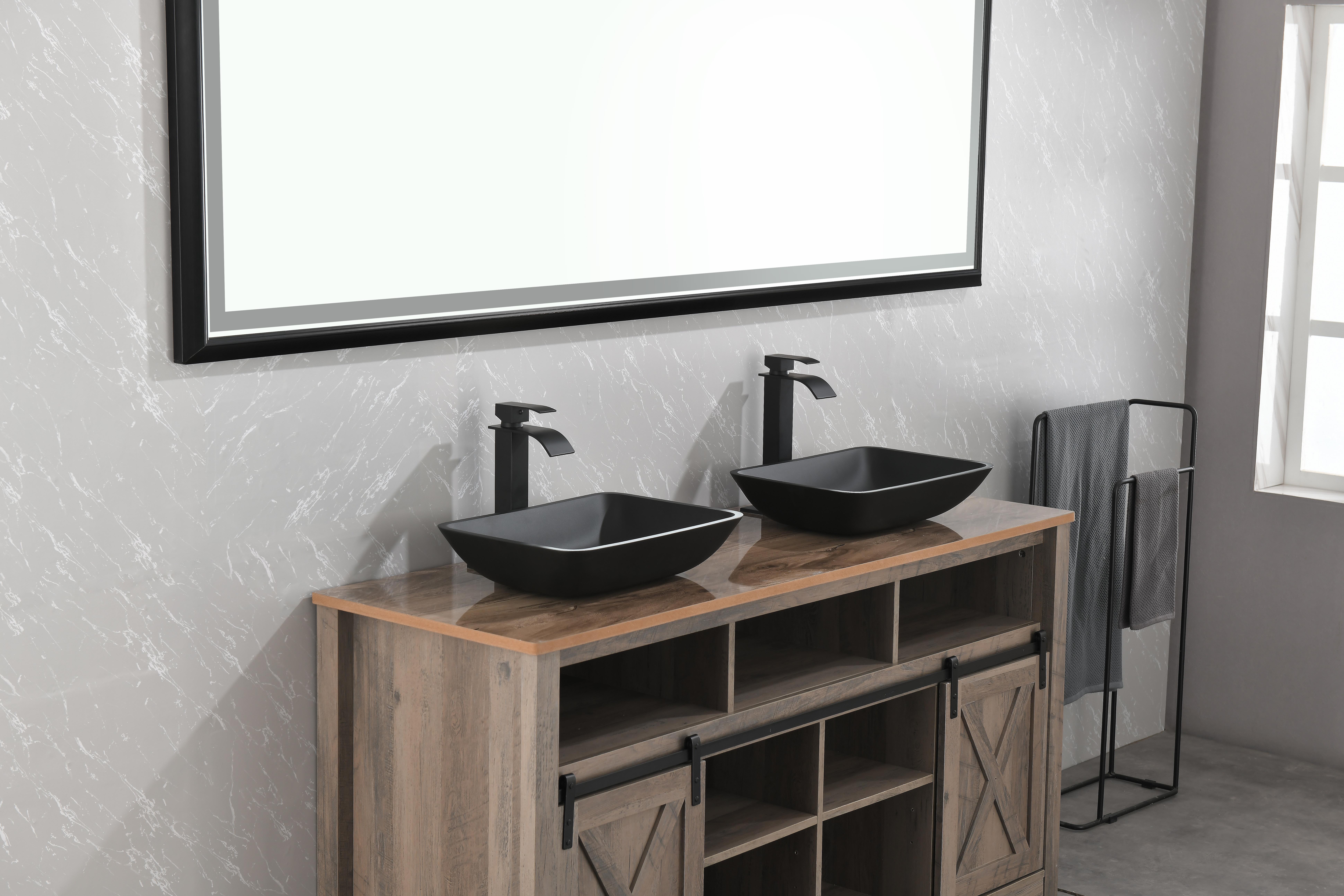13.0" L -18.13" W -4" H Matte Shell Glass Rectangular Vessel Bathroom Sink in Black with Matte Black Faucet and Pop-Up Drain in Matte BlackANTI-RUST FINISH: plated finish on faucet and pop-up drain expertly resist rust, corrosion, and tarnishECO-FRIENDLY FAUCET: Bathroom faucet operates at flow rate, conserving water without sacrificing water pressureALL-IN-ONE SET INCLUDESs: 1 rectangular Matte Shell vessel bowl sink, 1 single-hole 1-handle vessel faucet, 1 pop-up drain without overflow, all mounting hardware and hot/cold waterlinesSINK DIMENSIONS: 18-in L x 13-in W x 4-in HFINGERPRINT FREE: Unique sink construction has specialty coating to repel fingerprints and markssink sets bring state-of-the-art components and style to your modern bathroom of today. Deliberately designed, Black Bathroom Sink Set is made to outlast years of use. Innovative and intense, sinks bring the same excellence of classic solid tempered glass and take the construction to the next level. The is deeply opaque and has an eggshell-like sheen that is rich yet subtle. Its deep ebony shade is infused into the sink itself, eliminating the risk of a chipped finish. It has a unique coating to prevent fingerprints and marks, leaving it pristine for years of use. This sink has a bold rectangular shape that brings modernity into any bathroom. single-hole, vessel mount bathroom faucet. This easy-to-use faucet is tall without overpowering your space. It has exceptional hardware and is outfitted in a modern matte black finish that resists rust, corrosion and tarnish. The set is made complete with a matching pop-up drain without overflow. Experience the synergy of character and style with this all-in-one bathroom set.Contact customer service for more high-quality pictures