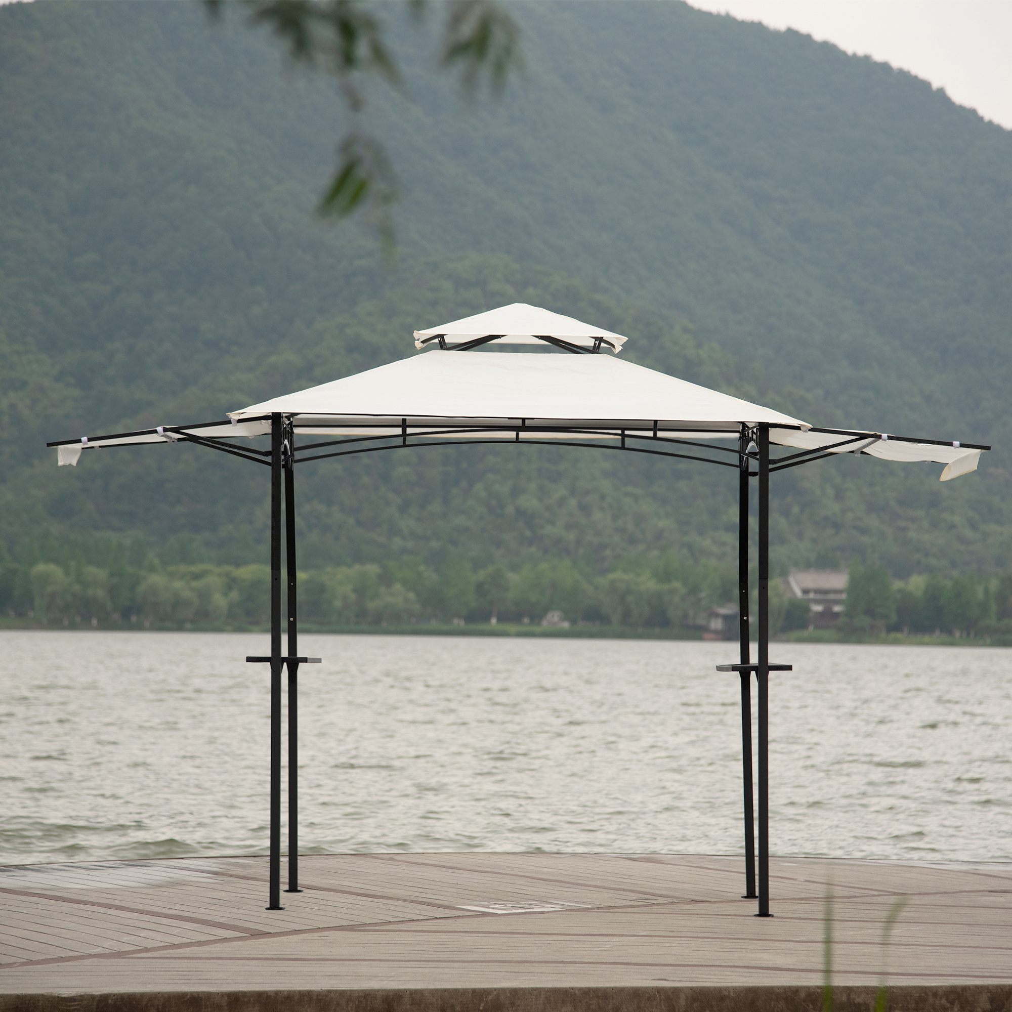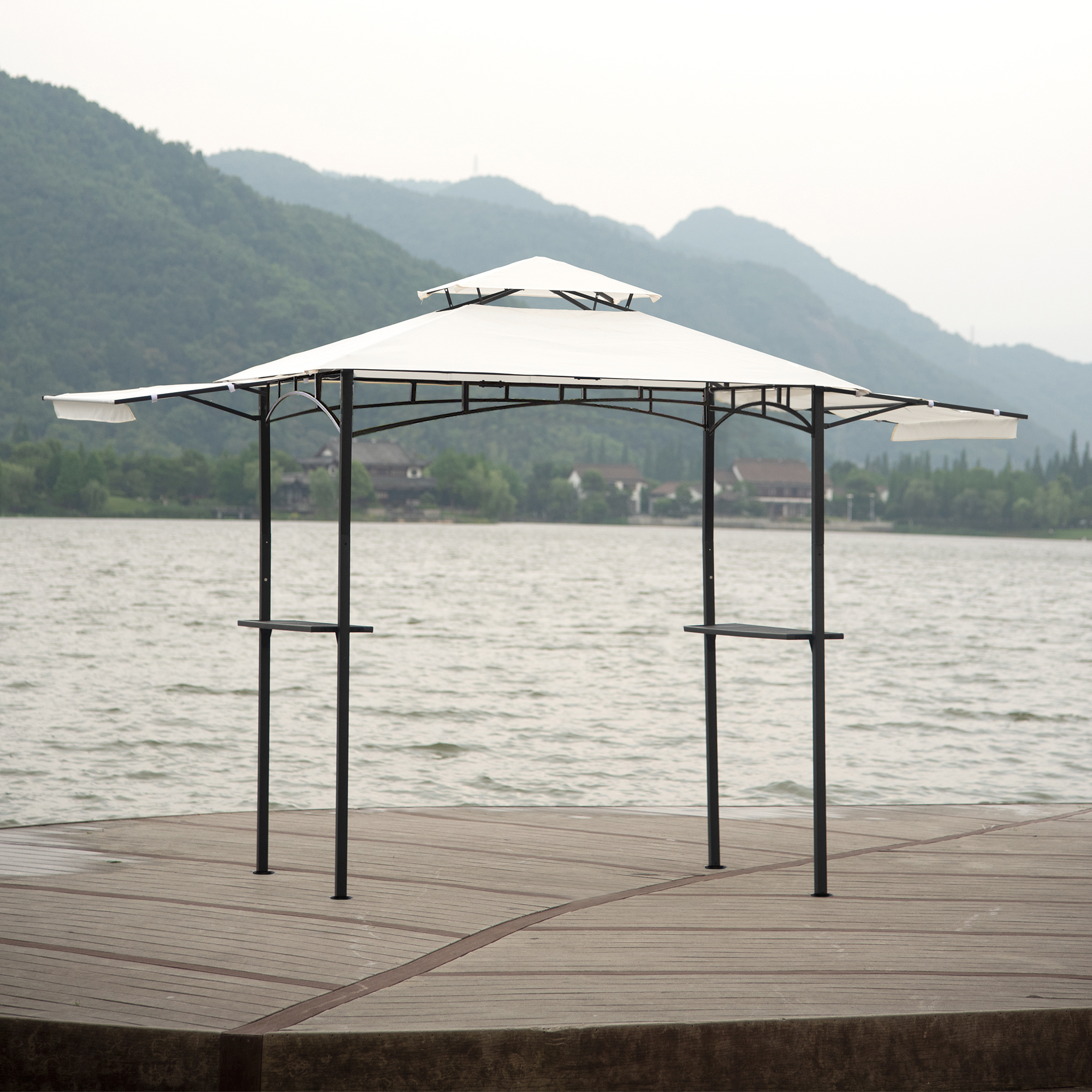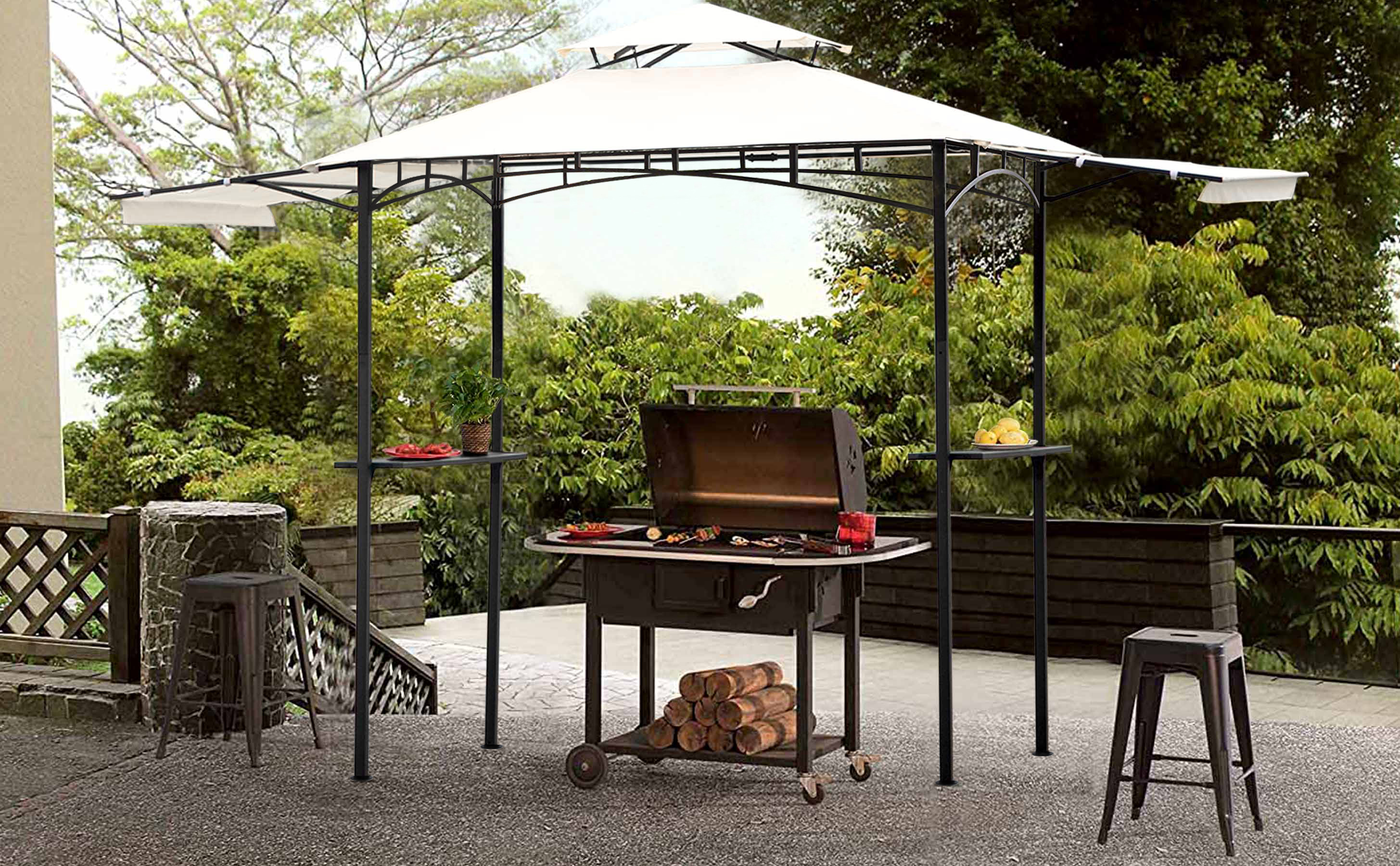 The image you are enjoying a party but always are grill accessories not at arm's length. Our gazebo comes with 2 bar counters so that your tools can be put there conveniently. Have a nice day with this gazebo!