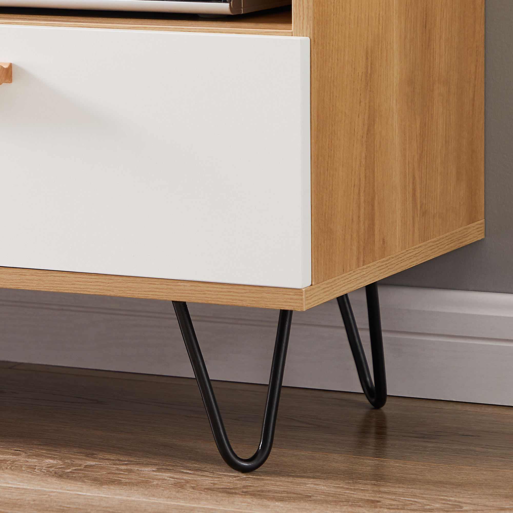 - Very morden style TV STAND, SOLID WOOD COLOR MATCHED WARM WHITE LOOKS MORE BEAUTIFUL;