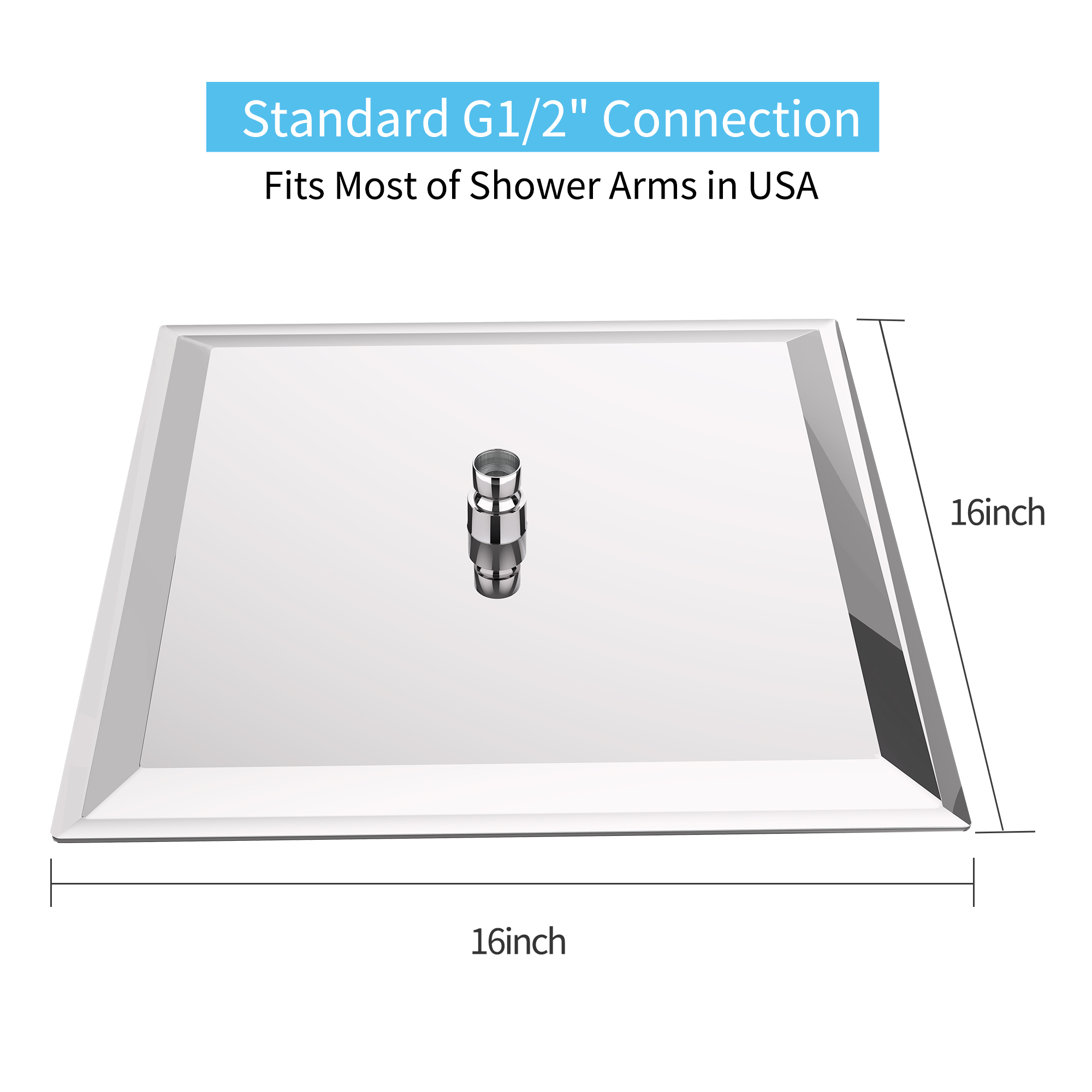 ①HIGH PRESSURE SHOWER HEAD: rain shower head can optimized water pressure, never need to worry about the low water pressure shower, rainfall shower head always offers consistent powerful rain shower. Water-efficient shower head save your water cost.②LARGE RAIN SHOWER HEAD: rain shower head is ultra-thin and modern, 16" large square rainfall shower head with full body coverage, get you full body dynamic water massage③SELF CLEANING NOZZLES: The rainfall shower head with 324 of soft silicone nozzles in total can prevent limescale build-up, resist high-temperature, resistant to clogging, easy to clean④BUILT TO LAST: High grade 304 stainless steel square rain shower head brushed nickel finish offers a luxury look, ensuring corrosion resistant and durable;⑤STANDARD G1/2" THREAD CONNECTION: Easy wall mount installation without tools; Can serve as both fixed ceiling rain shower head or connect with shower arm with adjustable angles