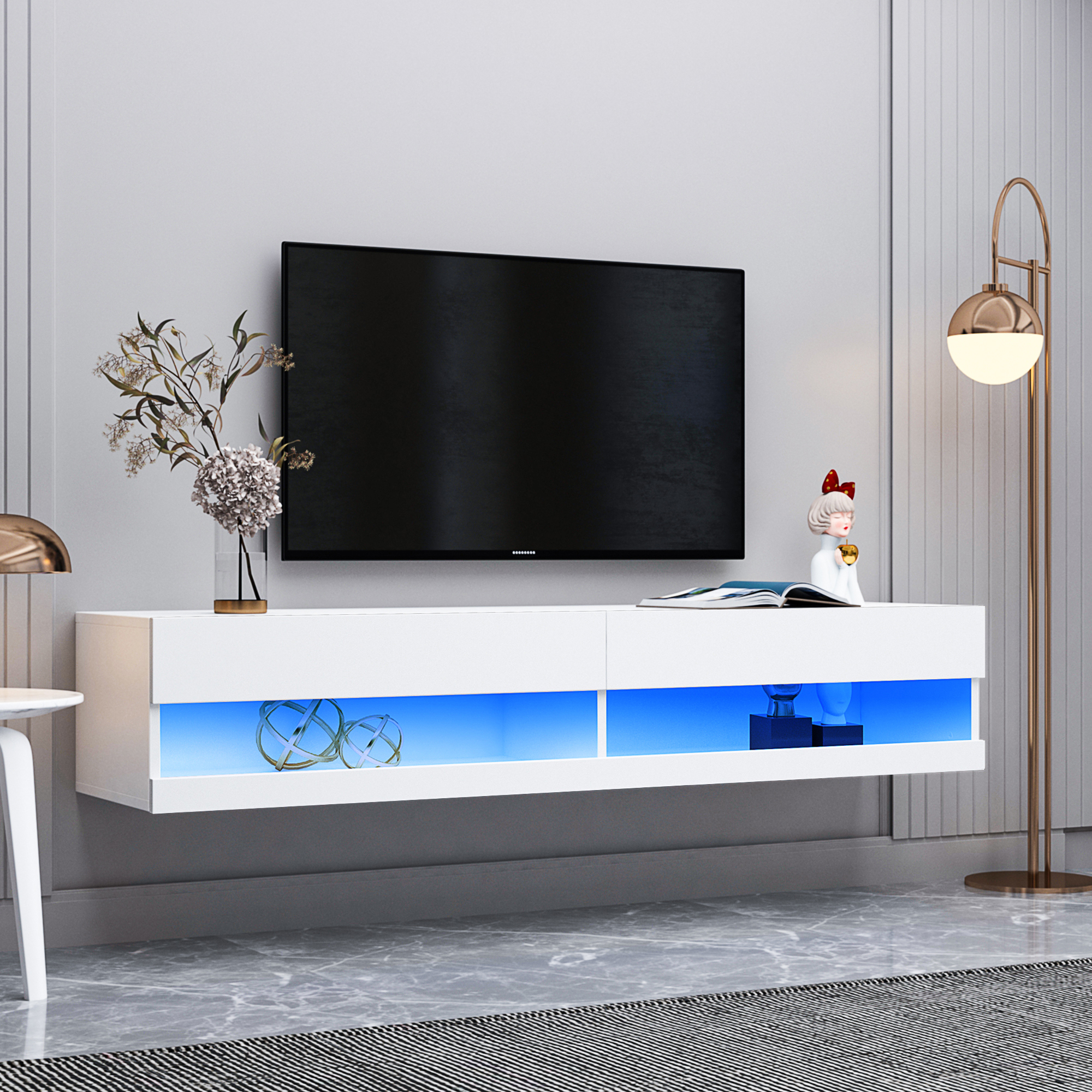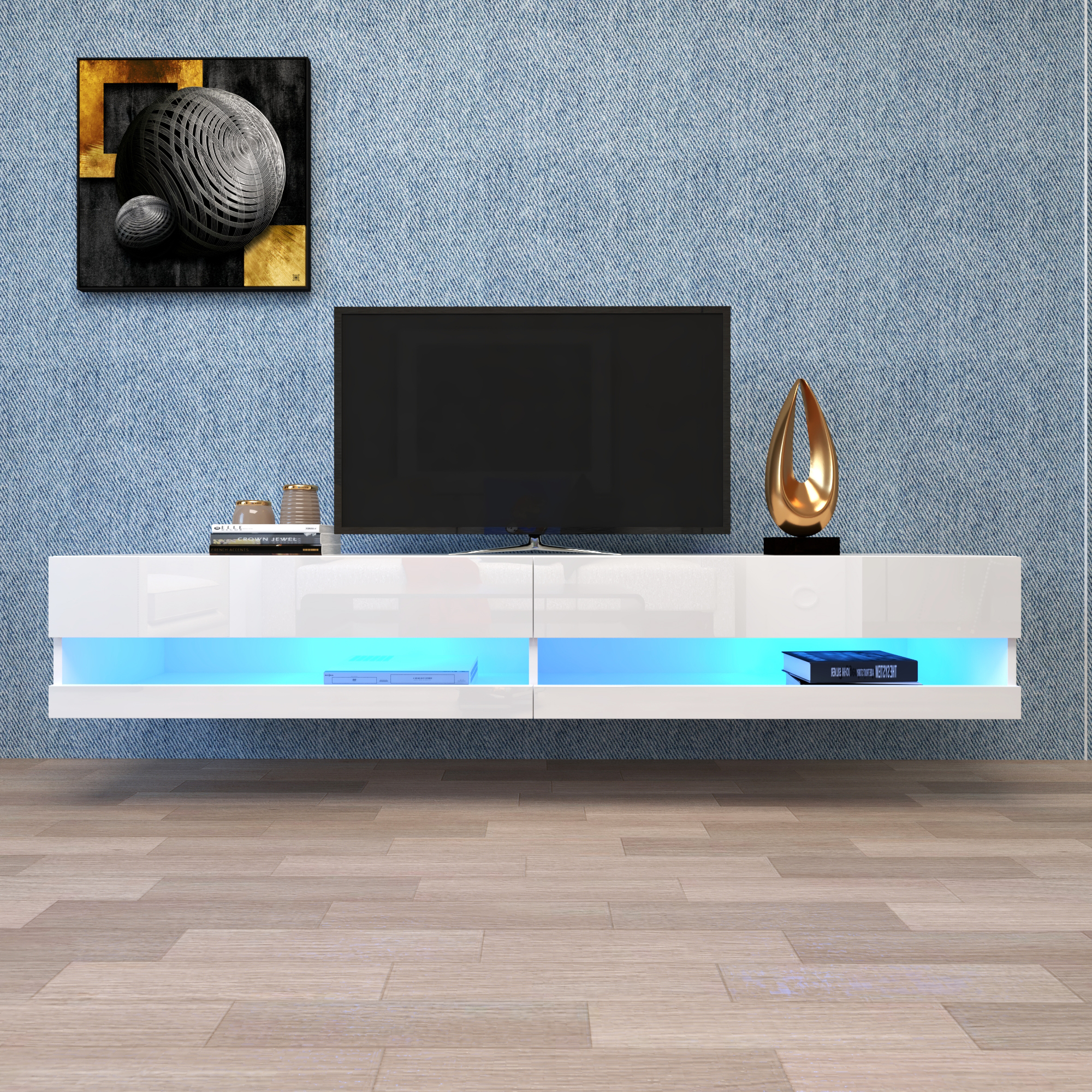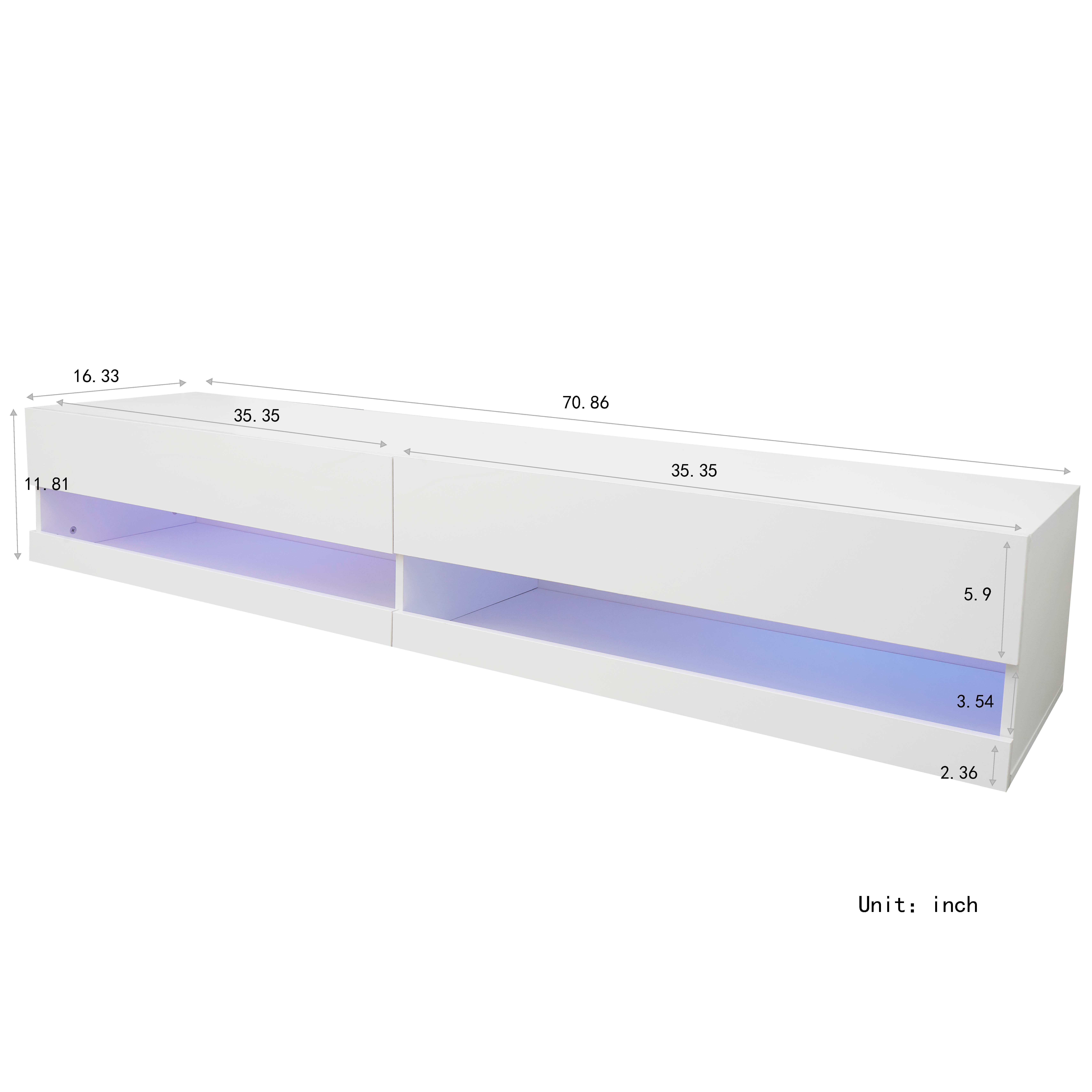 180 Wall Mounted Floating 80' TV Stand with 20 Color LEDs White