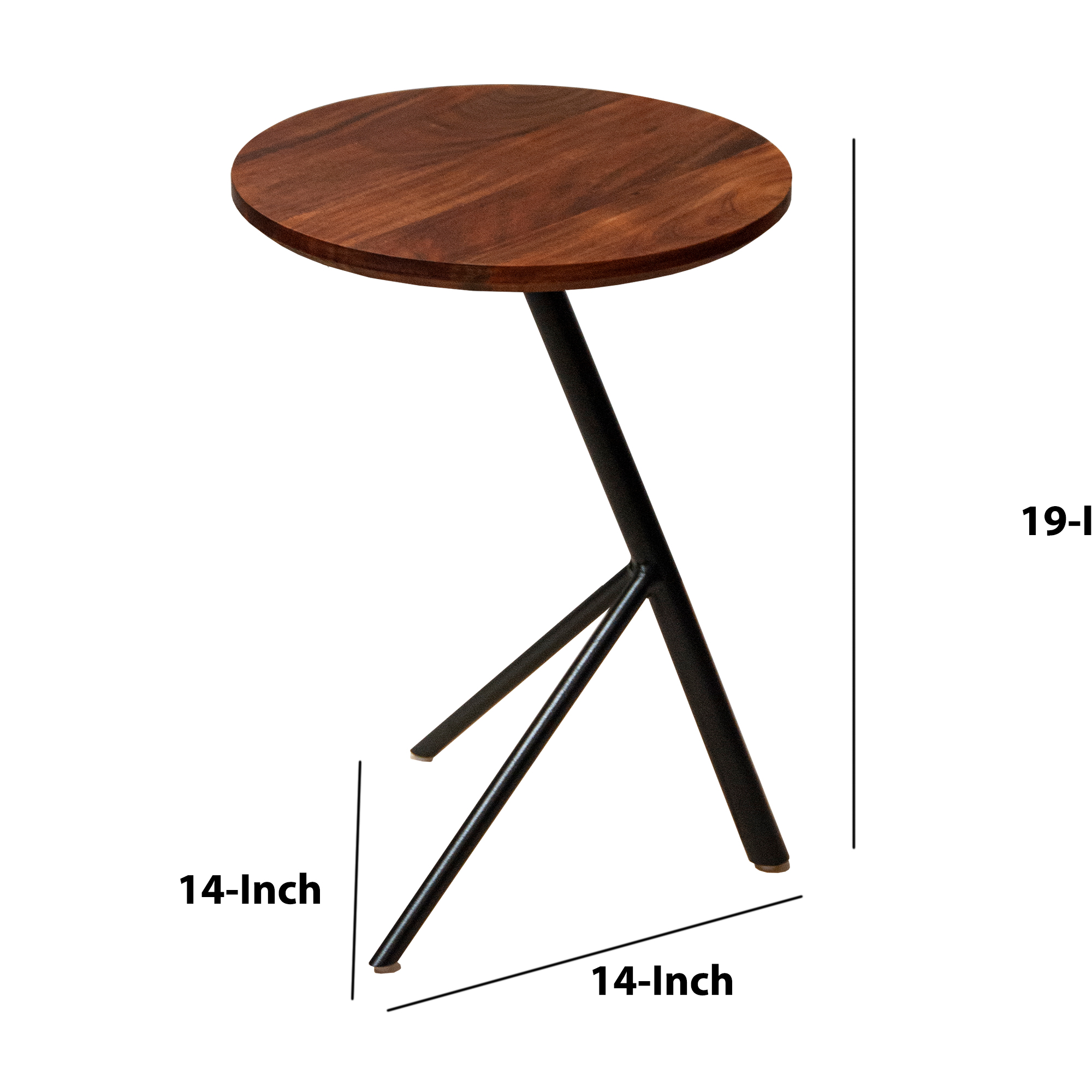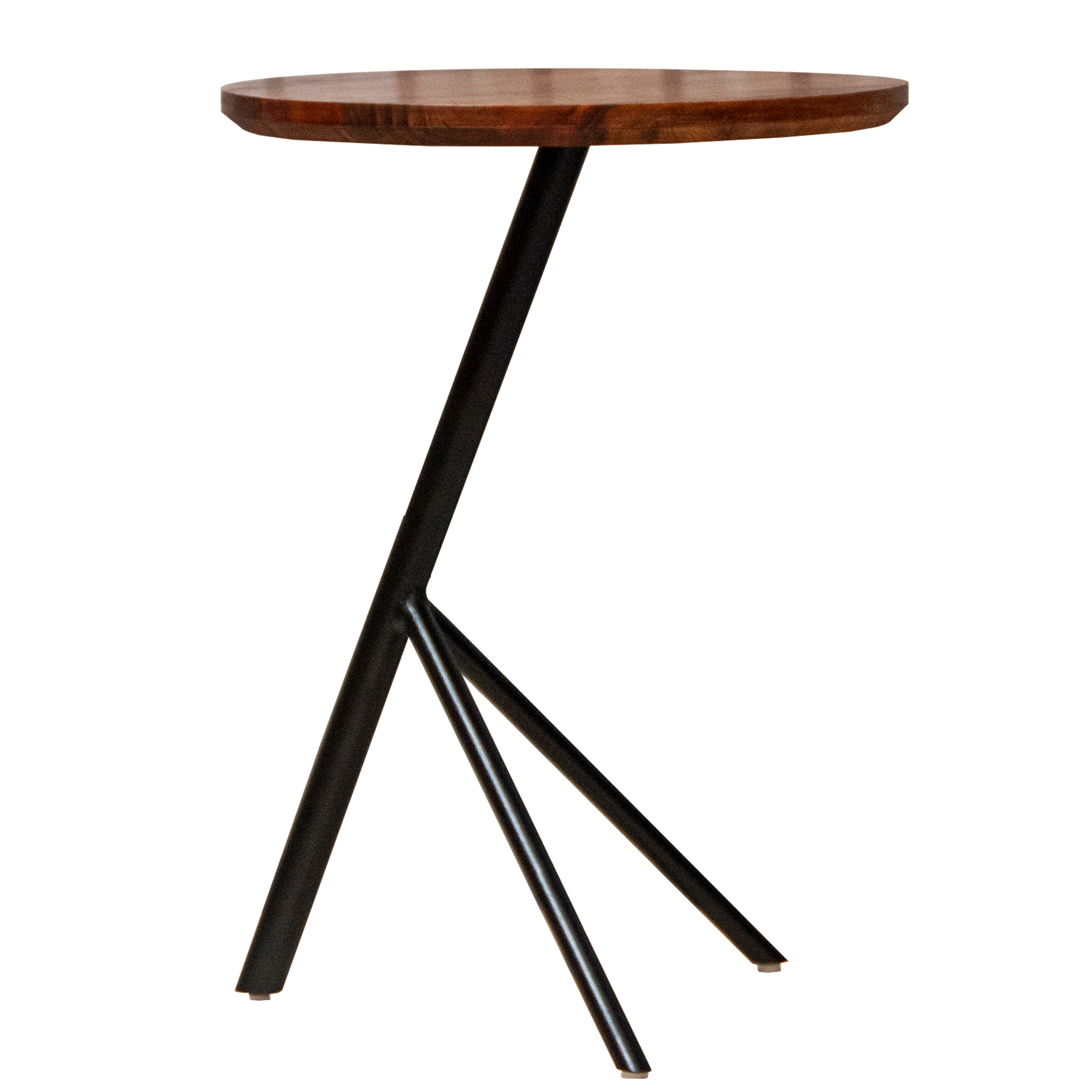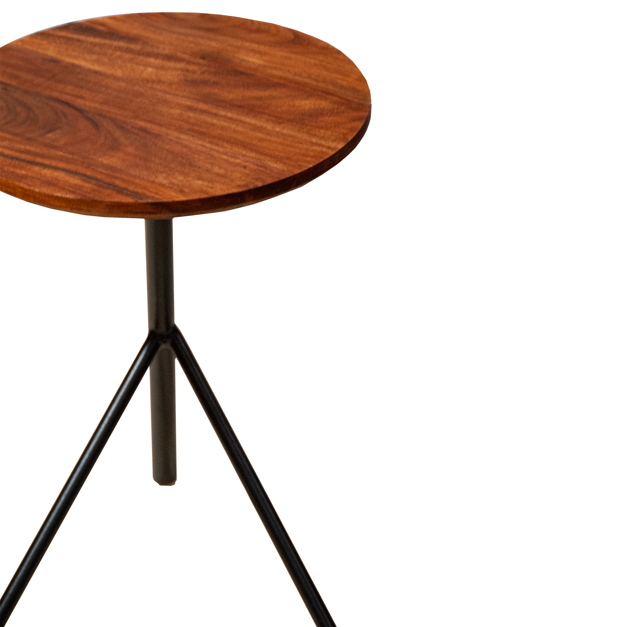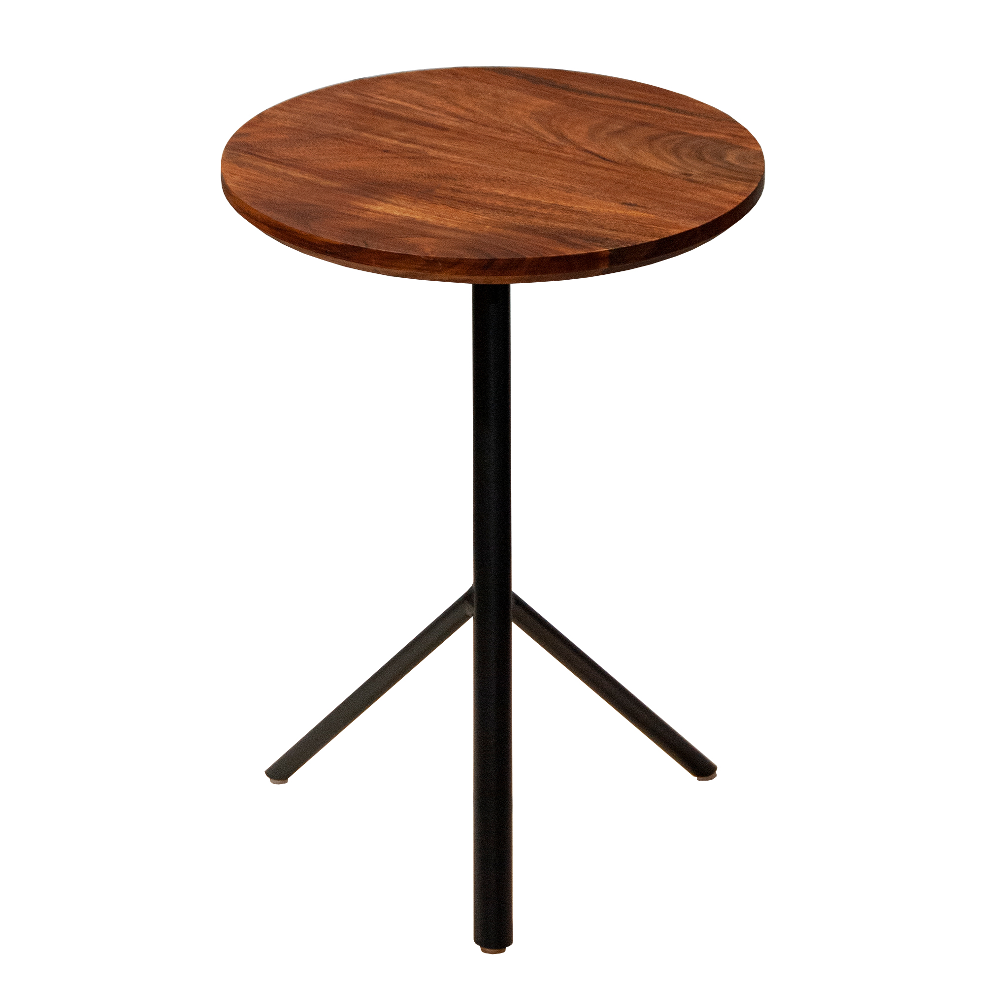 Exquisitely crafted, this side table is a perfect blend of contemporary elegance and industrial style. Depicting clean lines and a round silhouette, the wood grain details on the tabletop impart a nature inspired flair to this piece. Fully handcrafted from a water resistant acacia wood frame and sturdy but lightweight metal, the tabletop is accented with veneer to prevent the wood from warping and splitting. The walnut brown wood finish complements the black powder coated tripod frame, which includes floor protectors to prevent abrasions on hard flooring. This side table adds an astonishing charm to your interior decor.