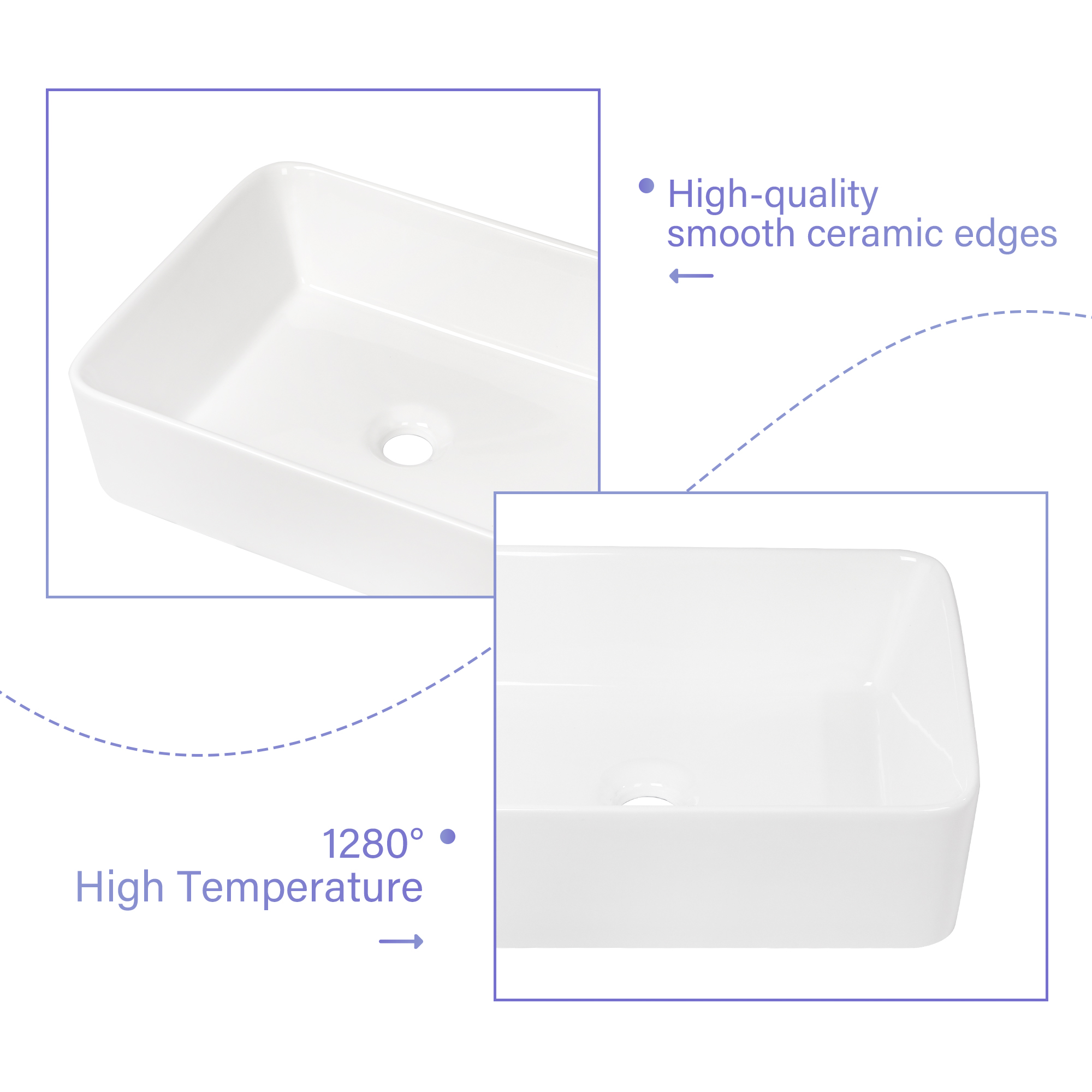 - Premium Quality Ceramic Construction, low water absorption, acid and resistance, Smooth and polished surface, Very resistant to stains, and can be easily, maintained