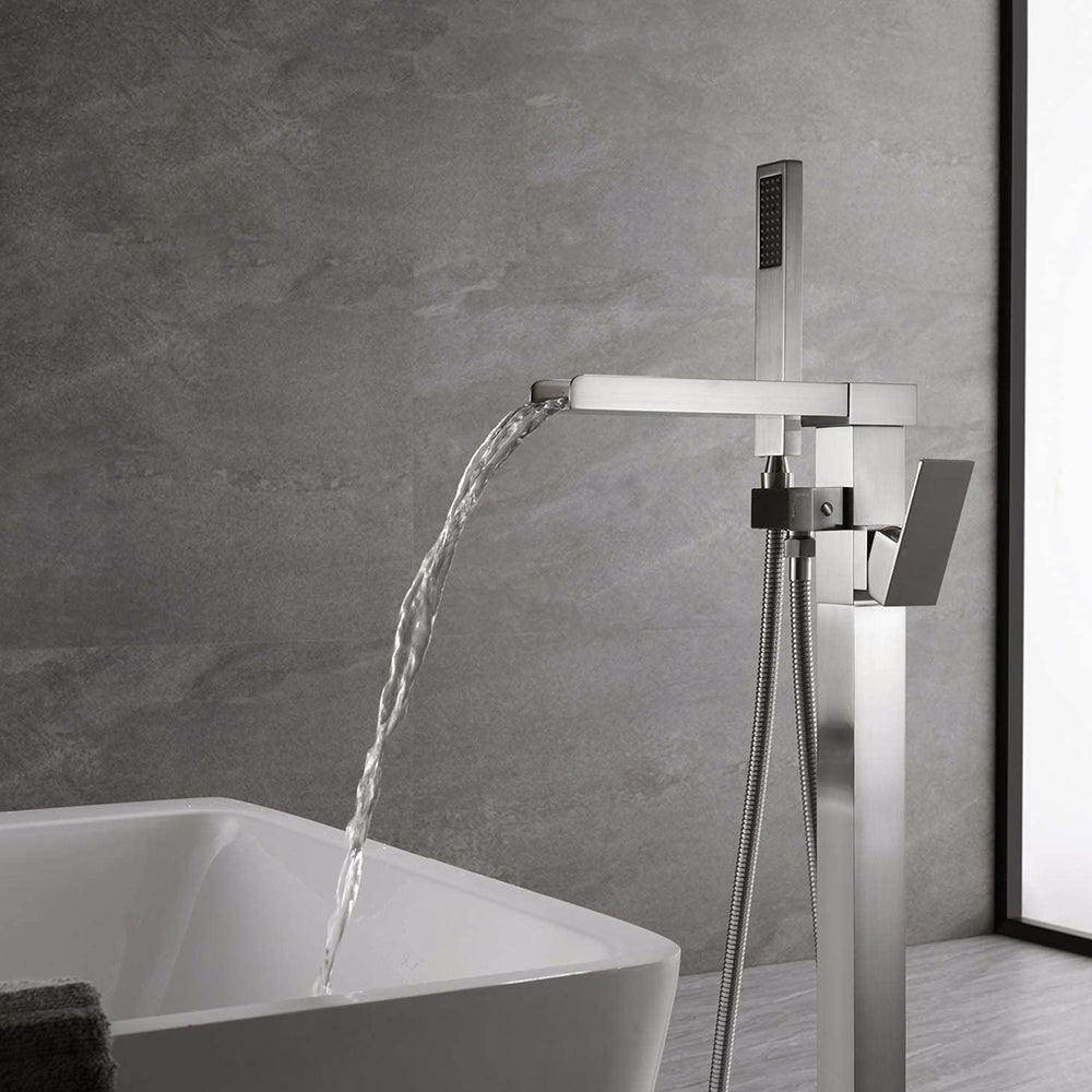 This elegant minimalistic freestanding faucet is what you are looking for to match your beautifully remodeled bathroom. A stunning finish is accented by smooth lines and a traditional curved. Waterfall spout design, it is modern and beautiful with the faucet perfect ground union is an organic whole.