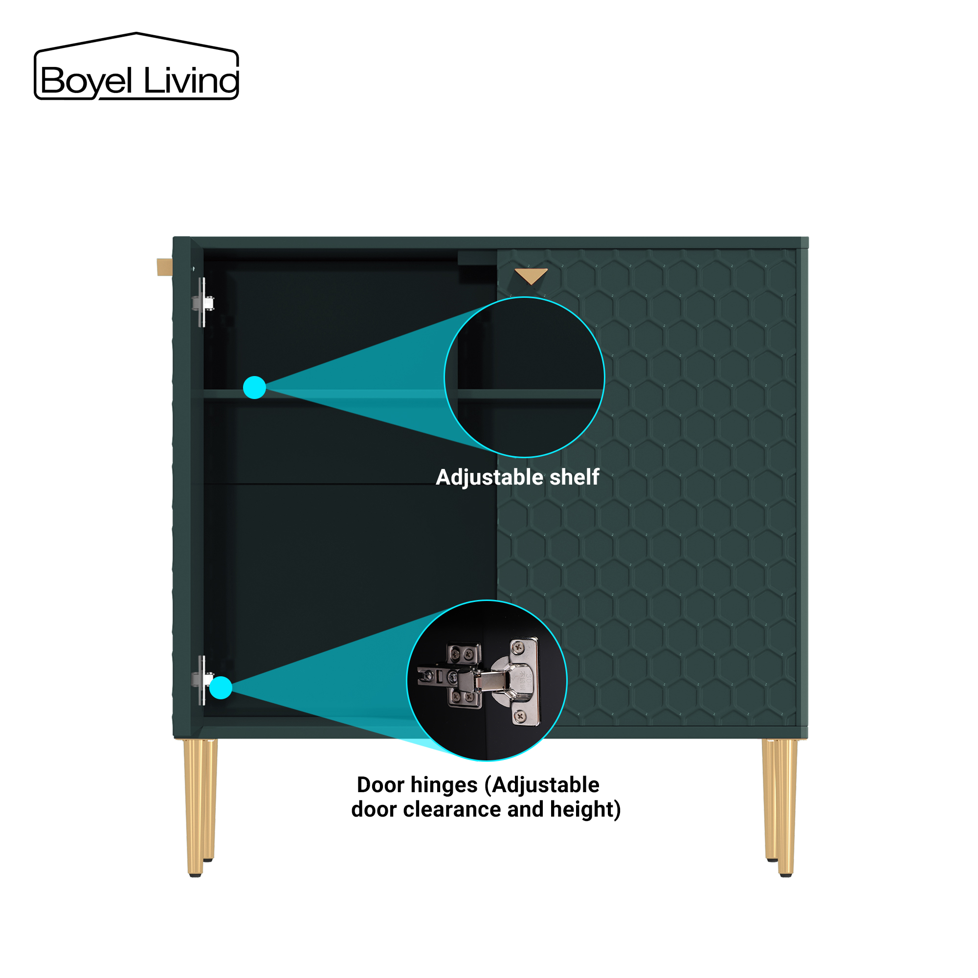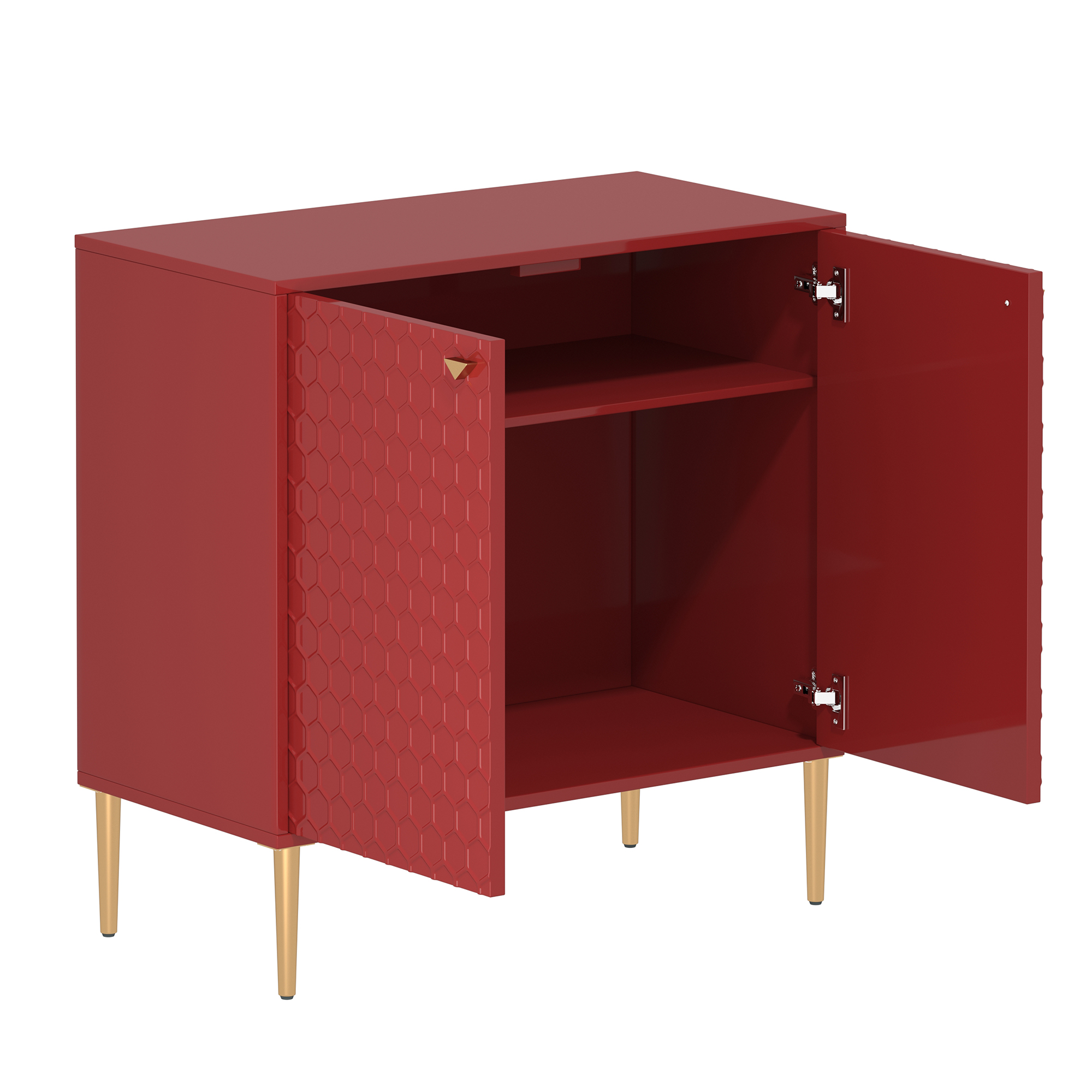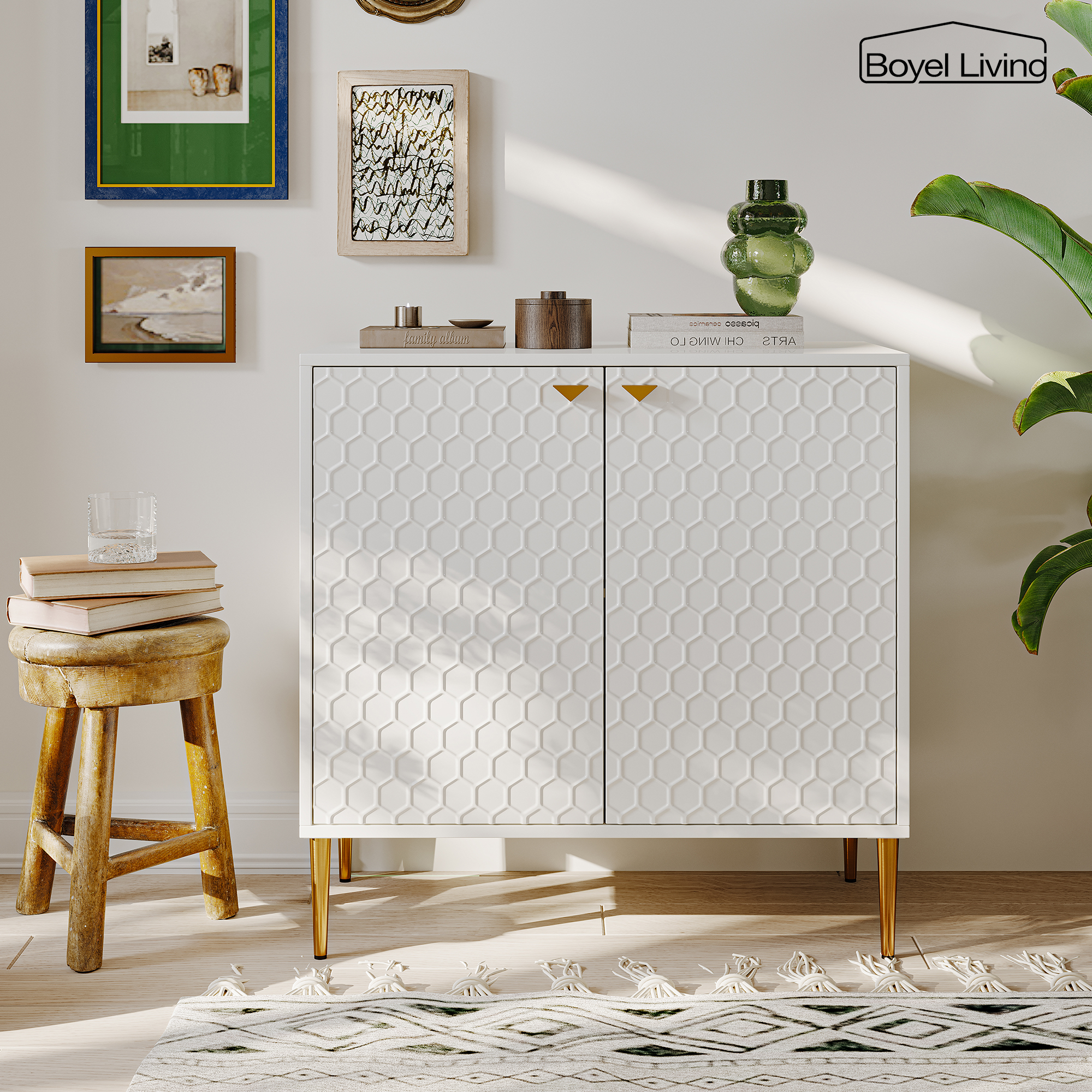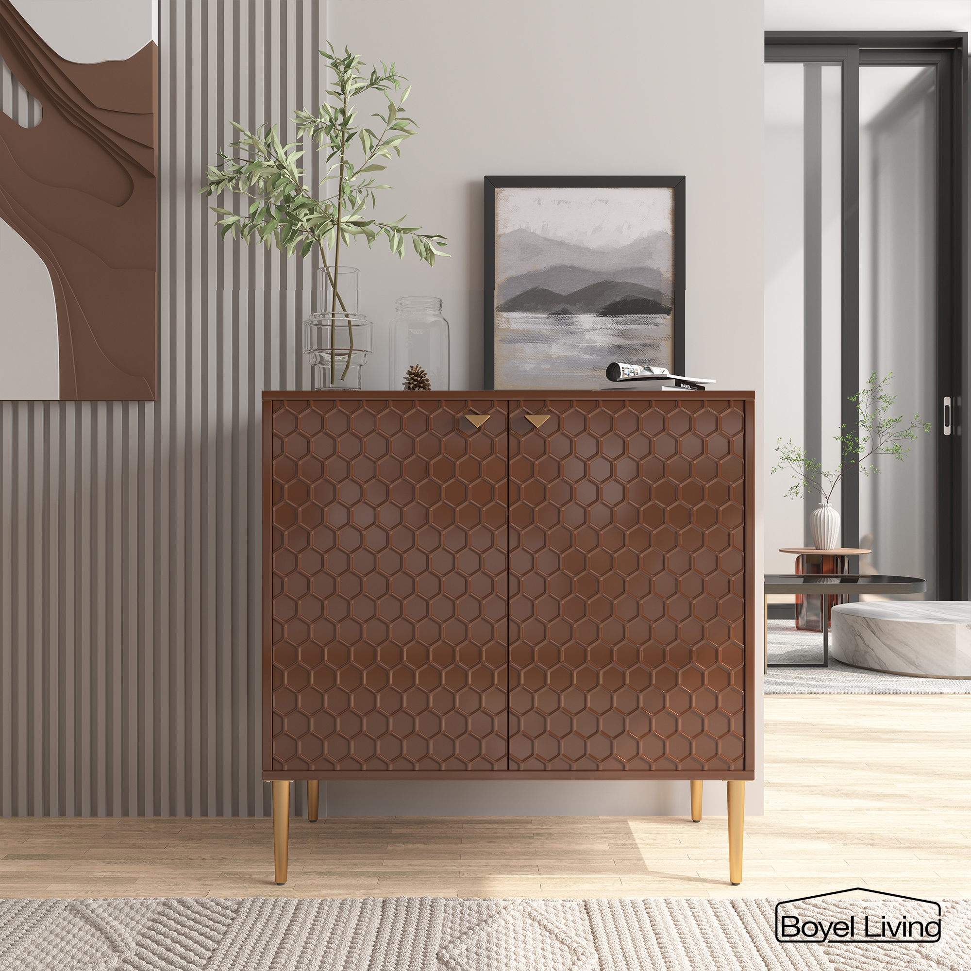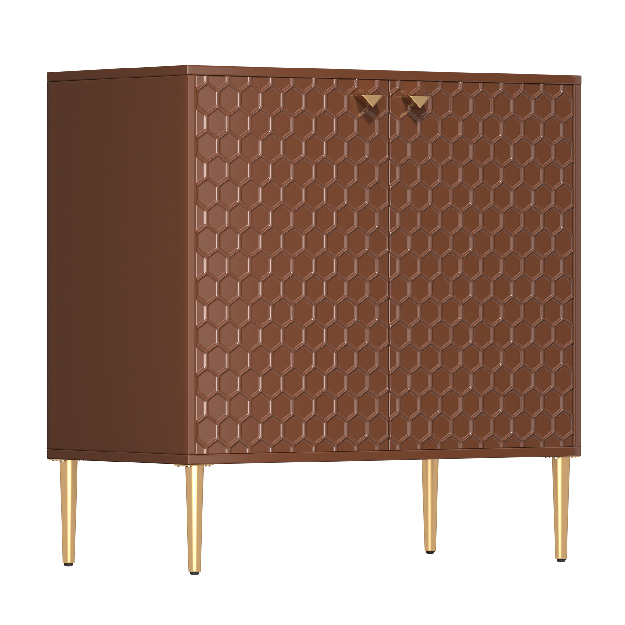 This cabinet in our shop can add valuable storage space and interesting colors to any place in your home. It is made of solid wood, and its beautiful colors add interest to your storage solution. The two cabinet doors are decorated with a raised honeycomb pattern on the front, which is an ideal place for bar necessities, extra towels, and toiletries. It is recommended that two adults assemble together. After assembly, the cabinet size is 32" H x 31.5" W x 15.75" D.