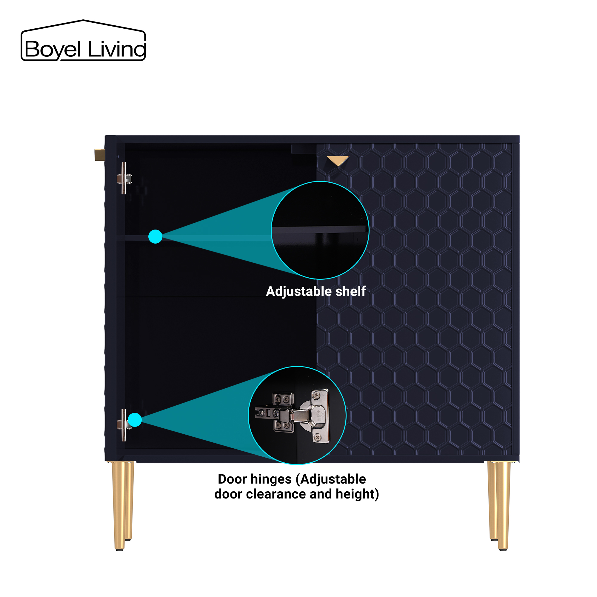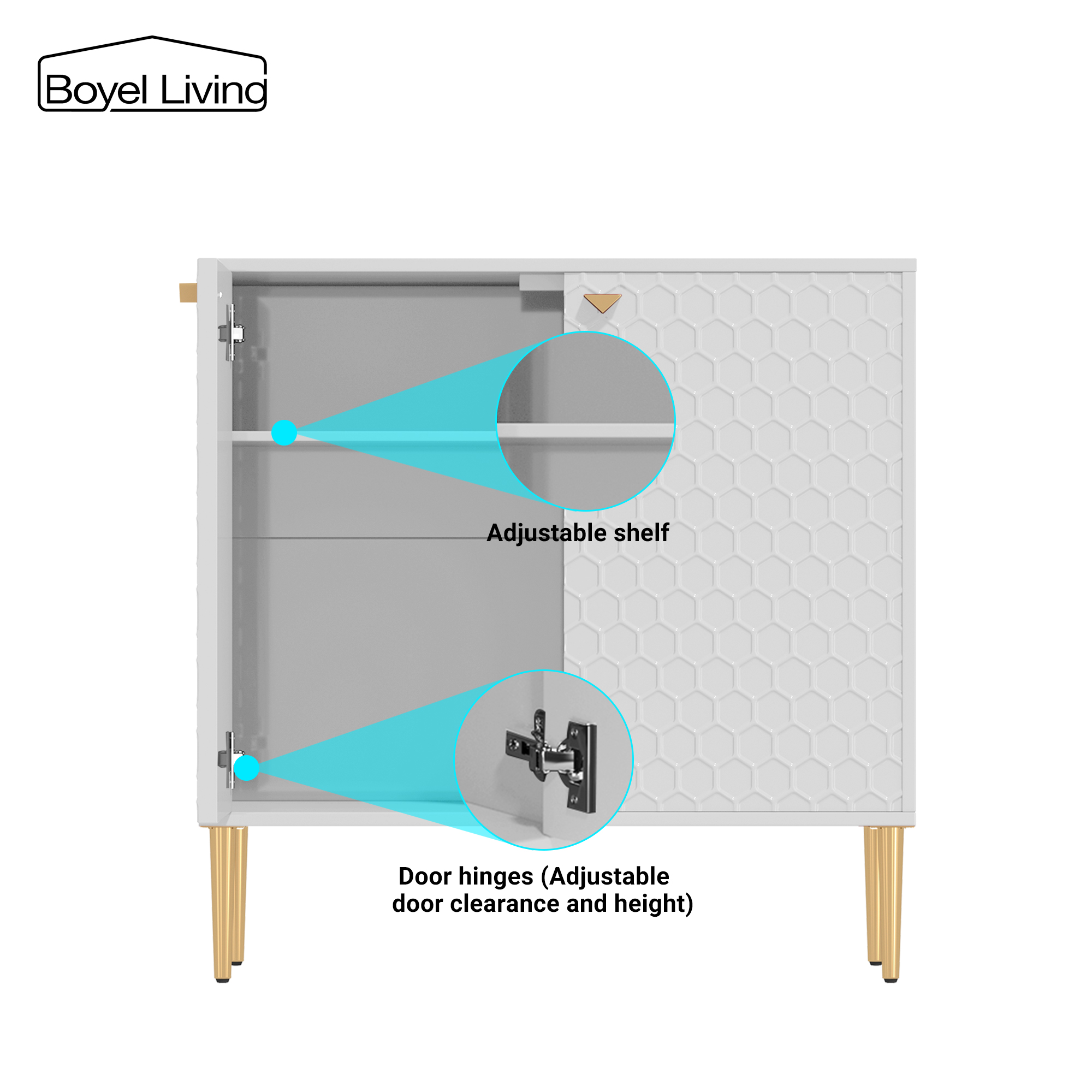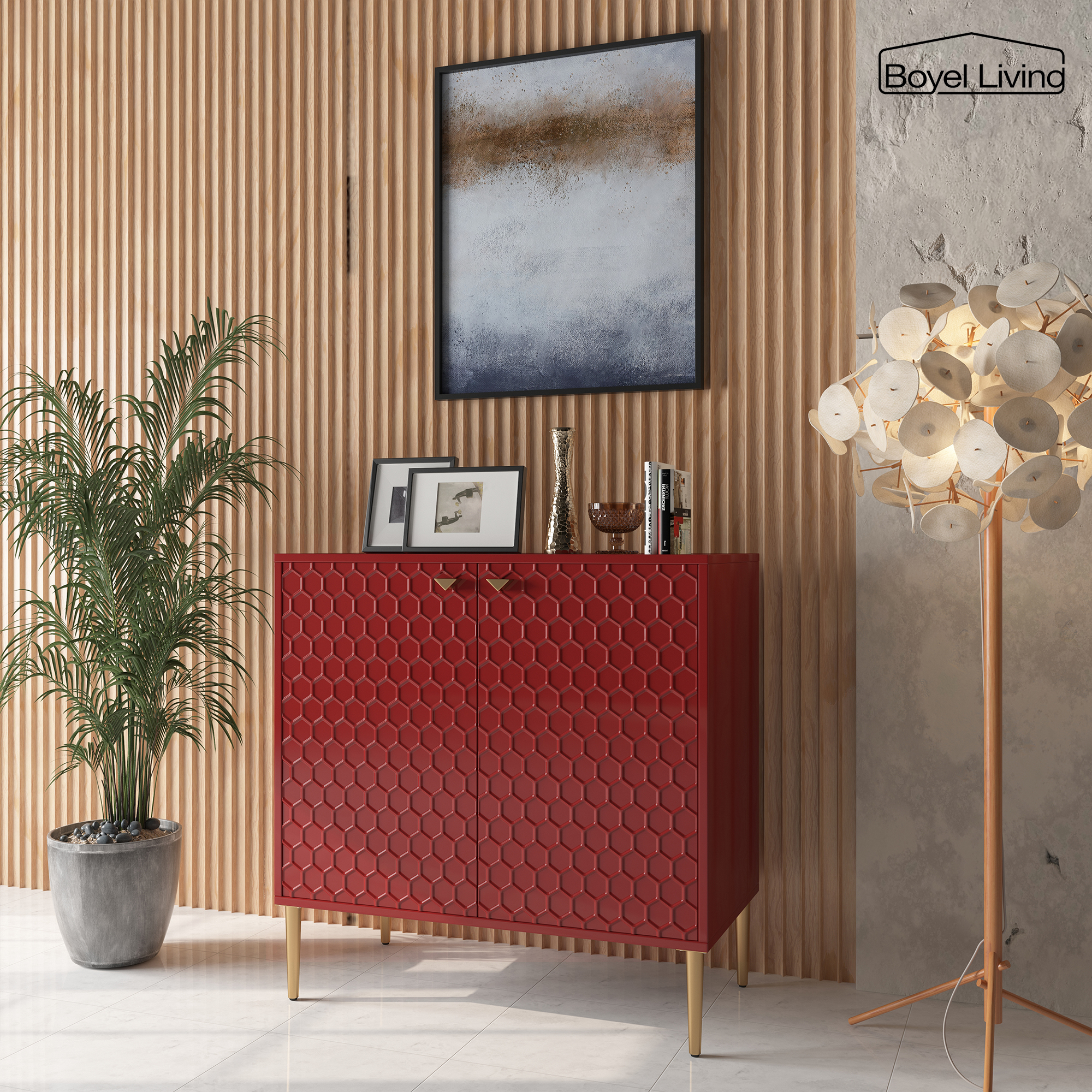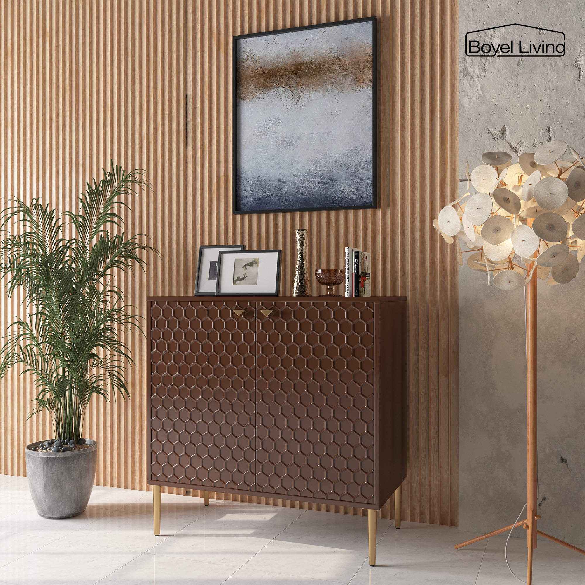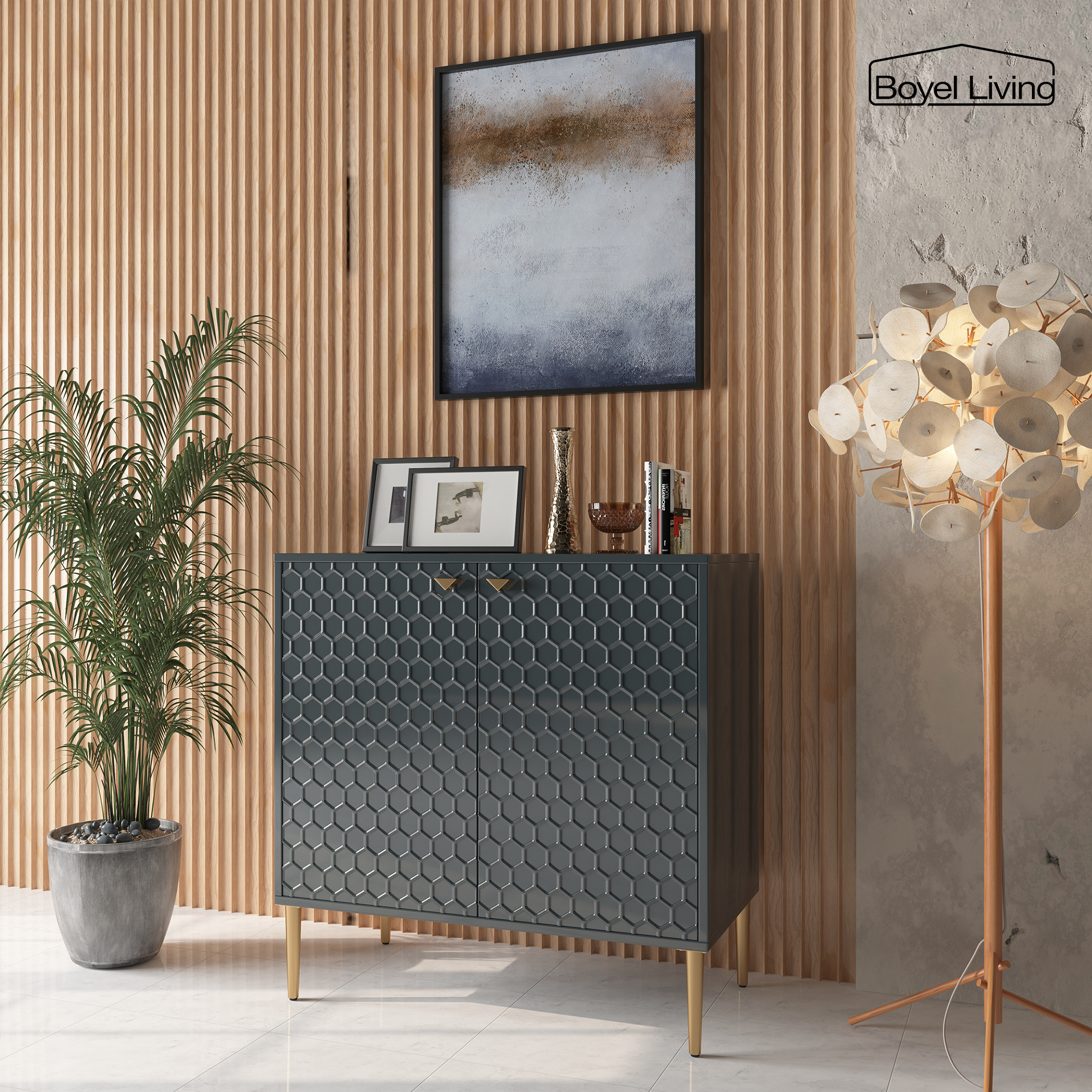 This cabinet in our shop can add valuable storage space and interesting colors to any place in your home. It is made of solid wood, and its beautiful colors add interest to your storage solution. The two cabinet doors are decorated with a raised honeycomb pattern on the front, which is an ideal place for bar necessities, extra towels, and toiletries. It is recommended that two adults assemble together. After assembly, the cabinet size is 32" H x 31.5" W x 15.75" D.