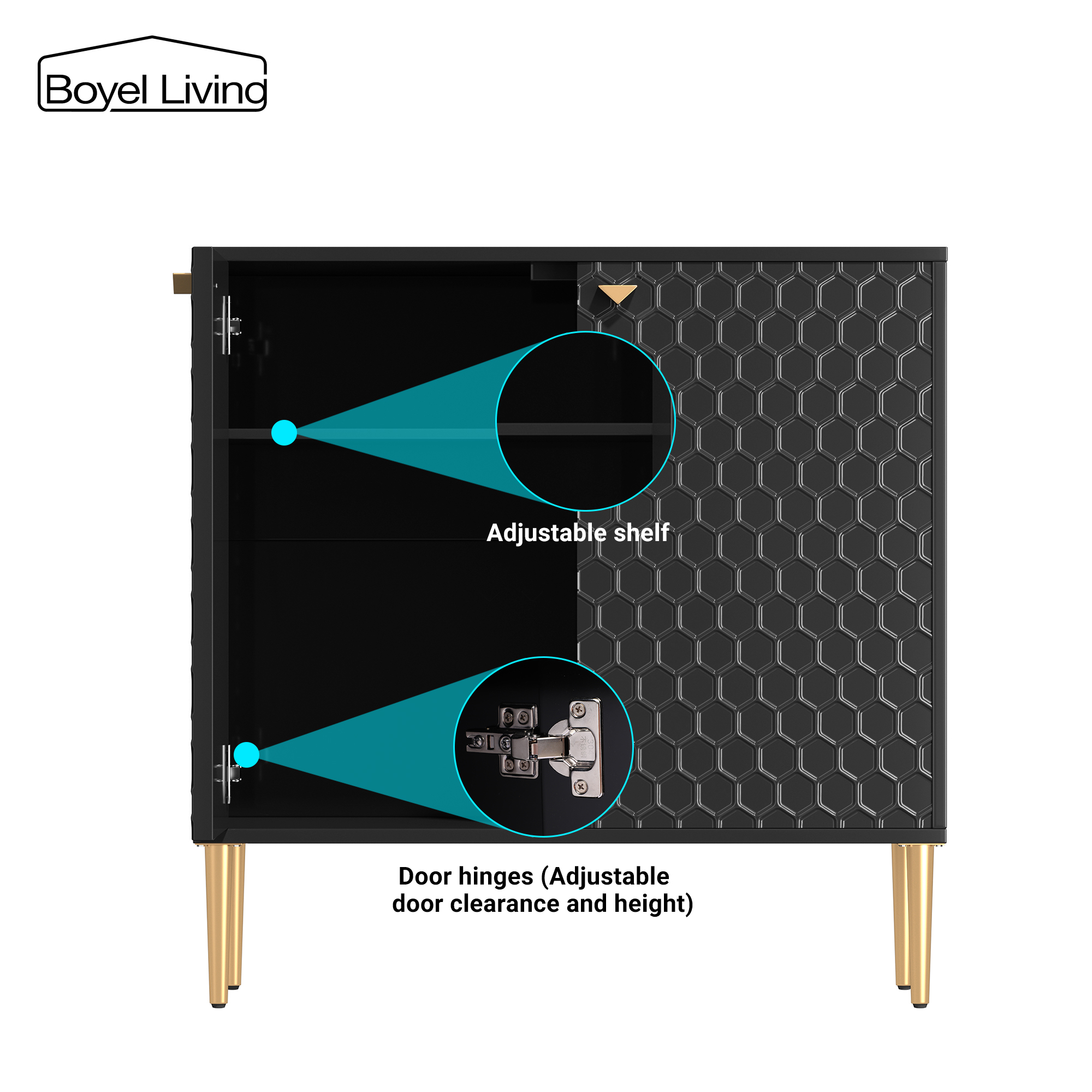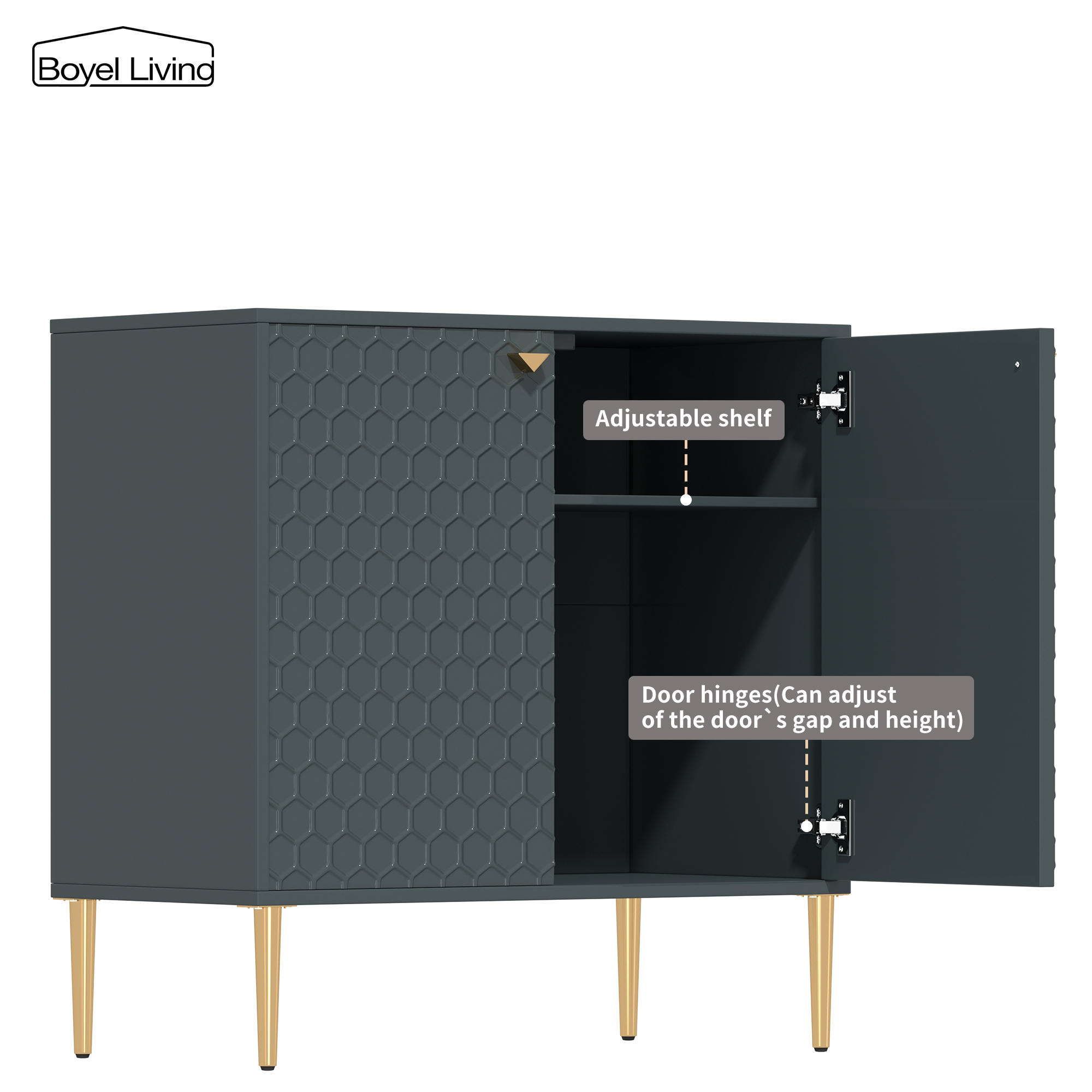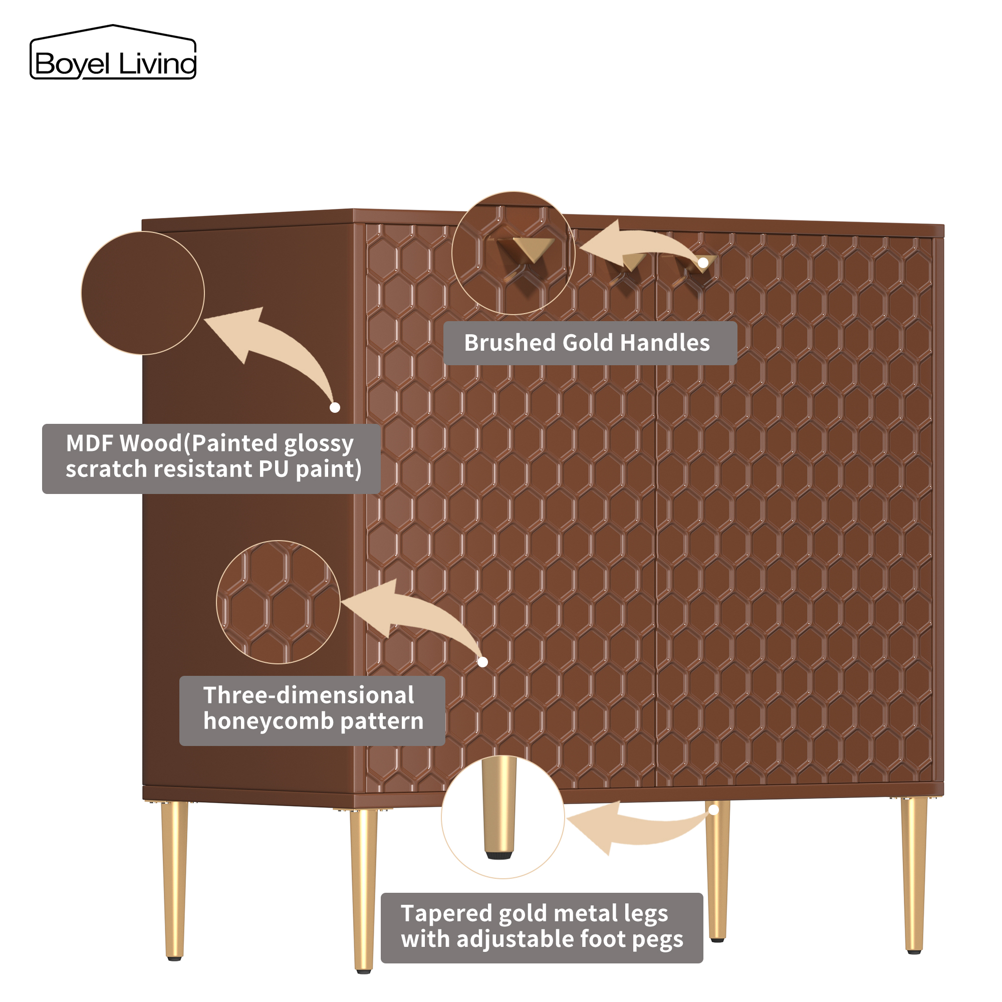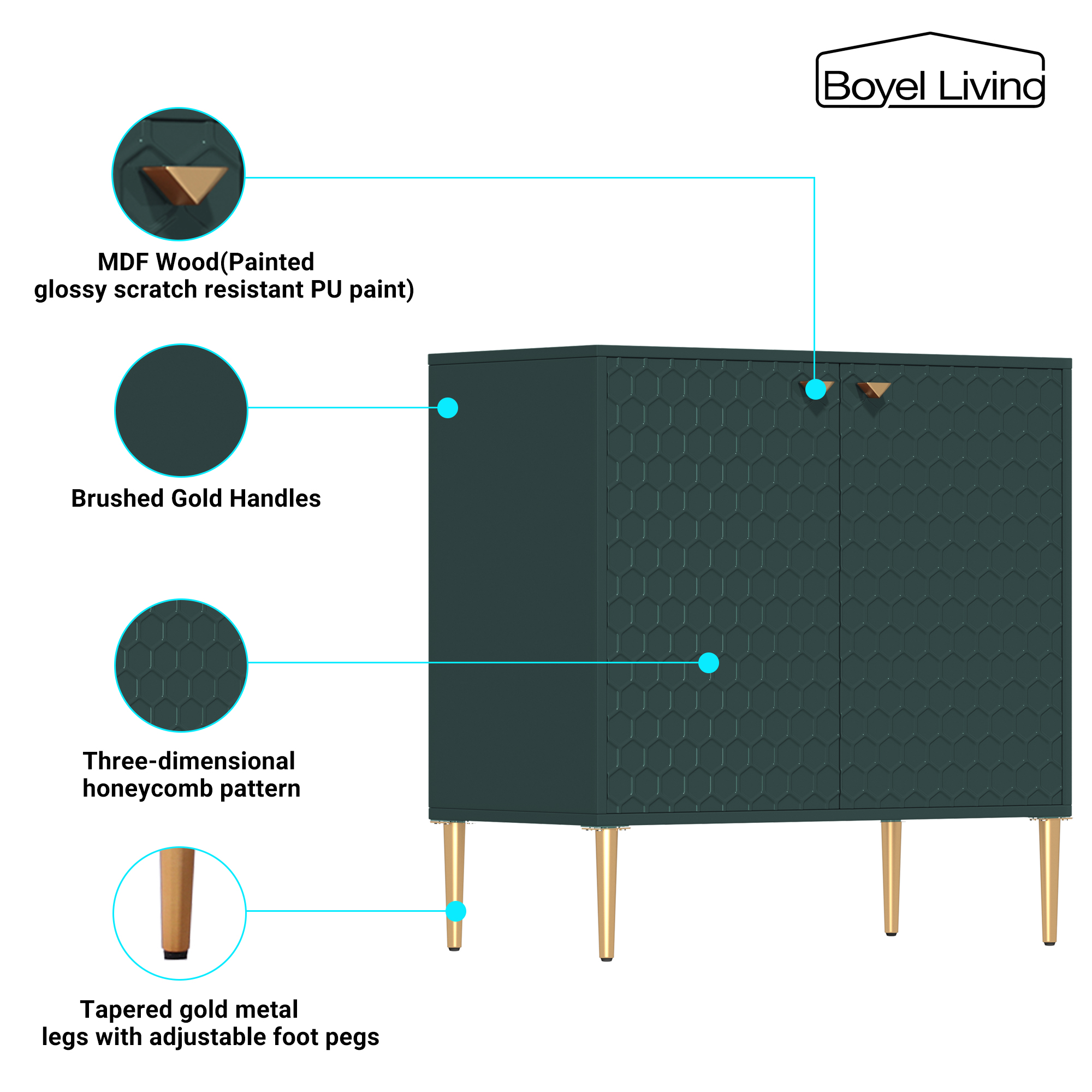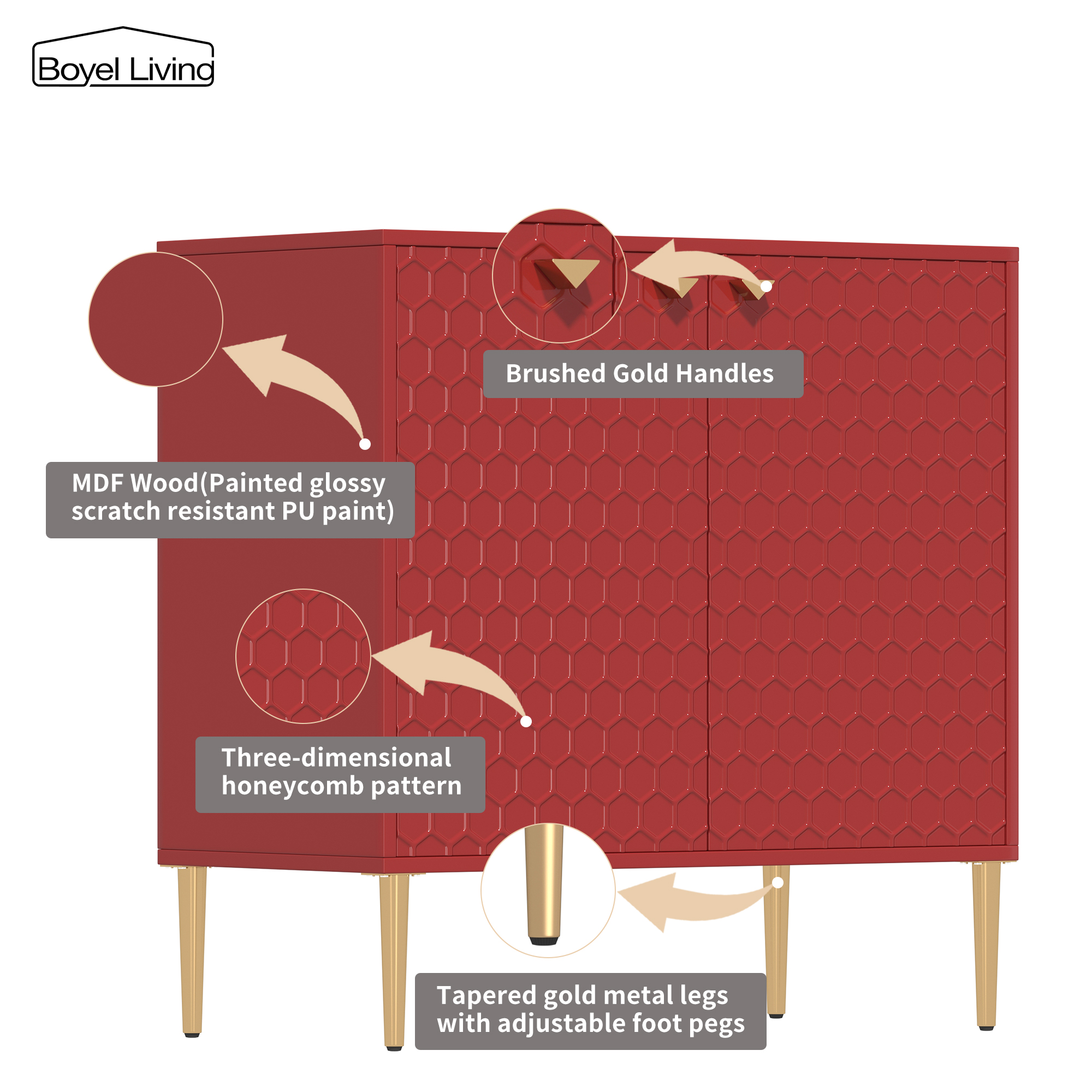 This cabinet in our shop can add valuable storage space and interesting colors to any place in your home. It is made of solid wood, and its beautiful colors add interest to your storage solution. The two cabinet doors are decorated with a raised honeycomb pattern on the front, which is an ideal place for bar necessities, extra towels, and toiletries. It is recommended that two adults assemble together. After assembly, the cabinet size is 32" H x 31.5" W x 15.75" D.