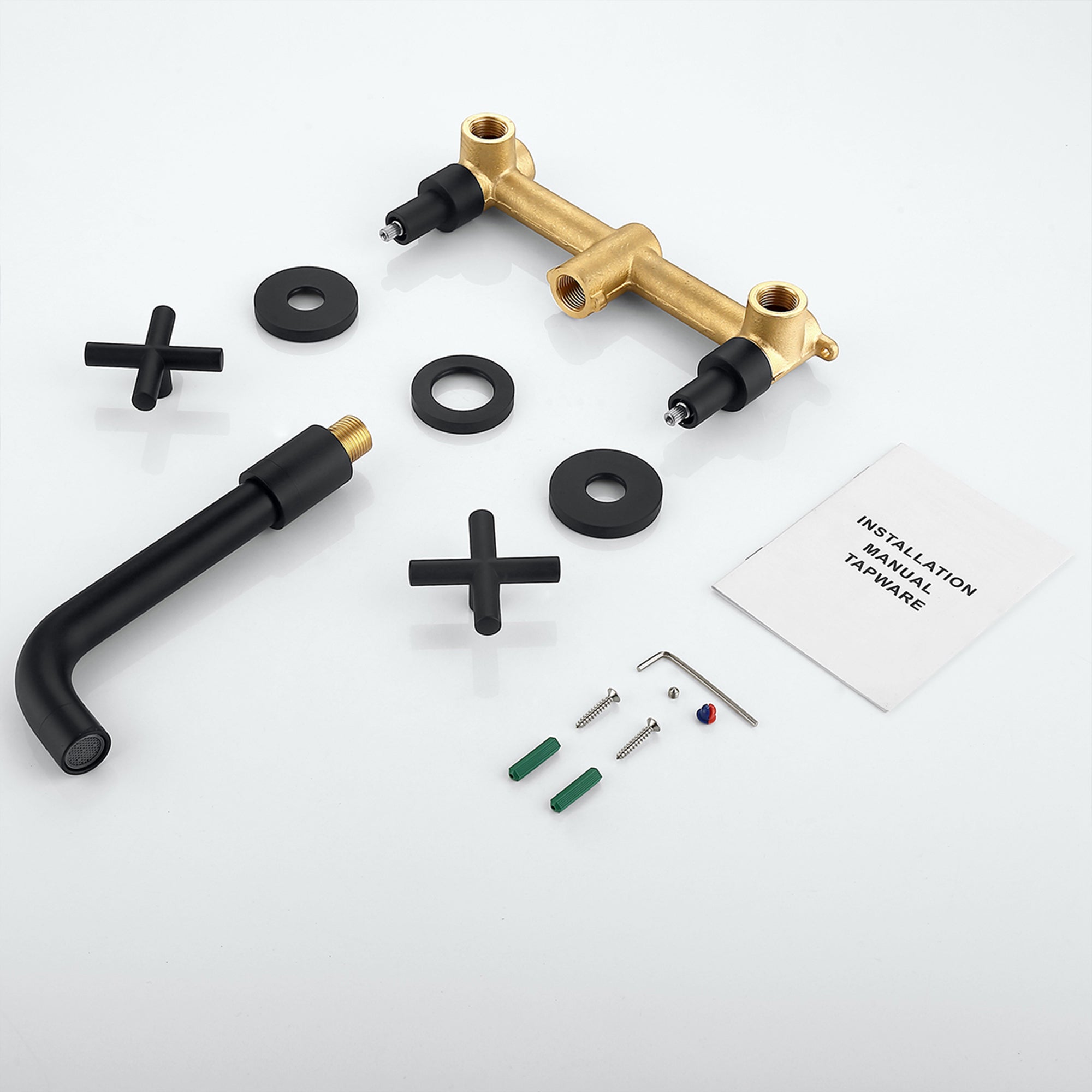 This wall-mounted bathroom faucet with solid brass body and matte black finished, resist daily scratches, corrosions. The matte black finish is the perfect complement to modern spaces such as a bathroom, lavatory, restroom, vanity, vessel sink, and tub.