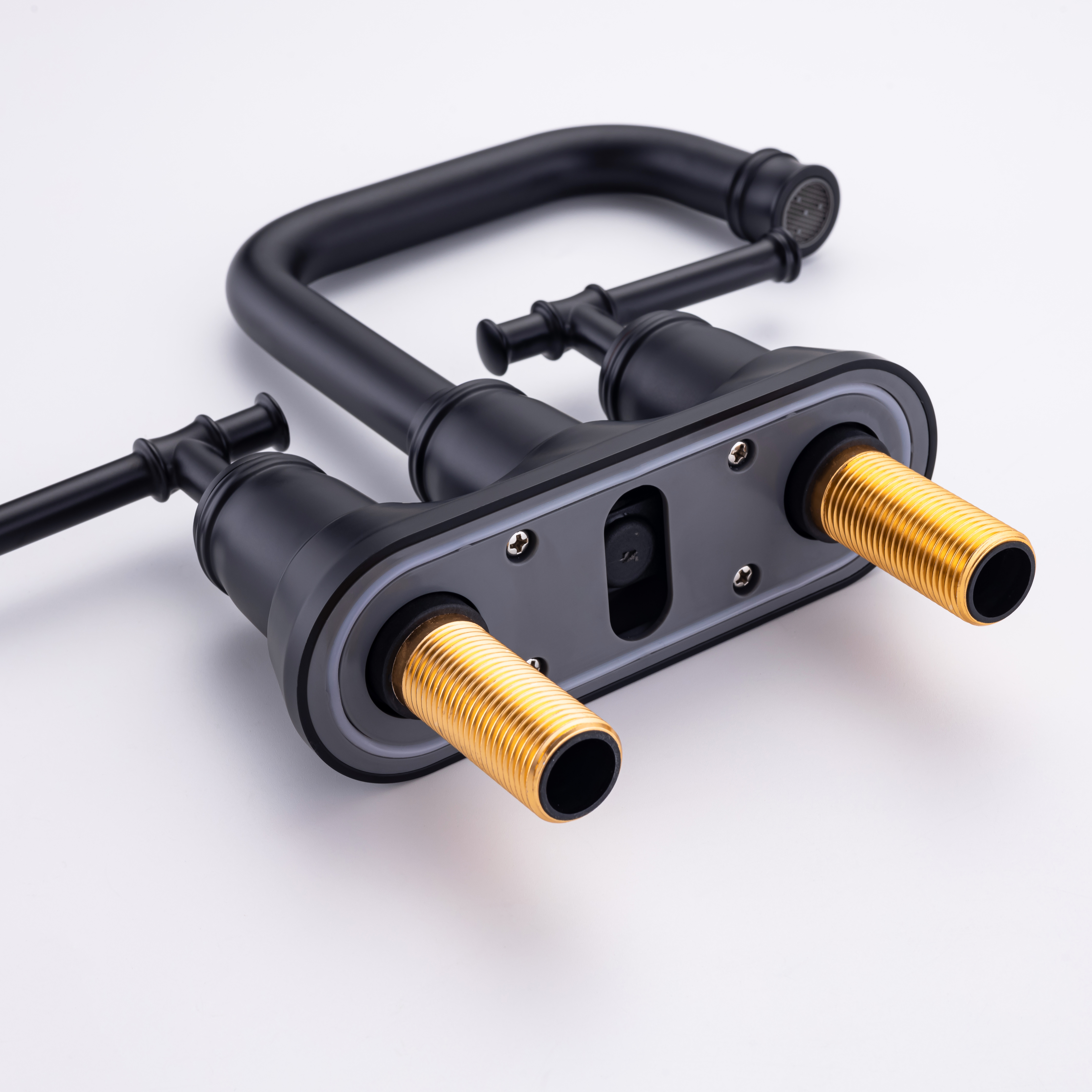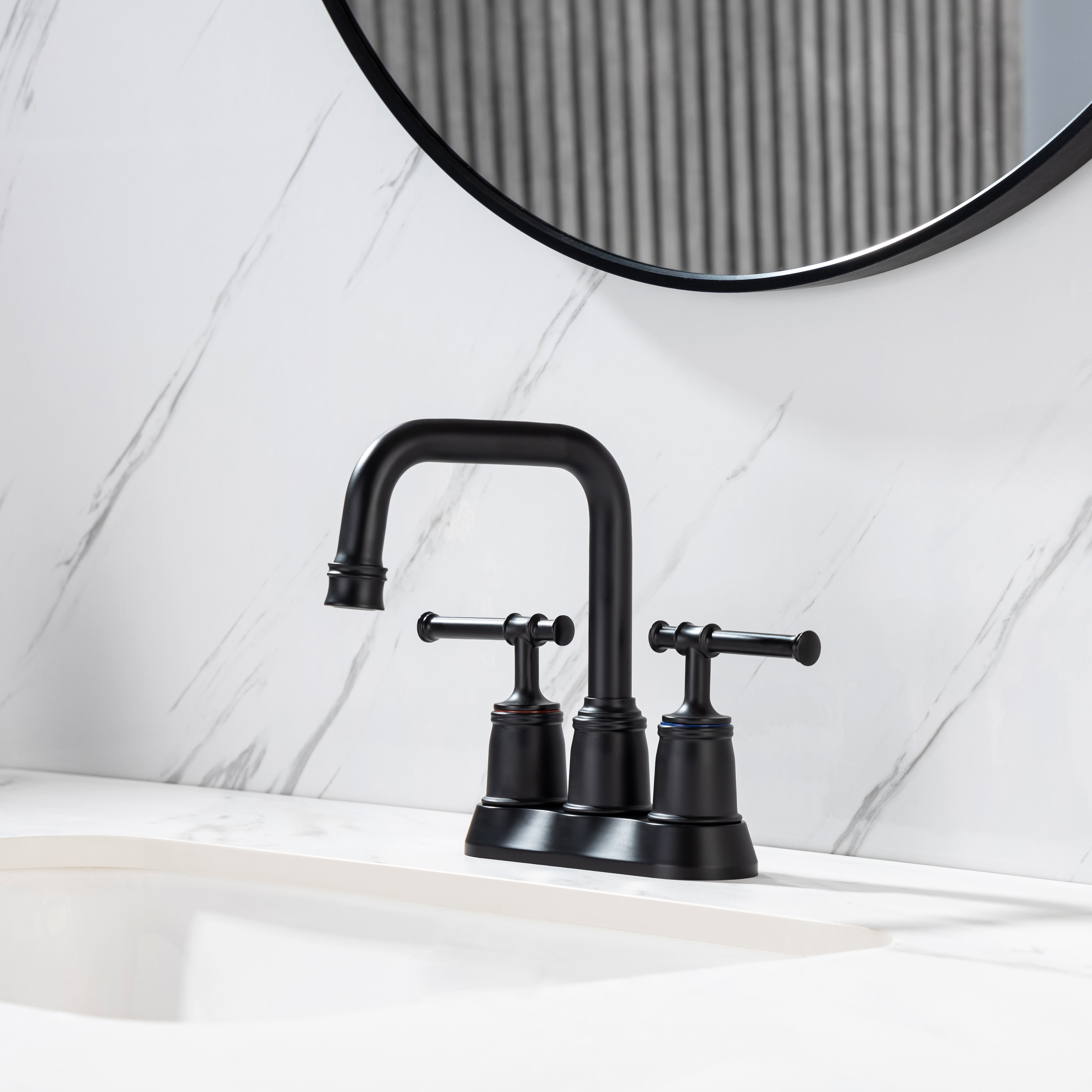 Two Handles Tall Bathroom Faucet: 4" bathroom faucet with double handle design, which makes it easy to adjust the water and the temperature! A high arc spout gives you ample clearance beneath the spout.
