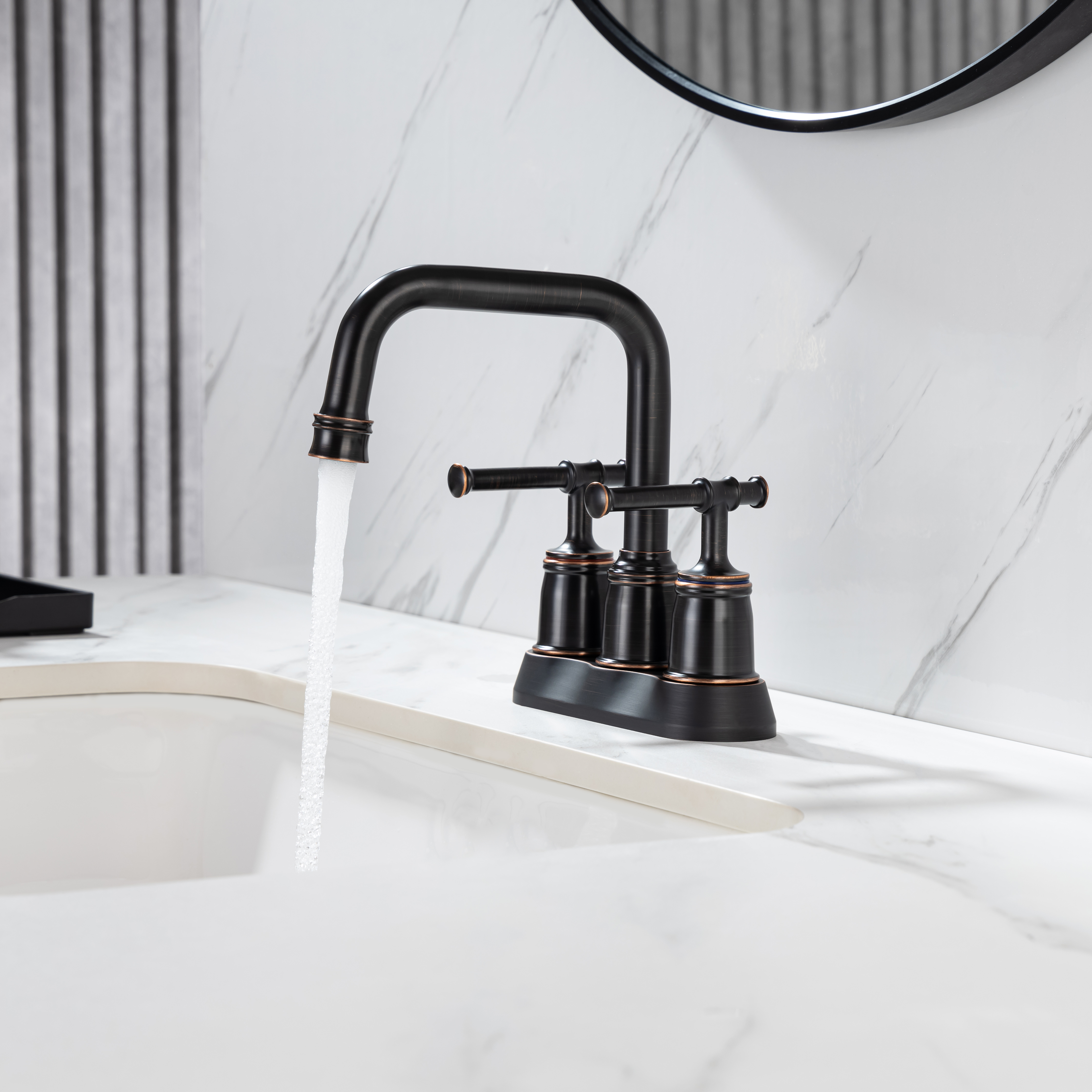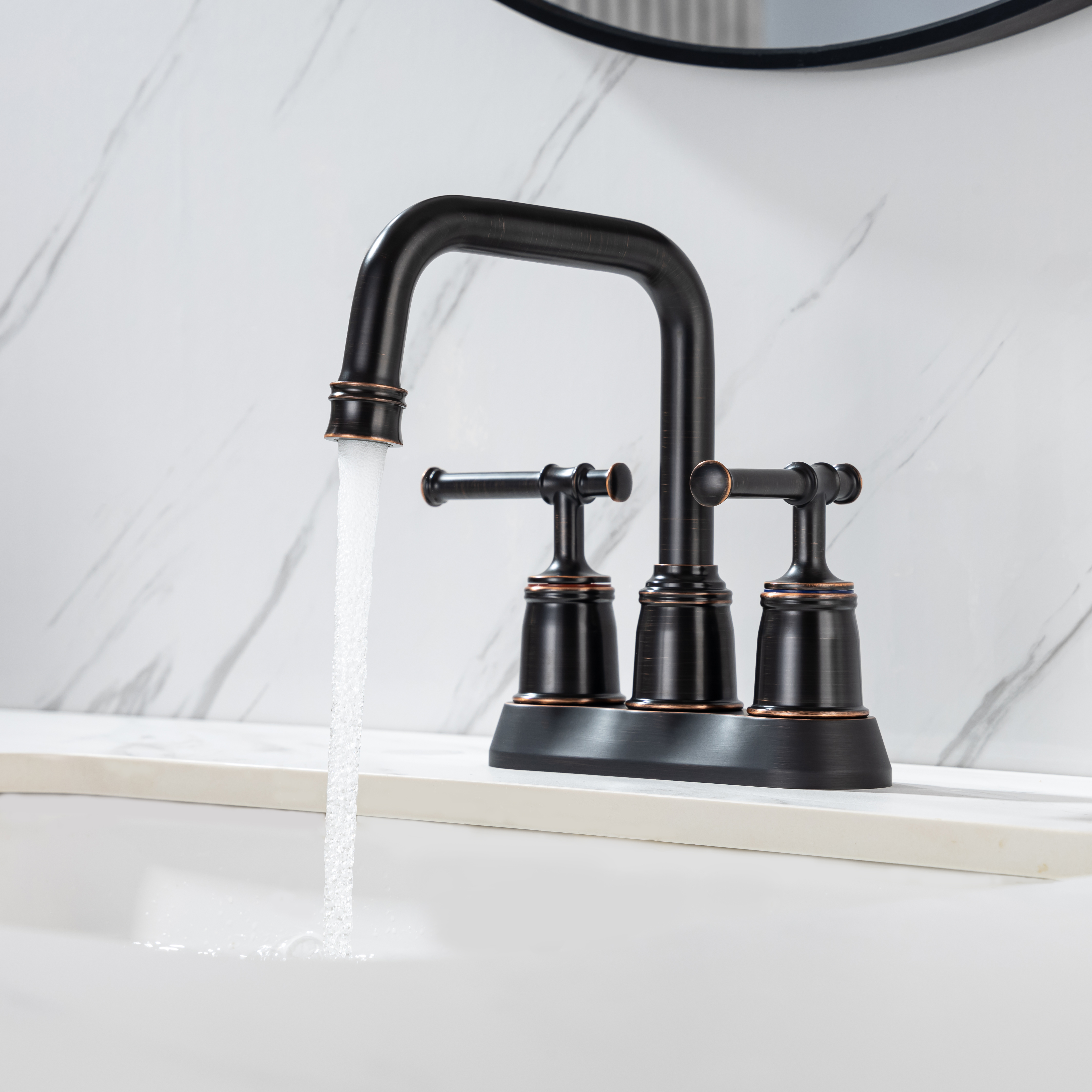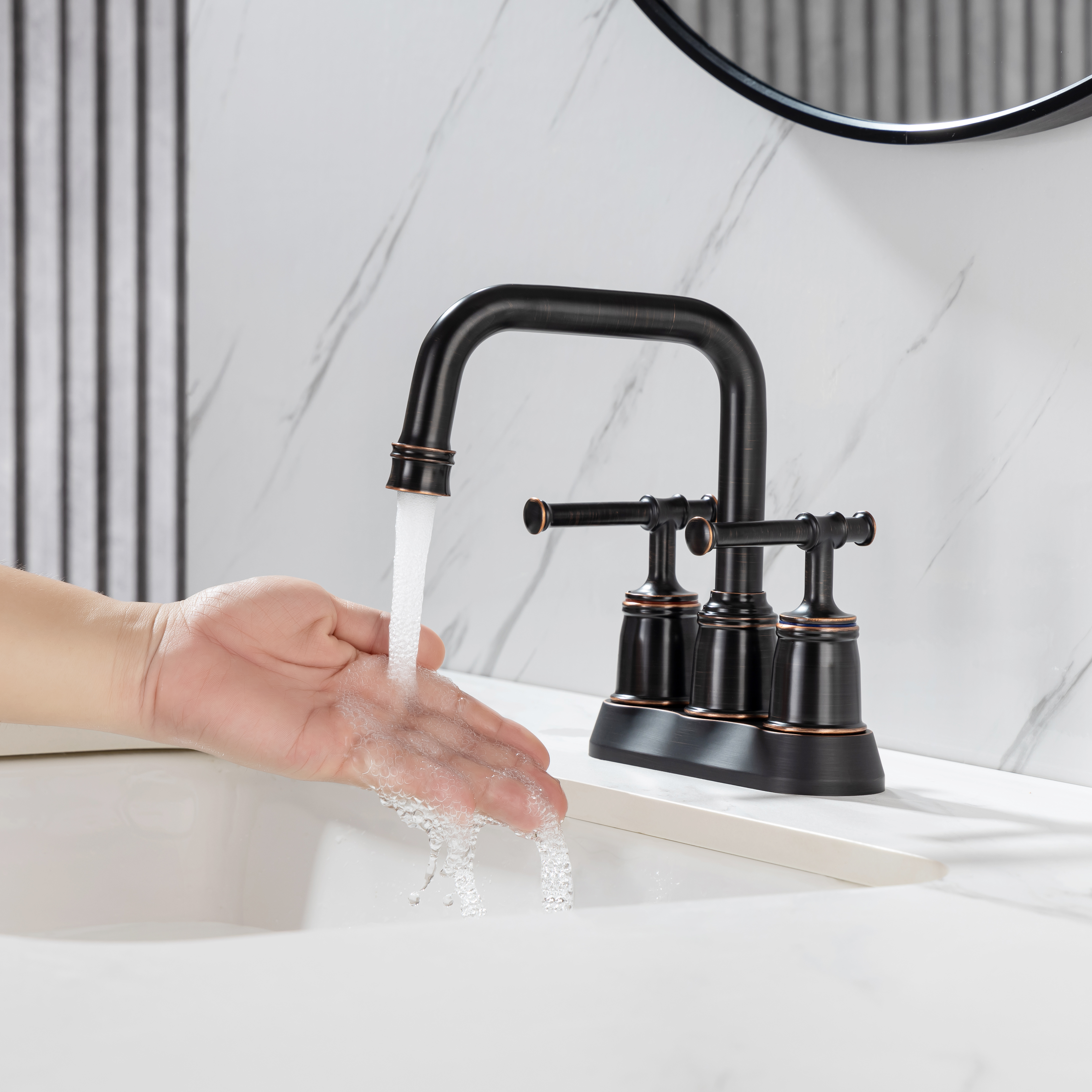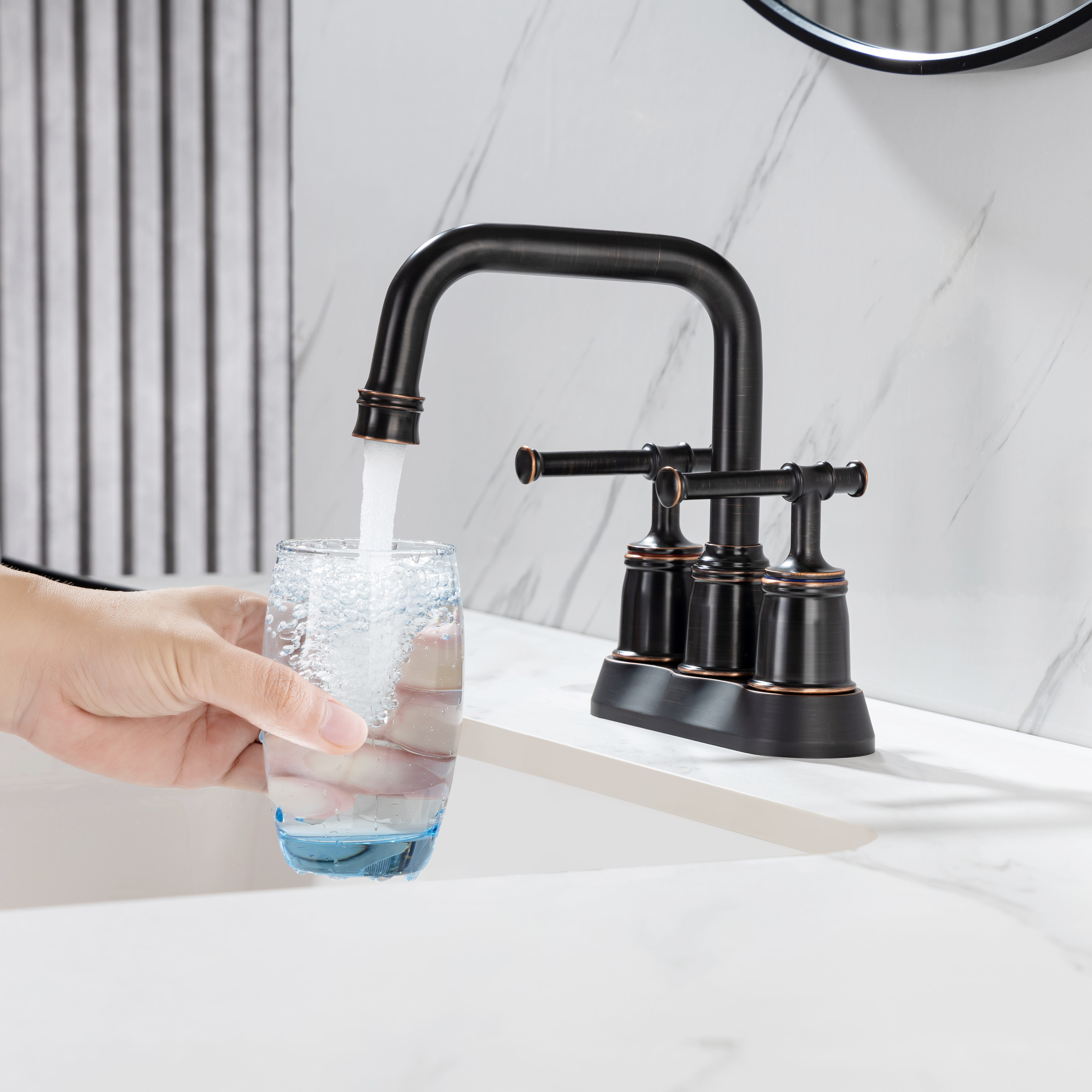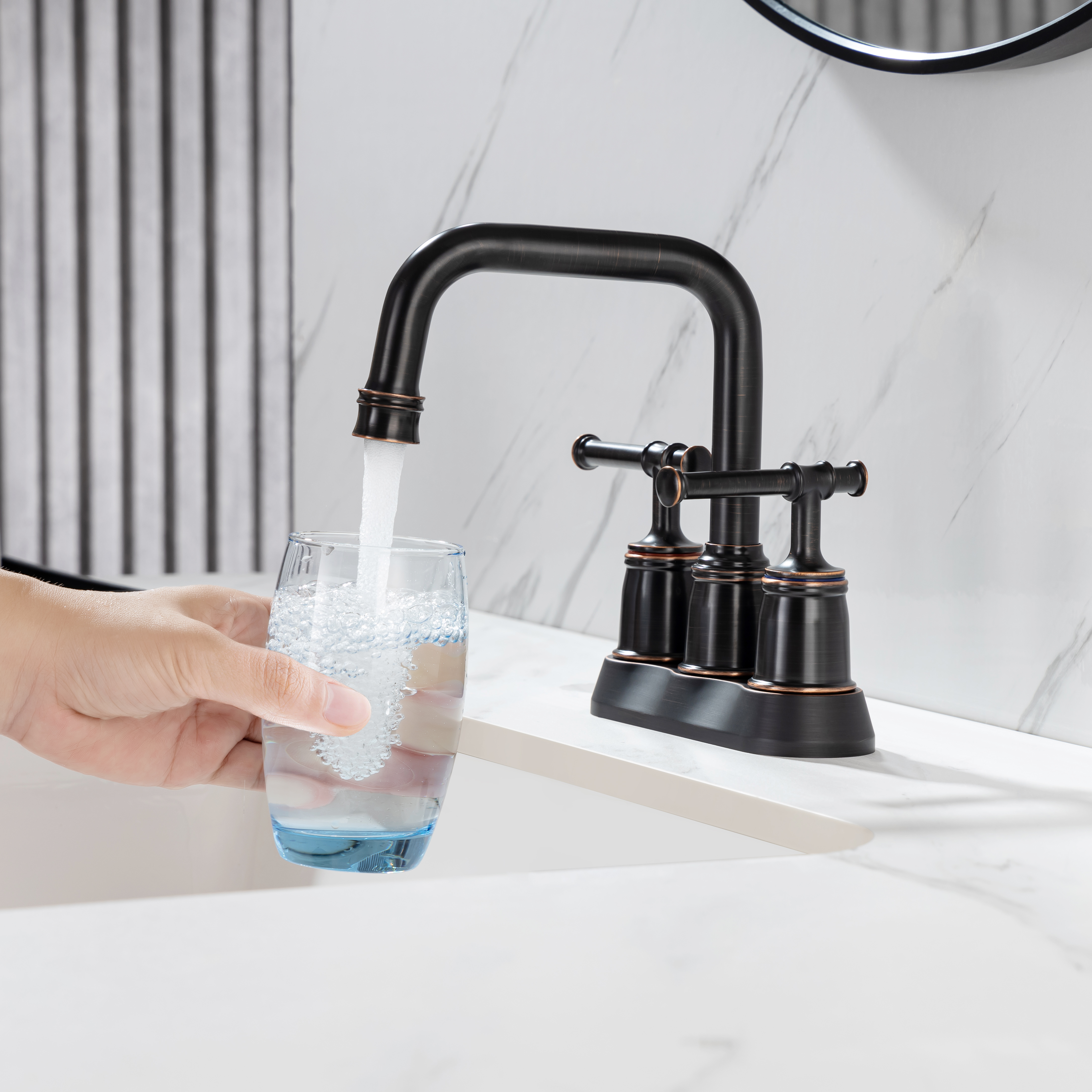 Two Handles Tall Bathroom Faucet: 4" bathroom faucet with double handle design, which makes it easy to adjust the water and the temperature! High arc spout gives you ample clearance beneath the spout.