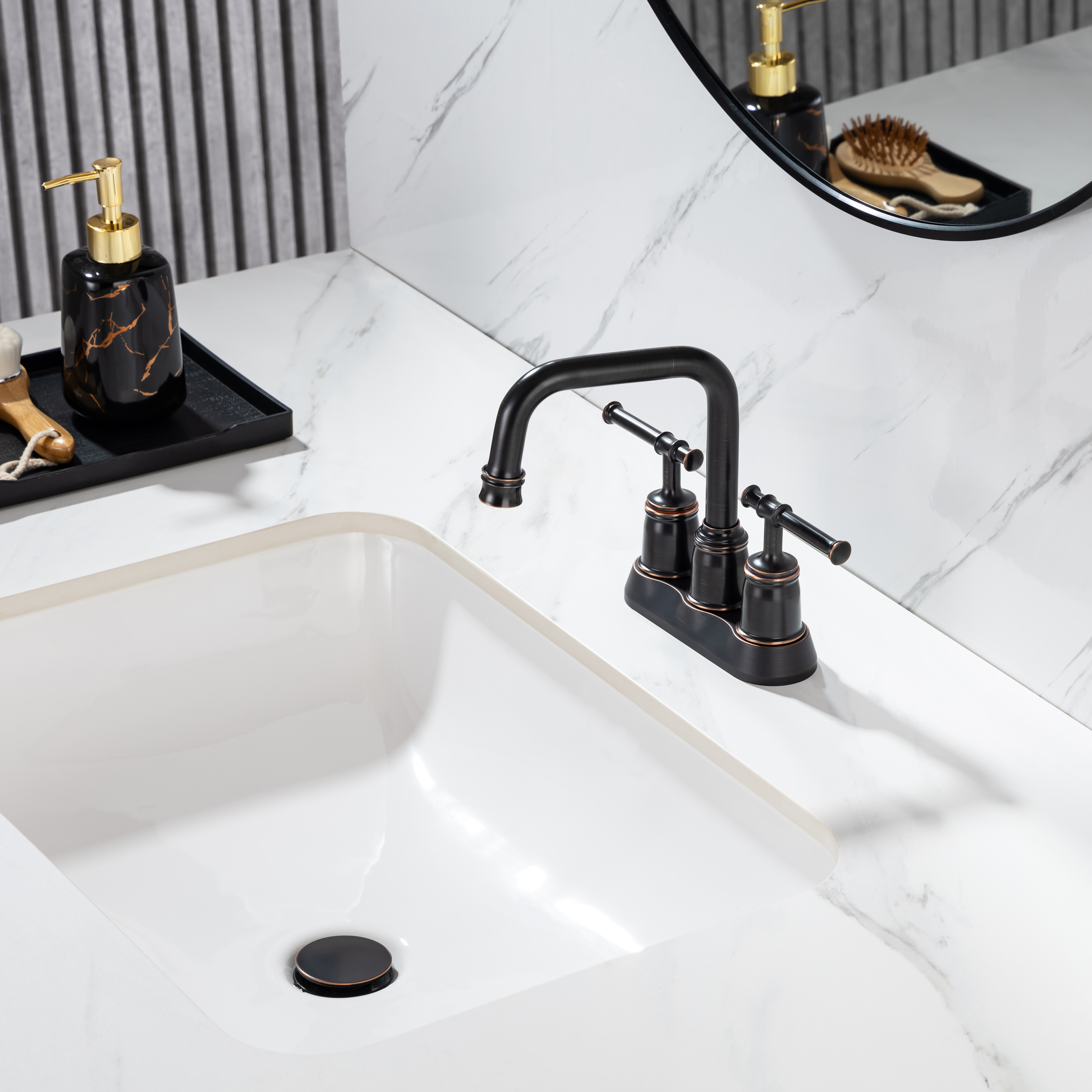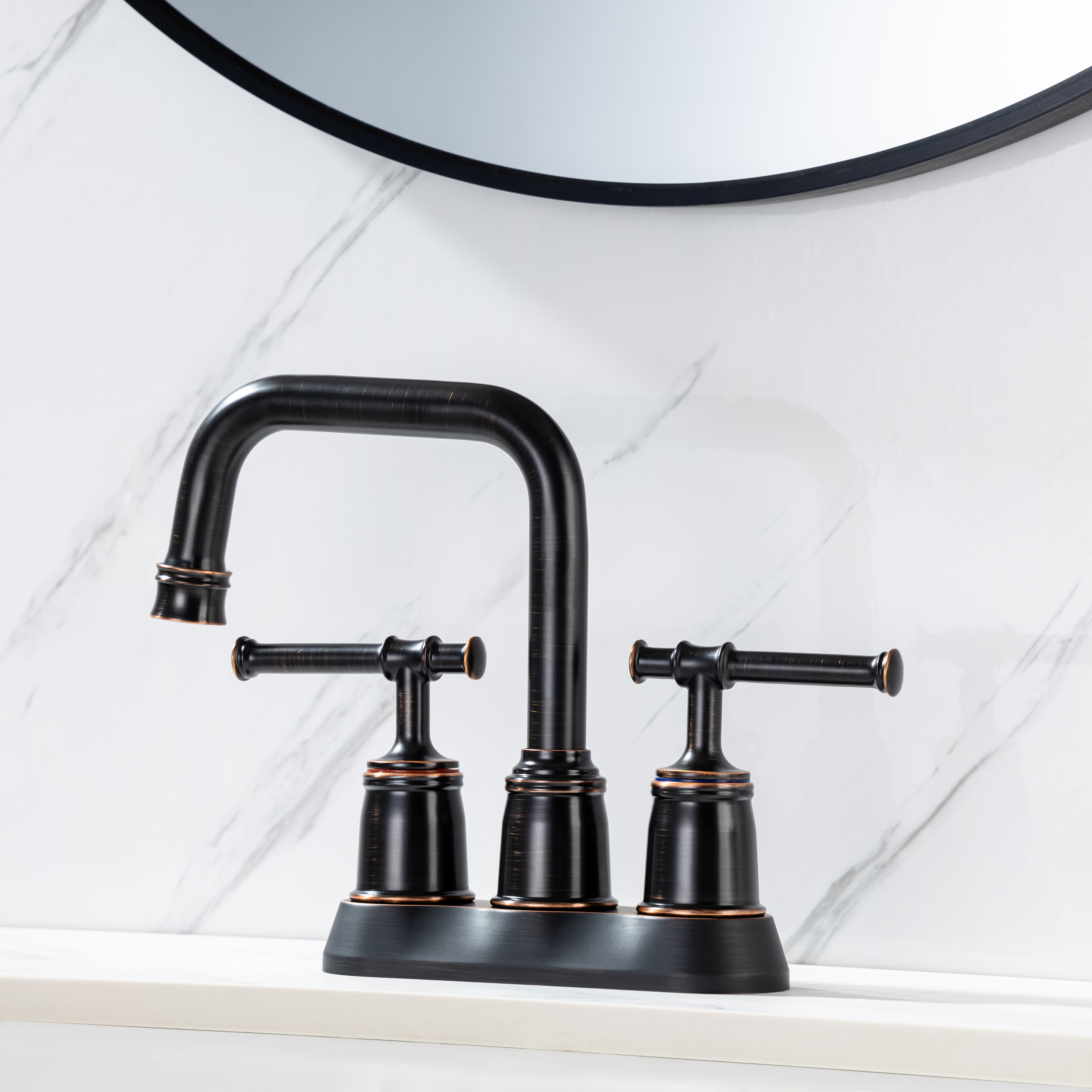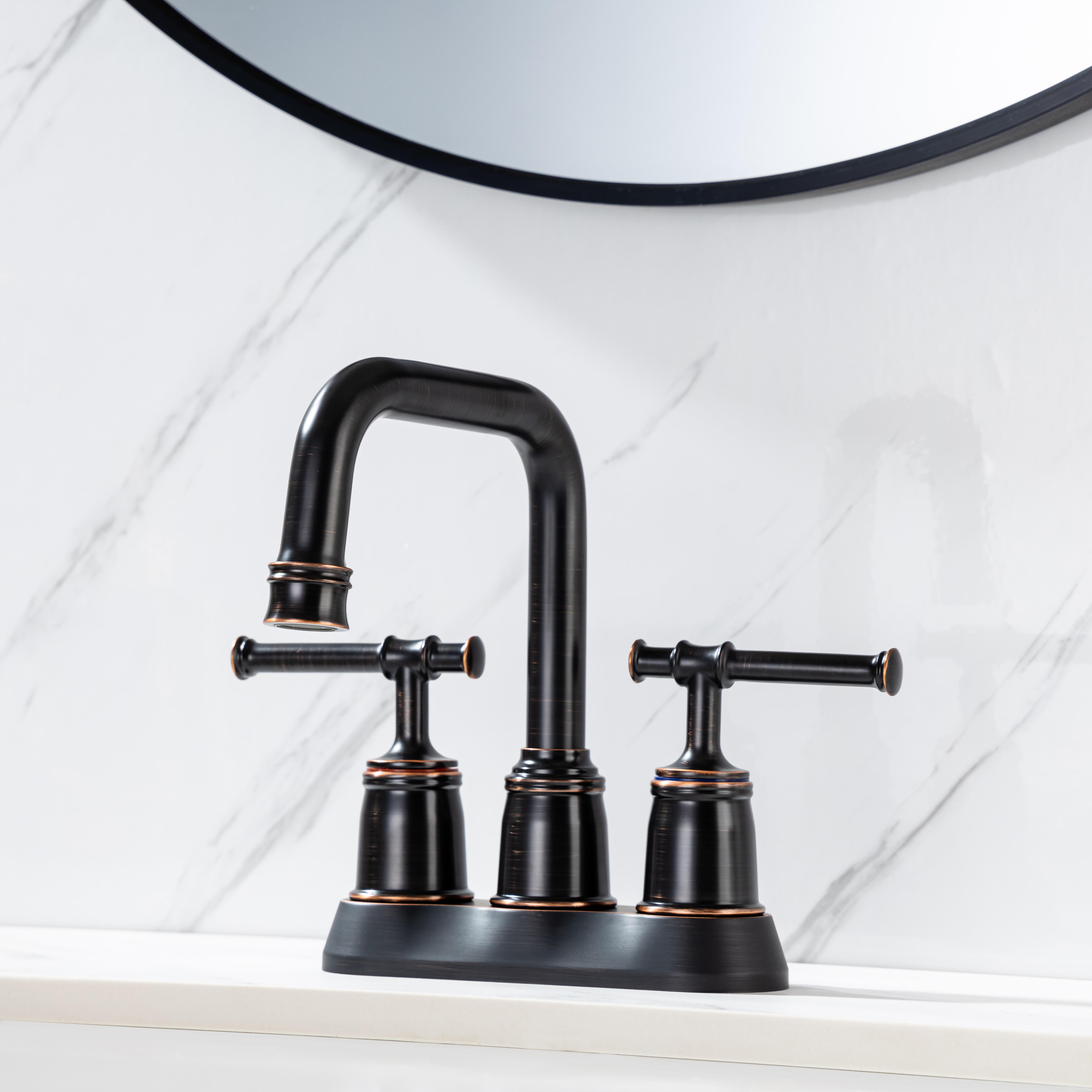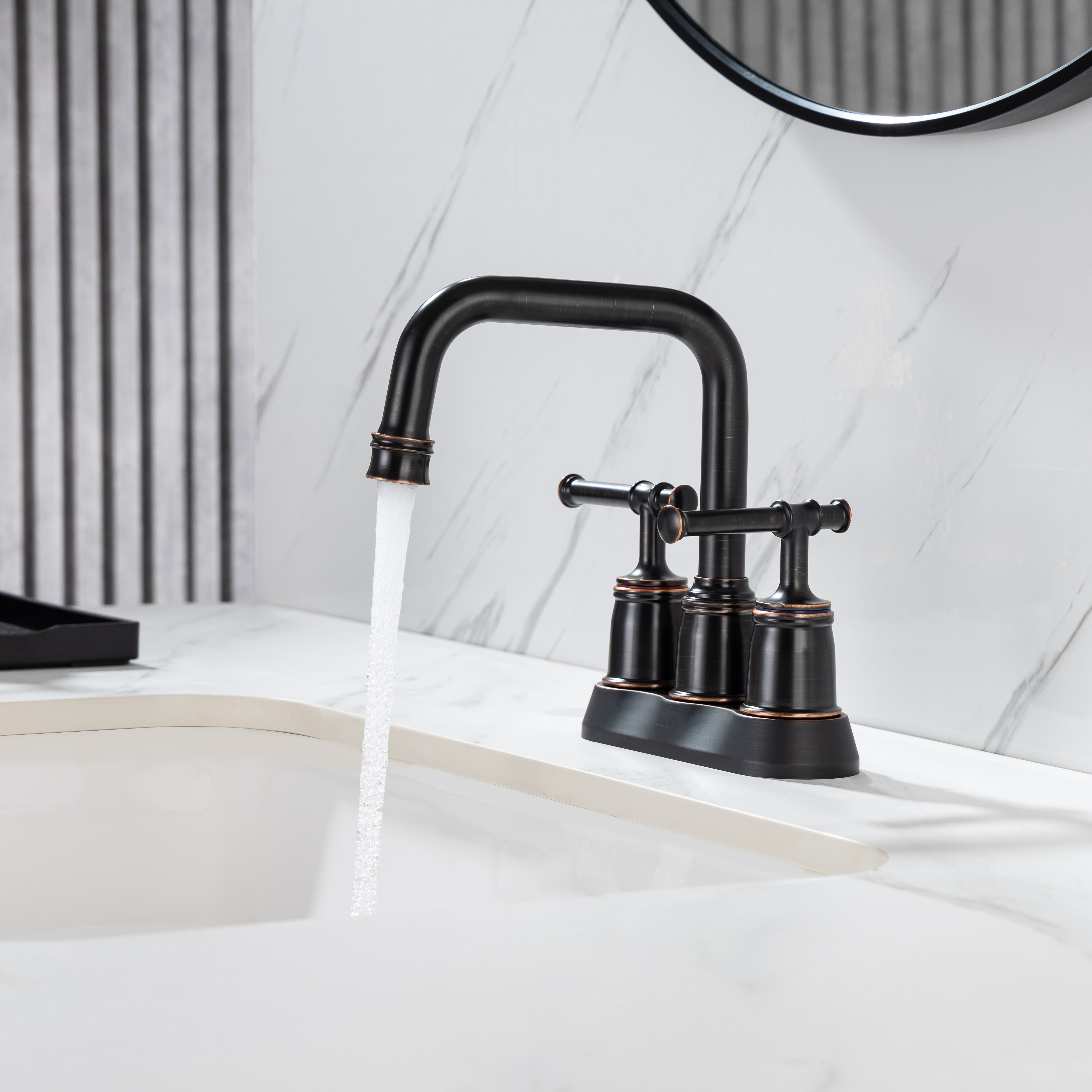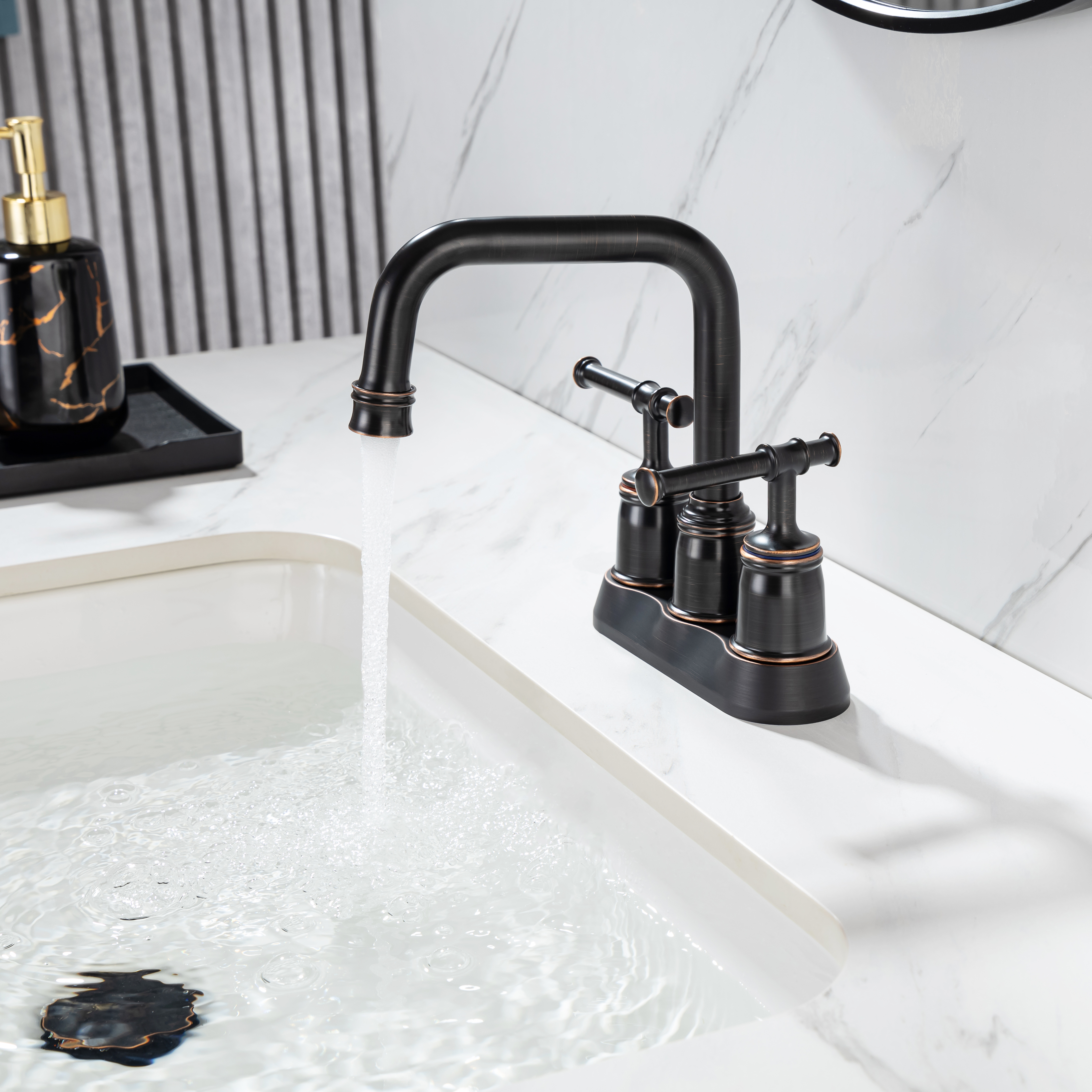 Two Handles Tall Bathroom Faucet: 4" bathroom faucet with double handle design, which makes it easy to adjust the water and the temperature! High arc spout gives you ample clearance beneath the spout.