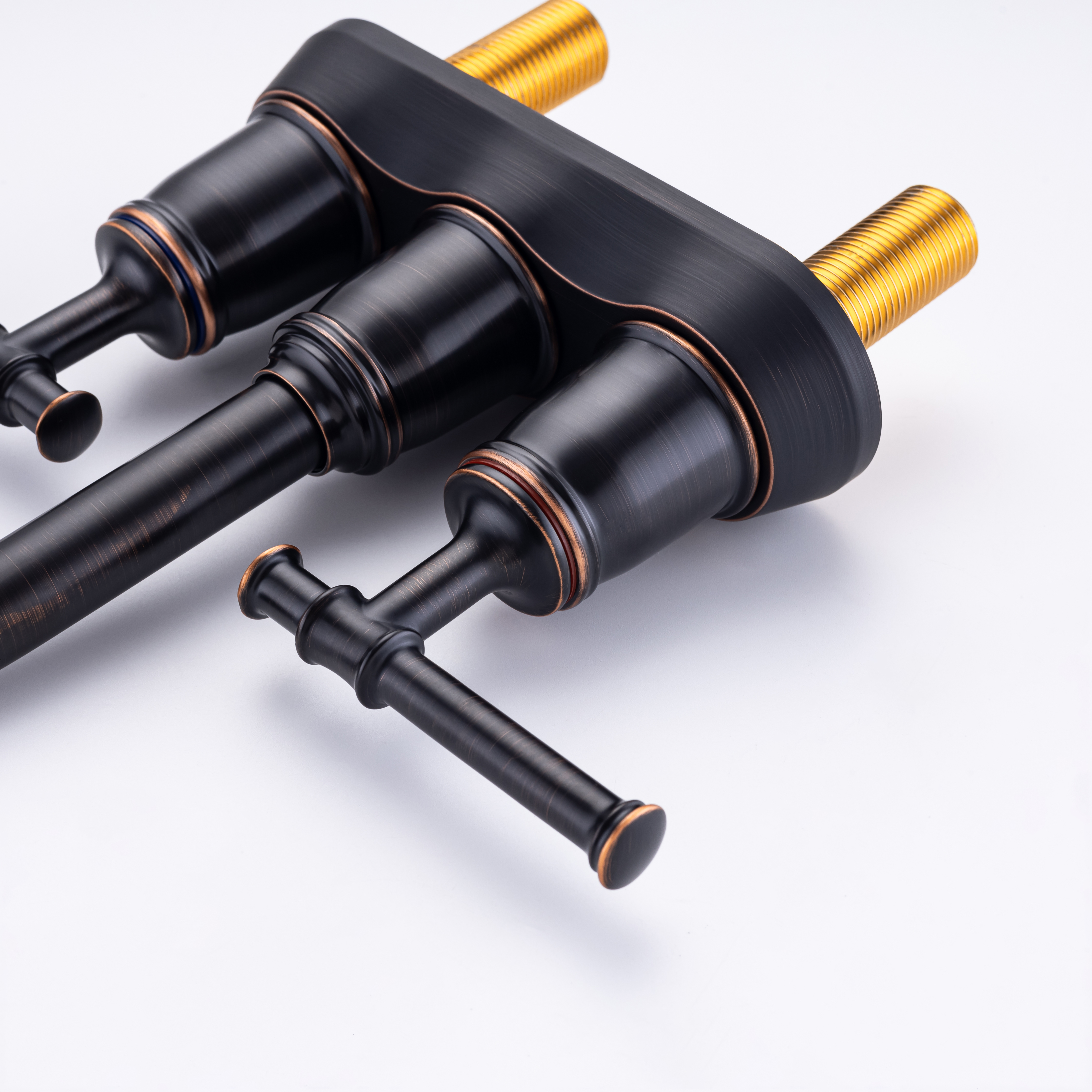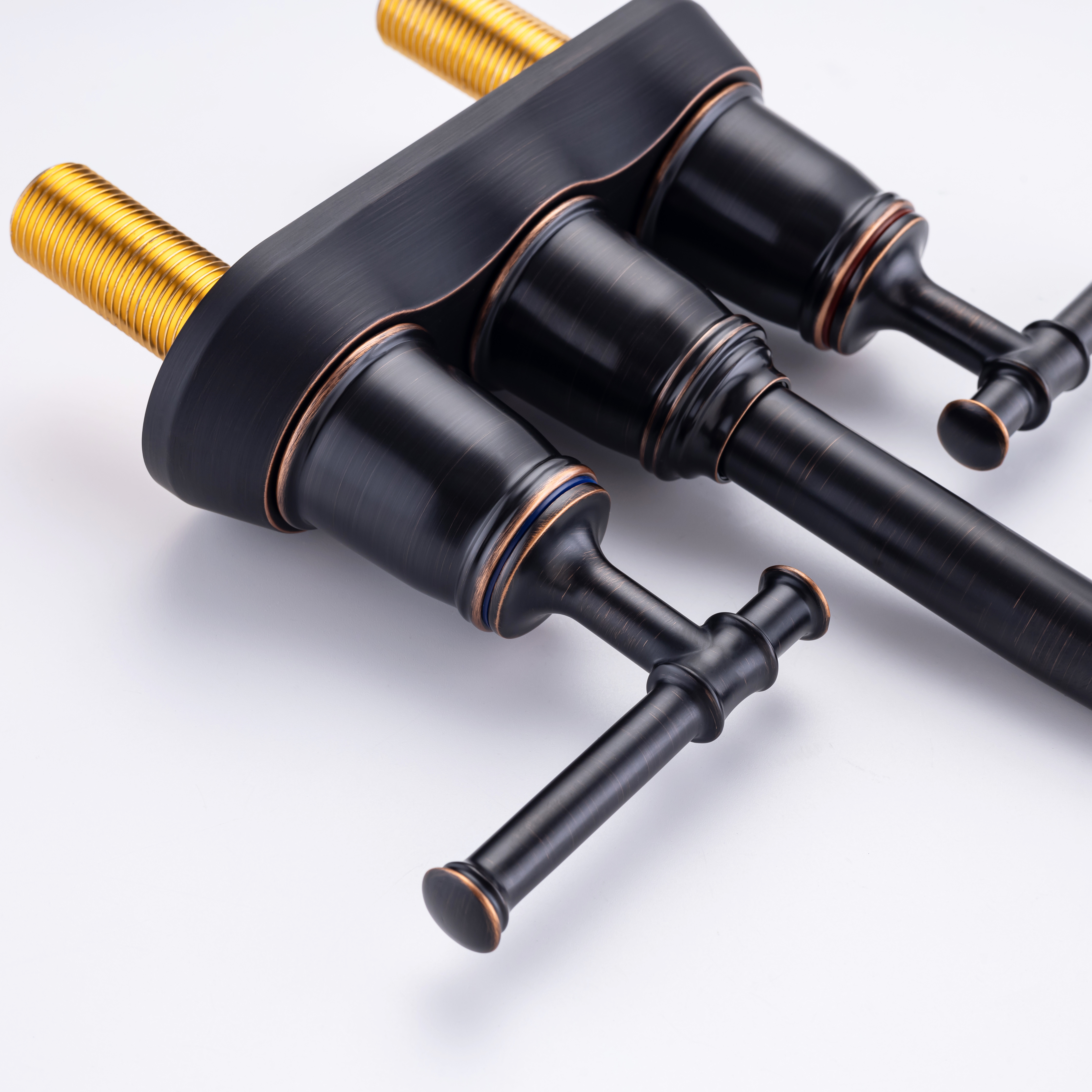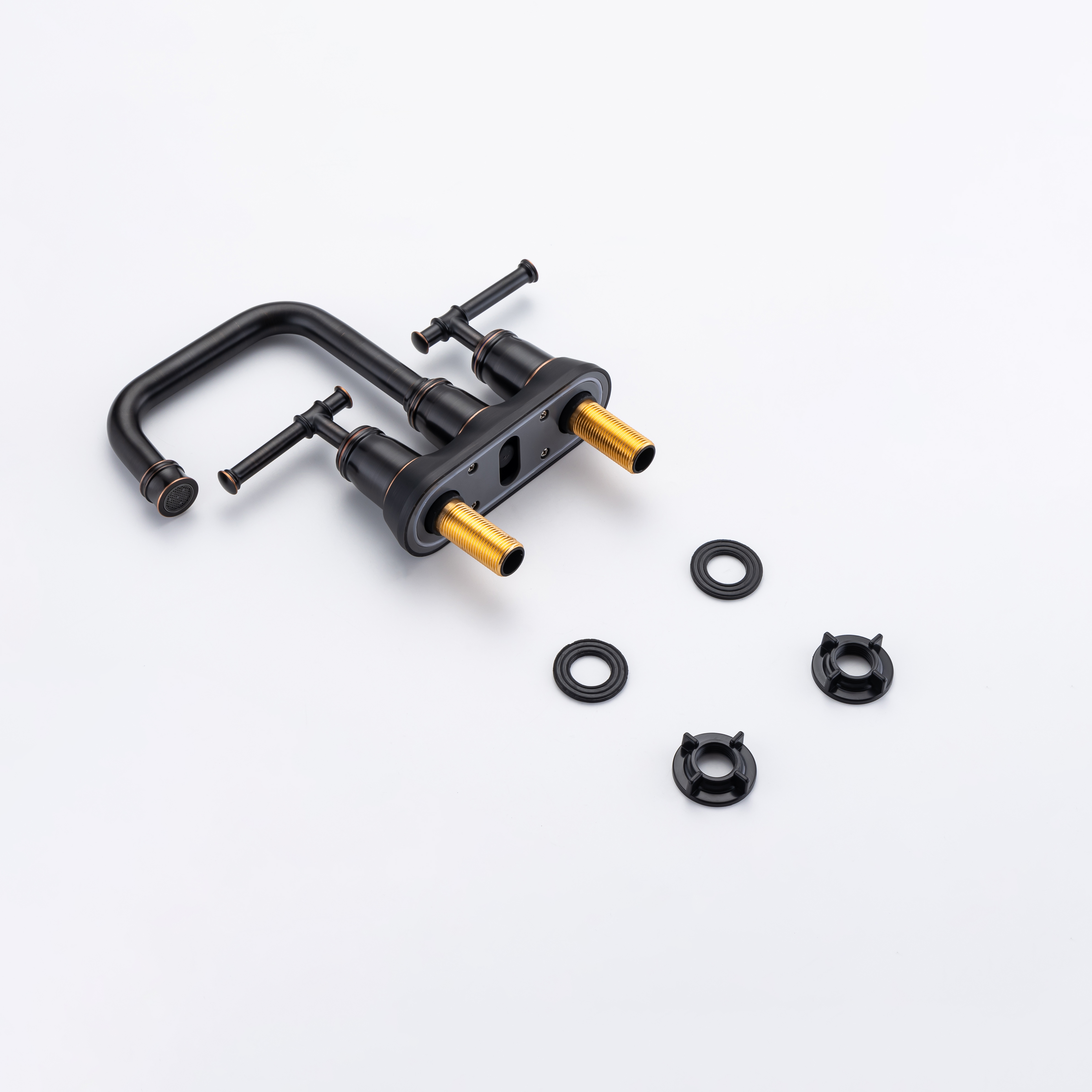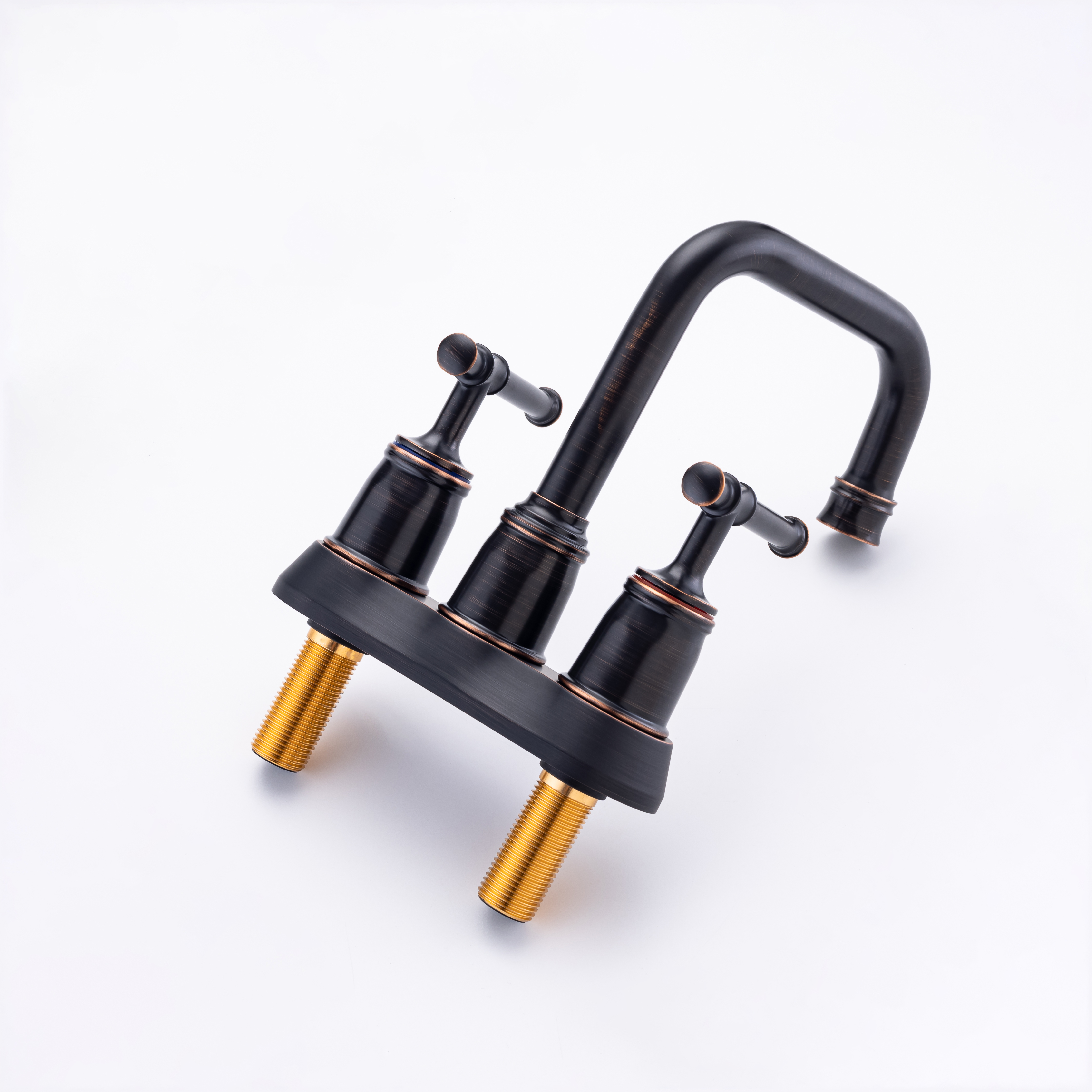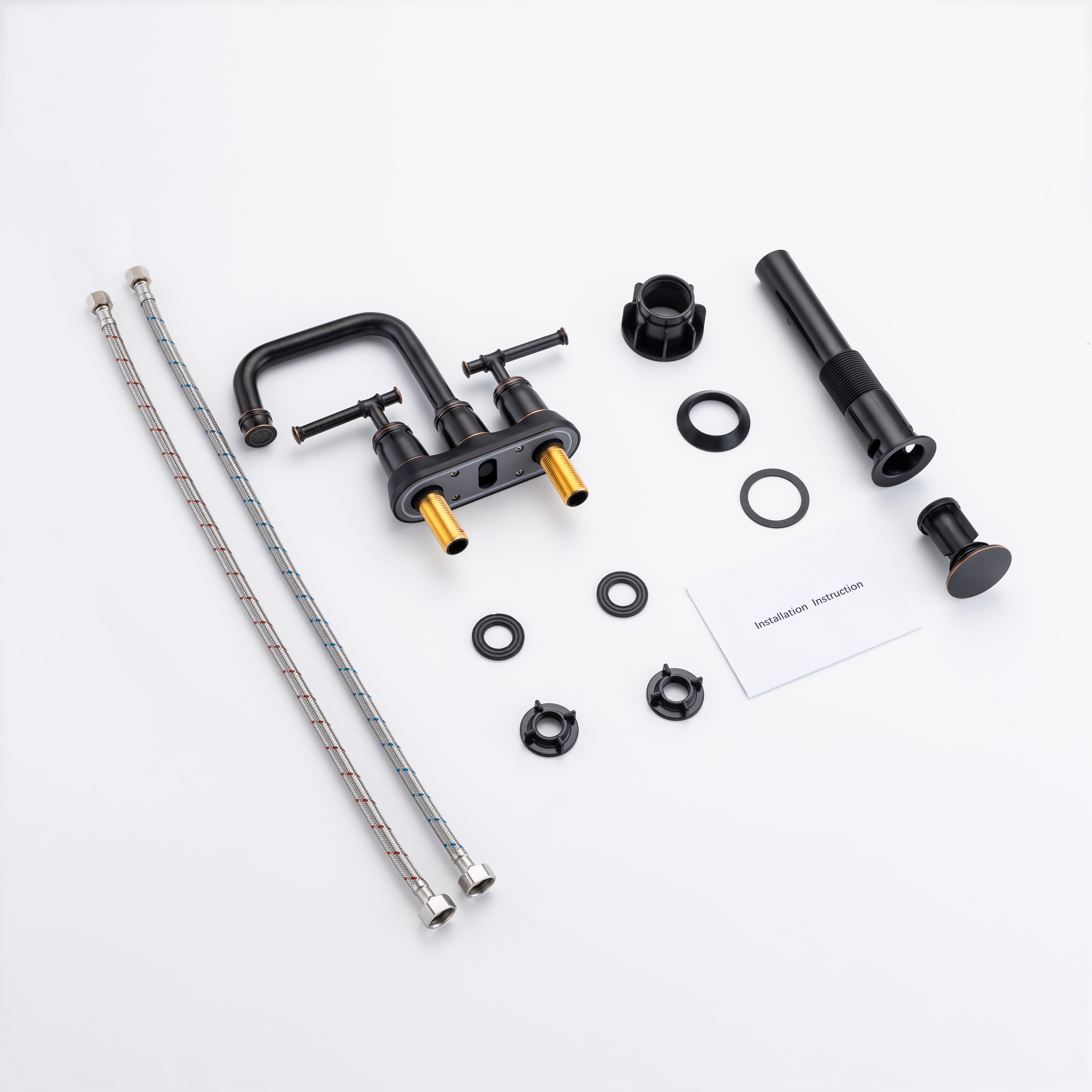 Two Handles Tall Bathroom Faucet: 4" bathroom faucet with double handle design, which makes it easy to adjust the water and the temperature! High arc spout gives you ample clearance beneath the spout.