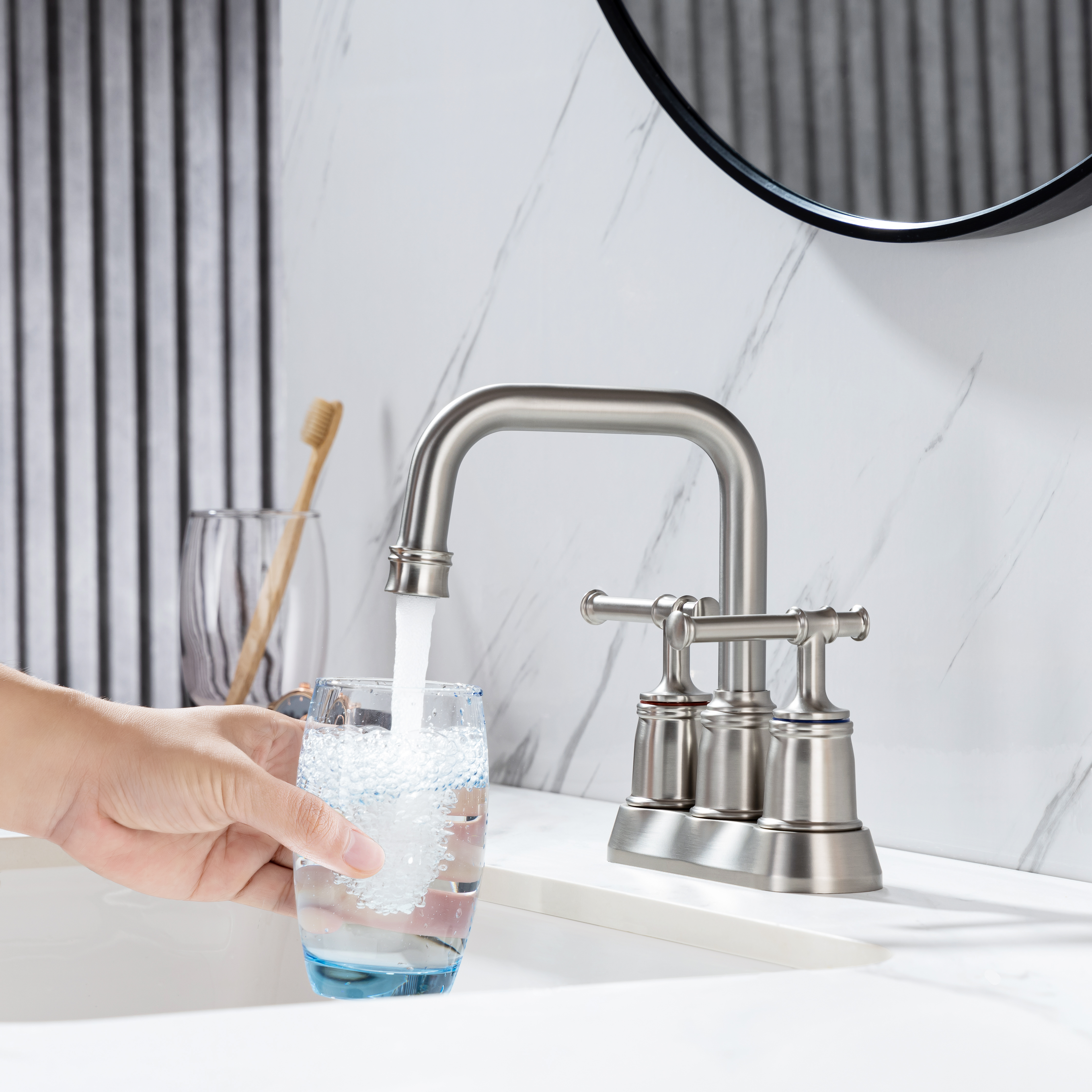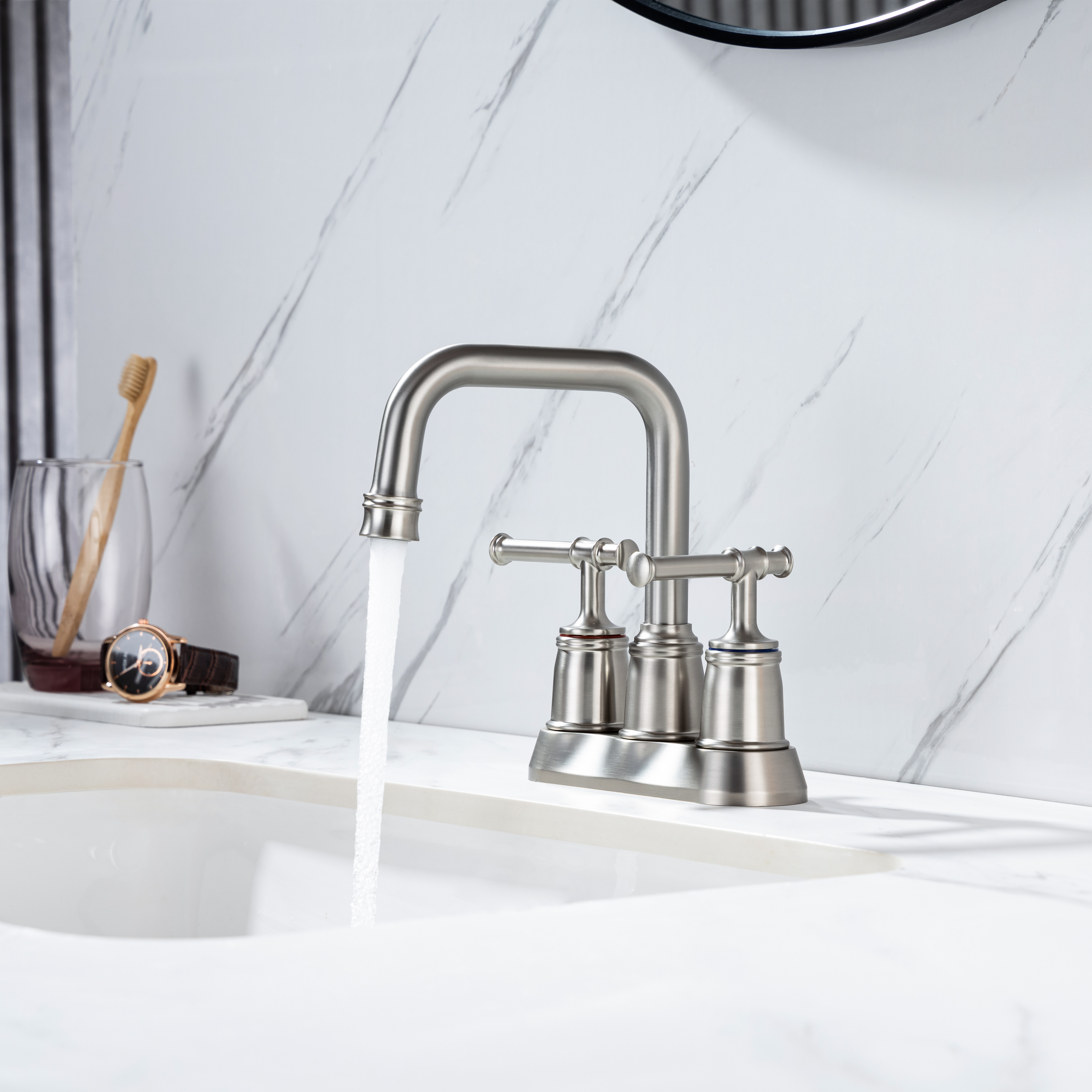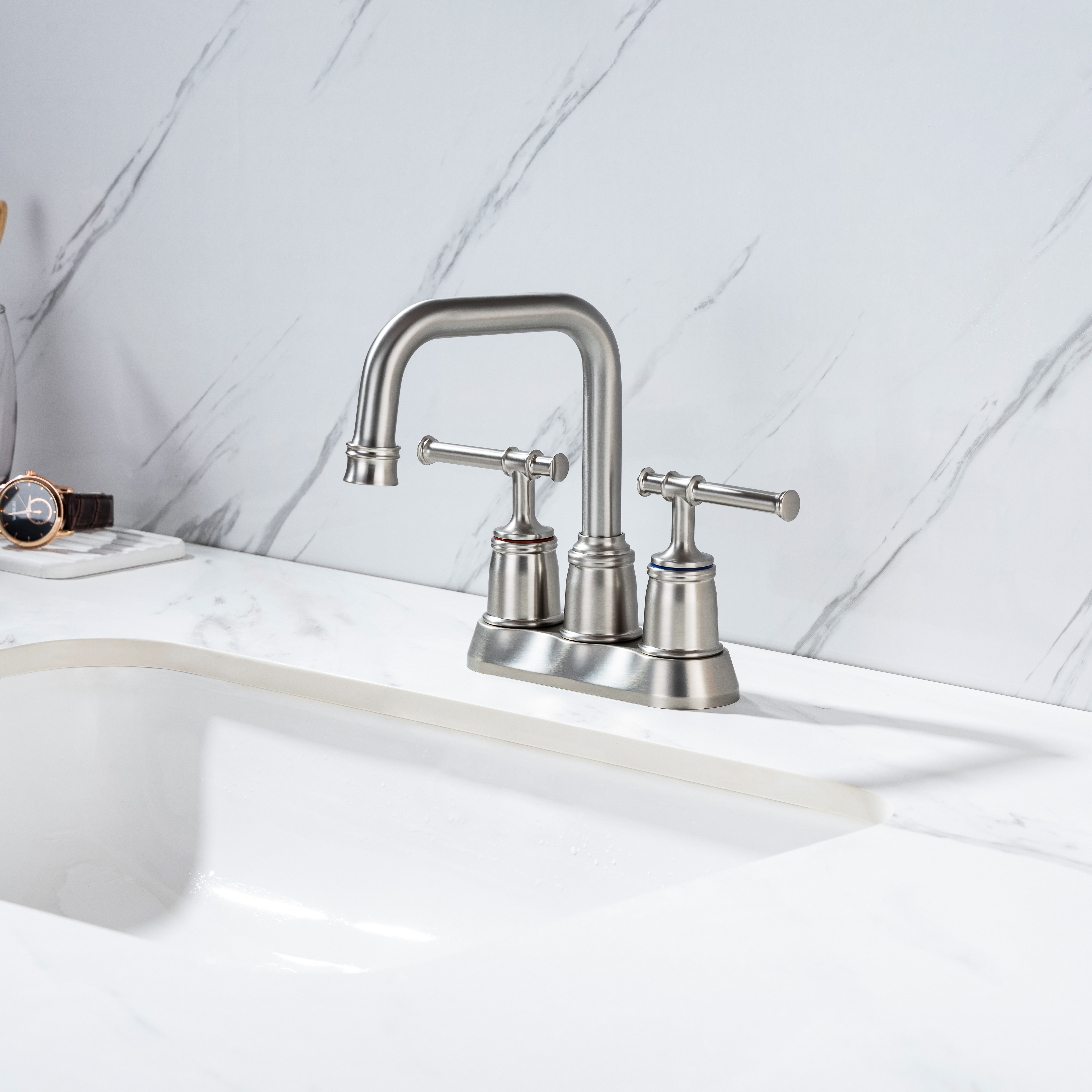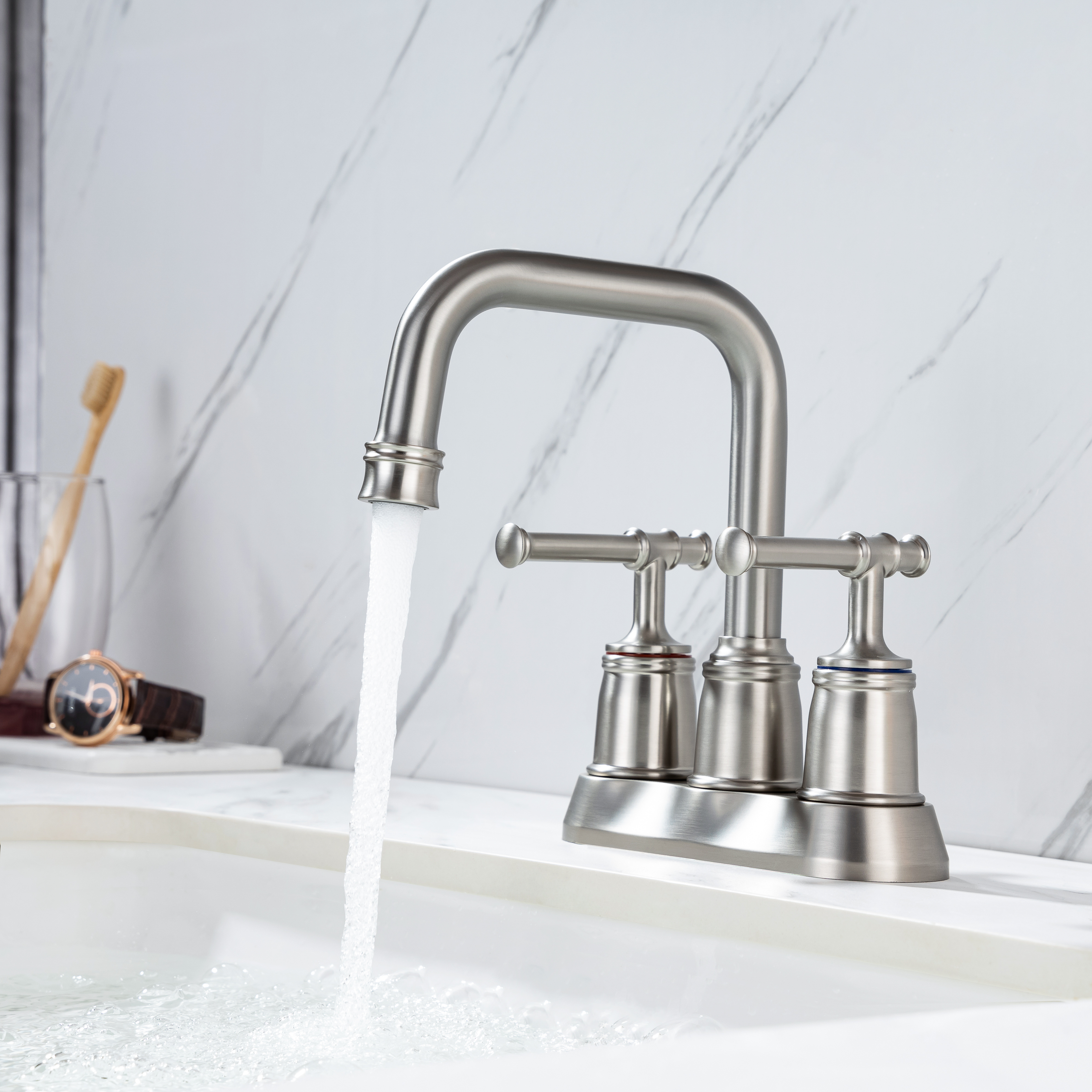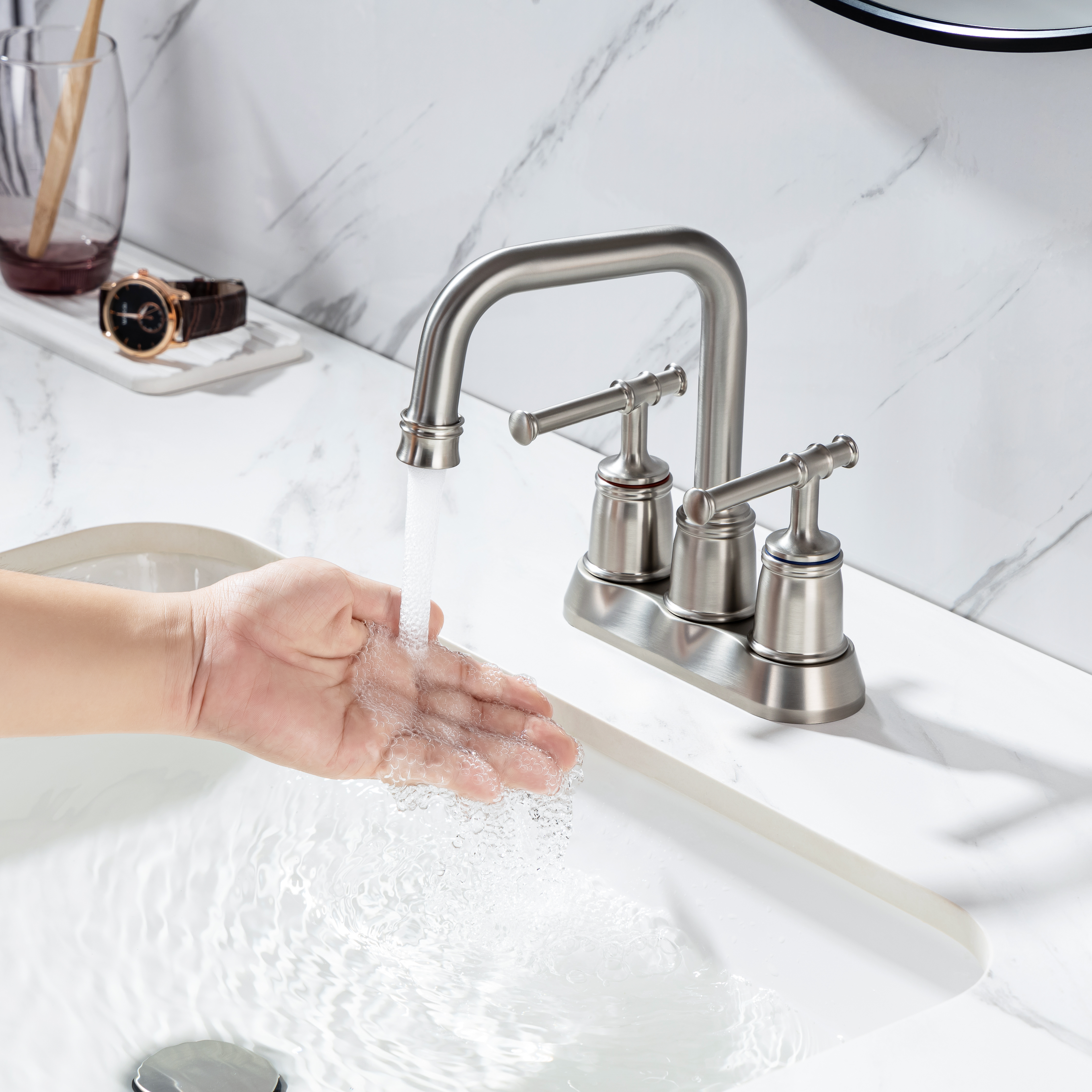 Two Handles Tall Bathroom Faucet: 4" bathroom faucet with double handle design, which makes it easy to adjust the water and the temperature! A high arc spout gives you ample clearance beneath the spout.