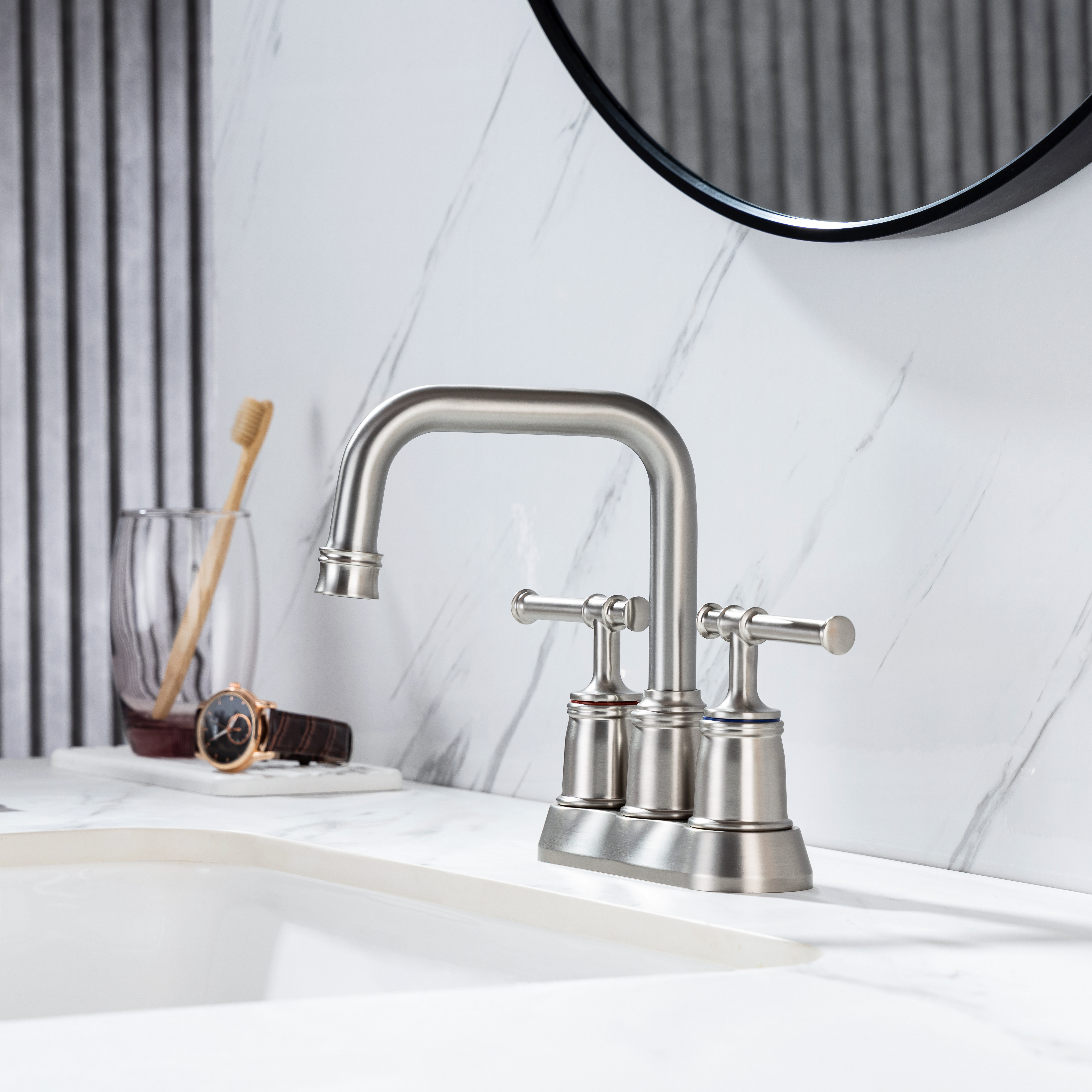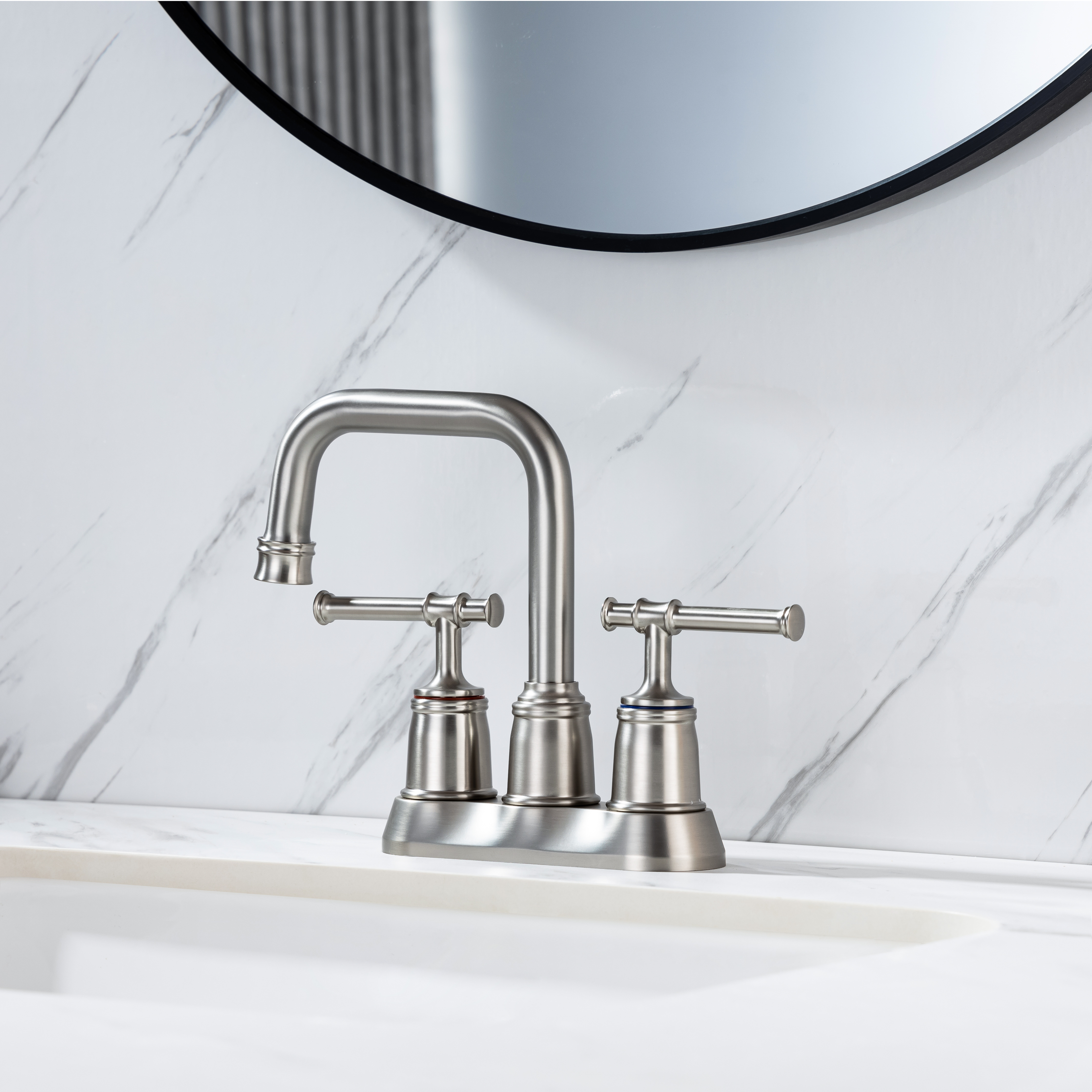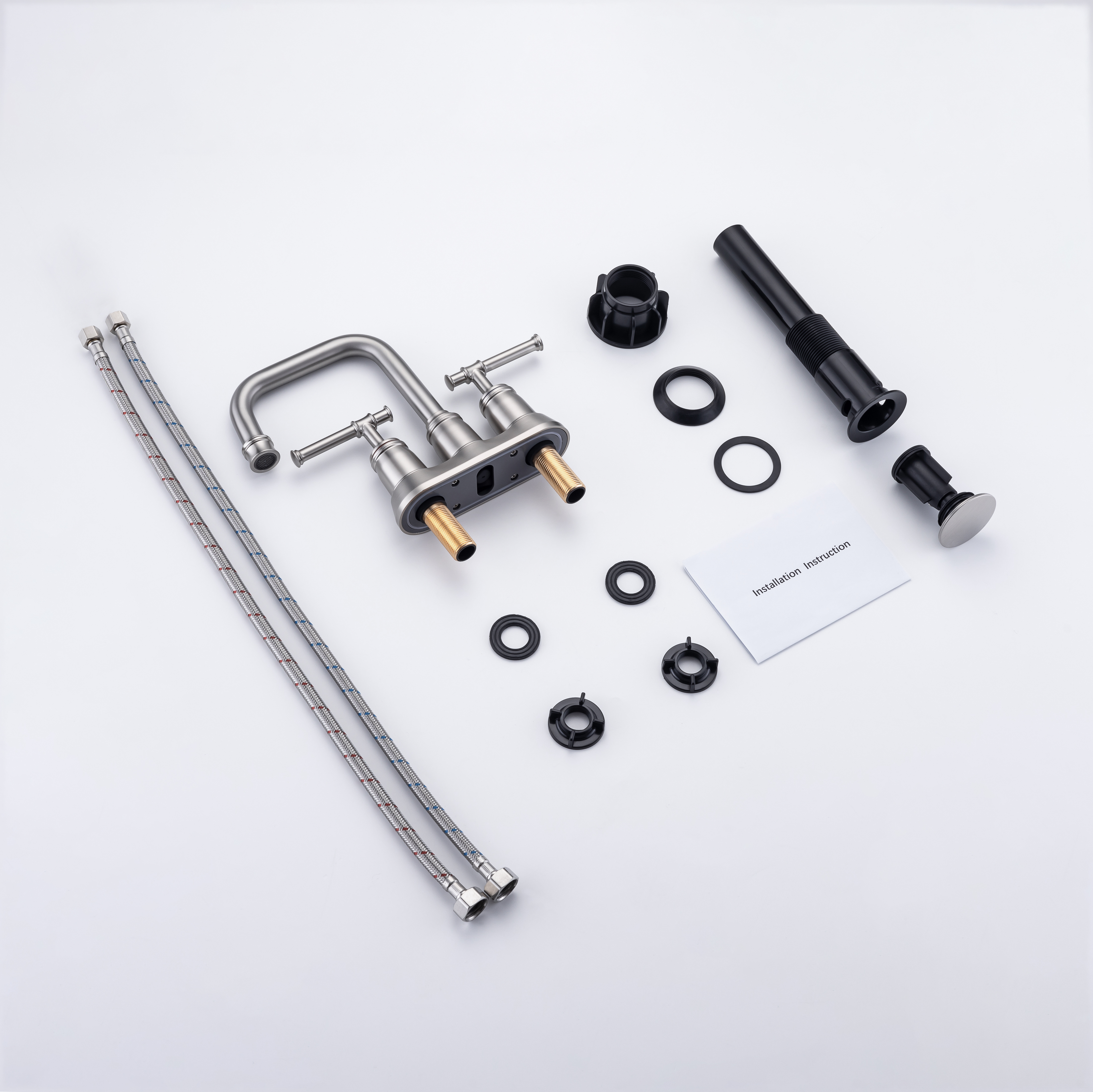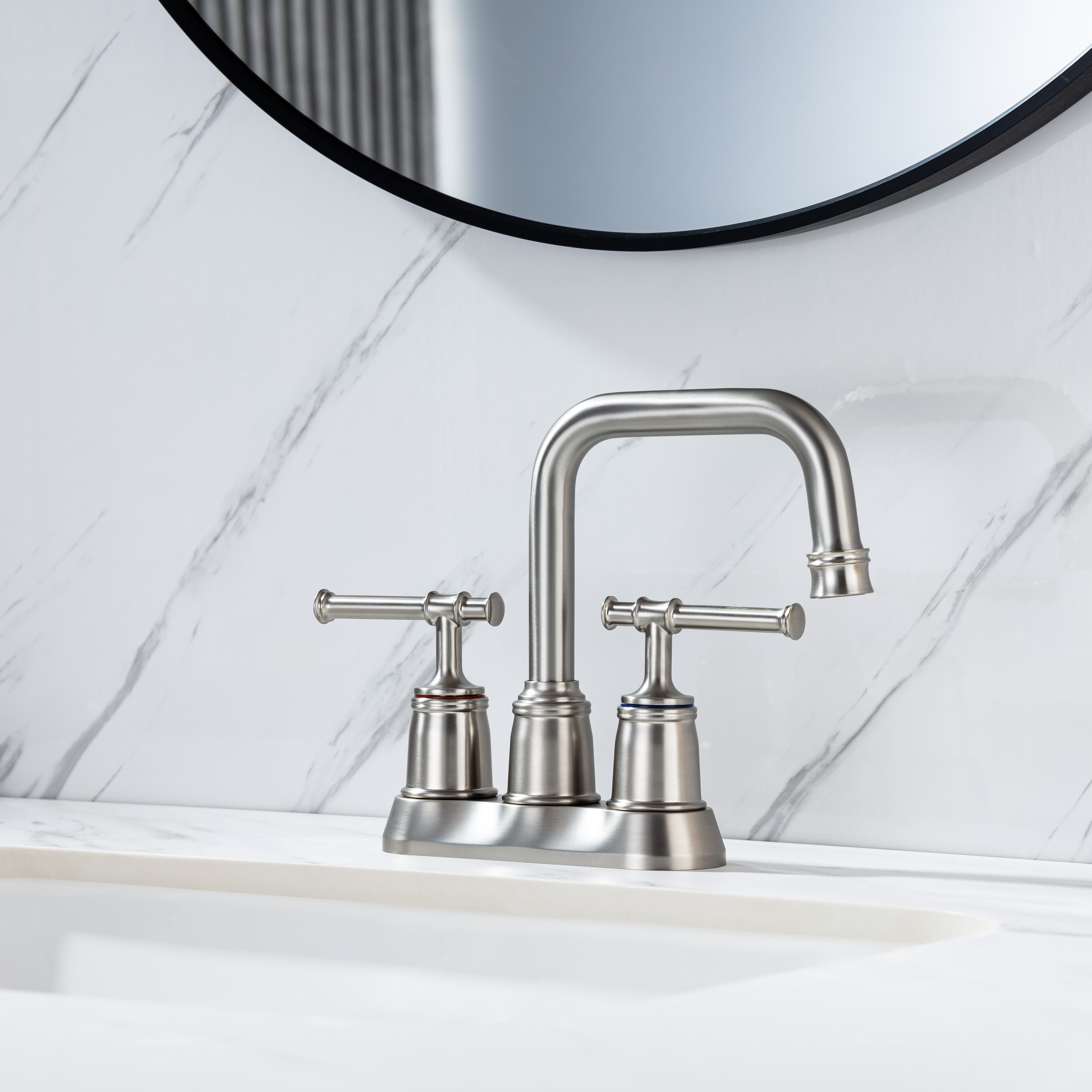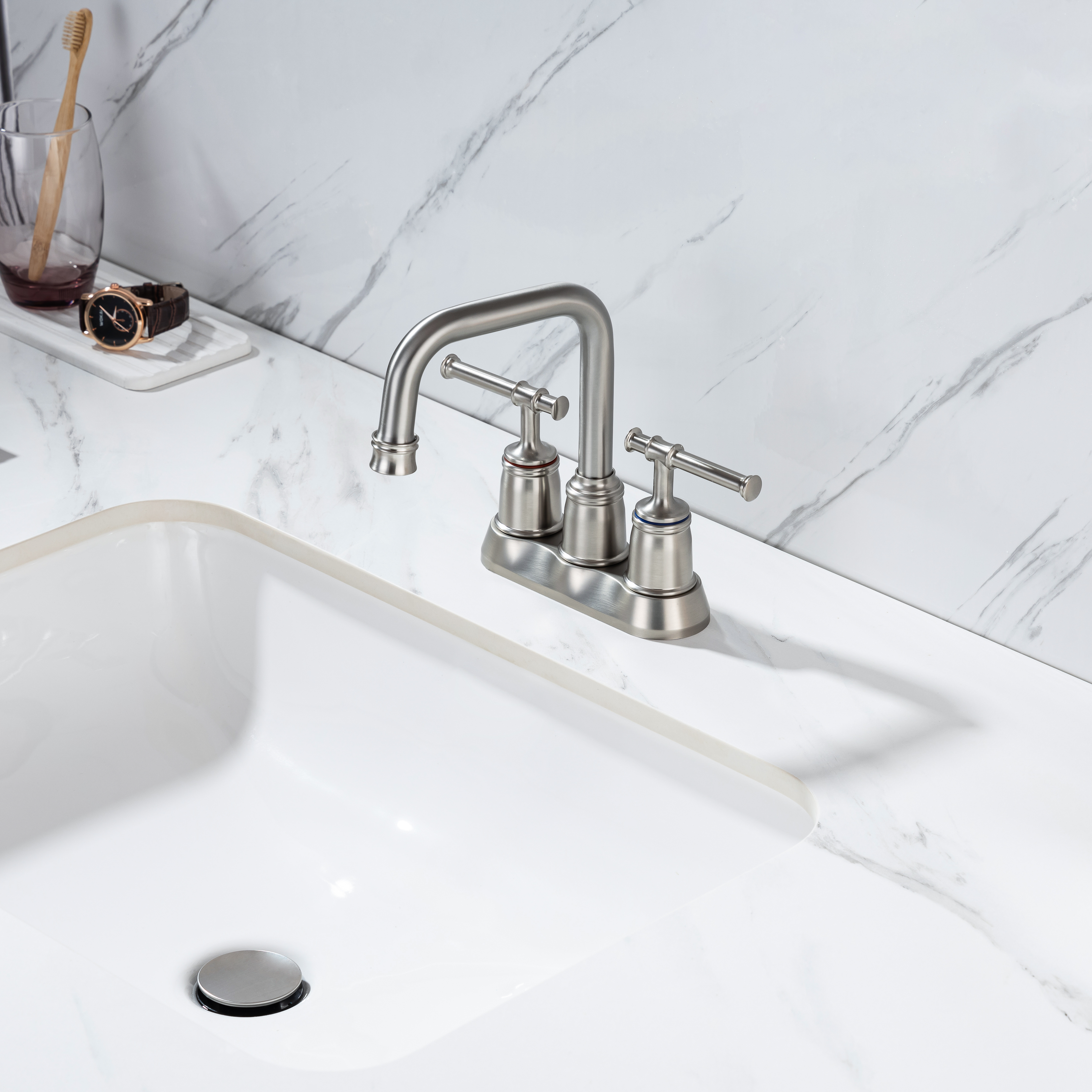 Two Handles Tall Bathroom Faucet: 4" bathroom faucet with double handle design, which makes it easy to adjust the water and the temperature! A high arc spout gives you ample clearance beneath the spout.