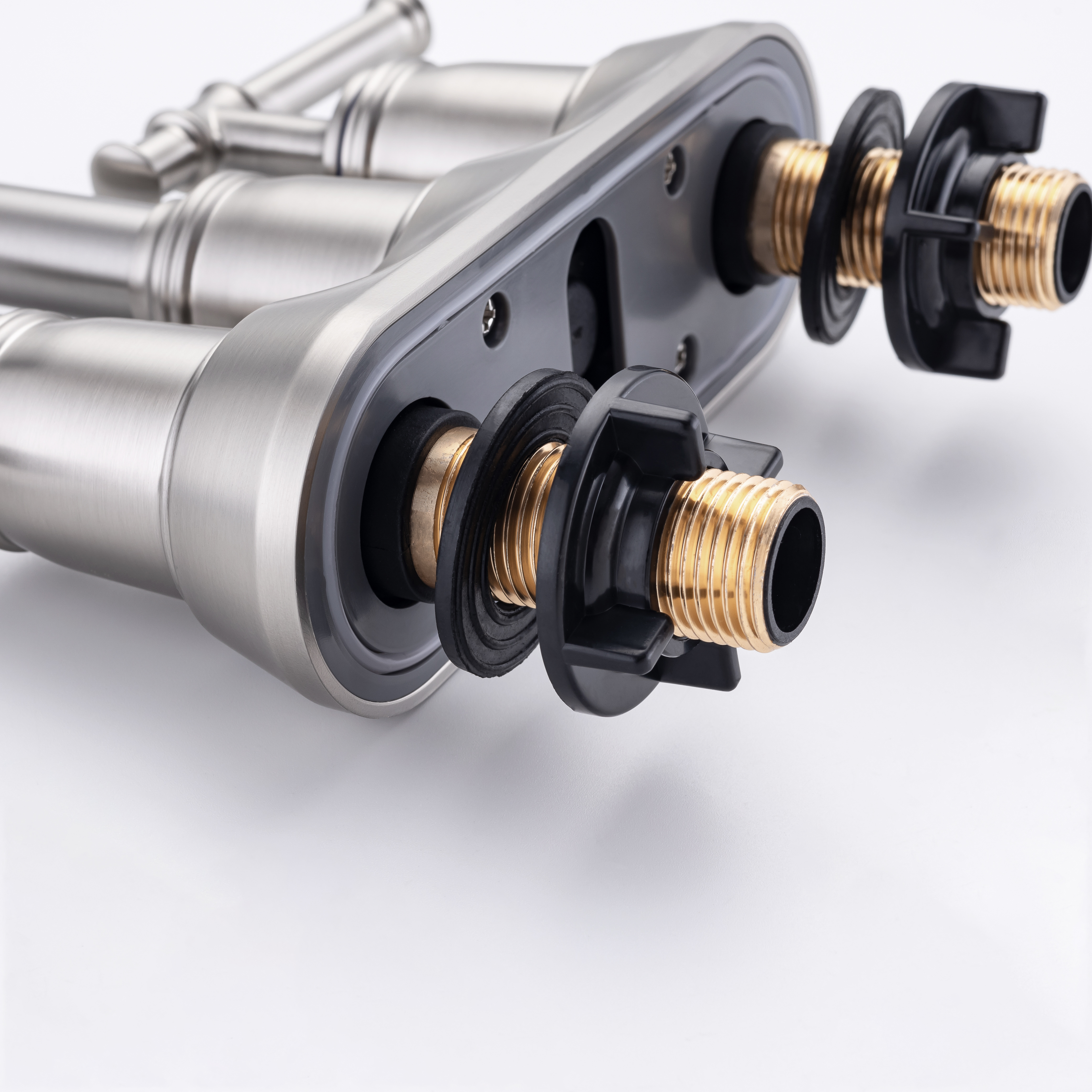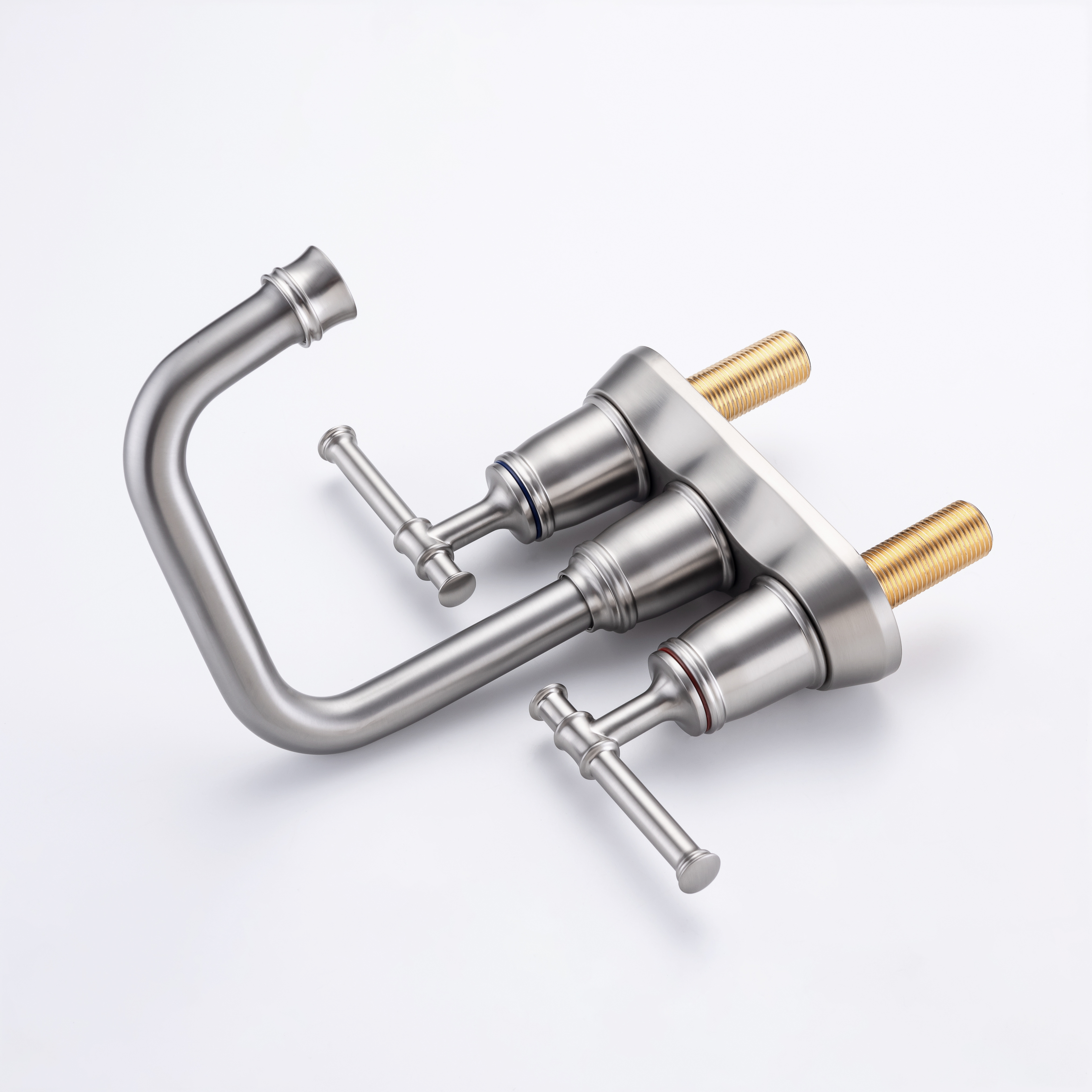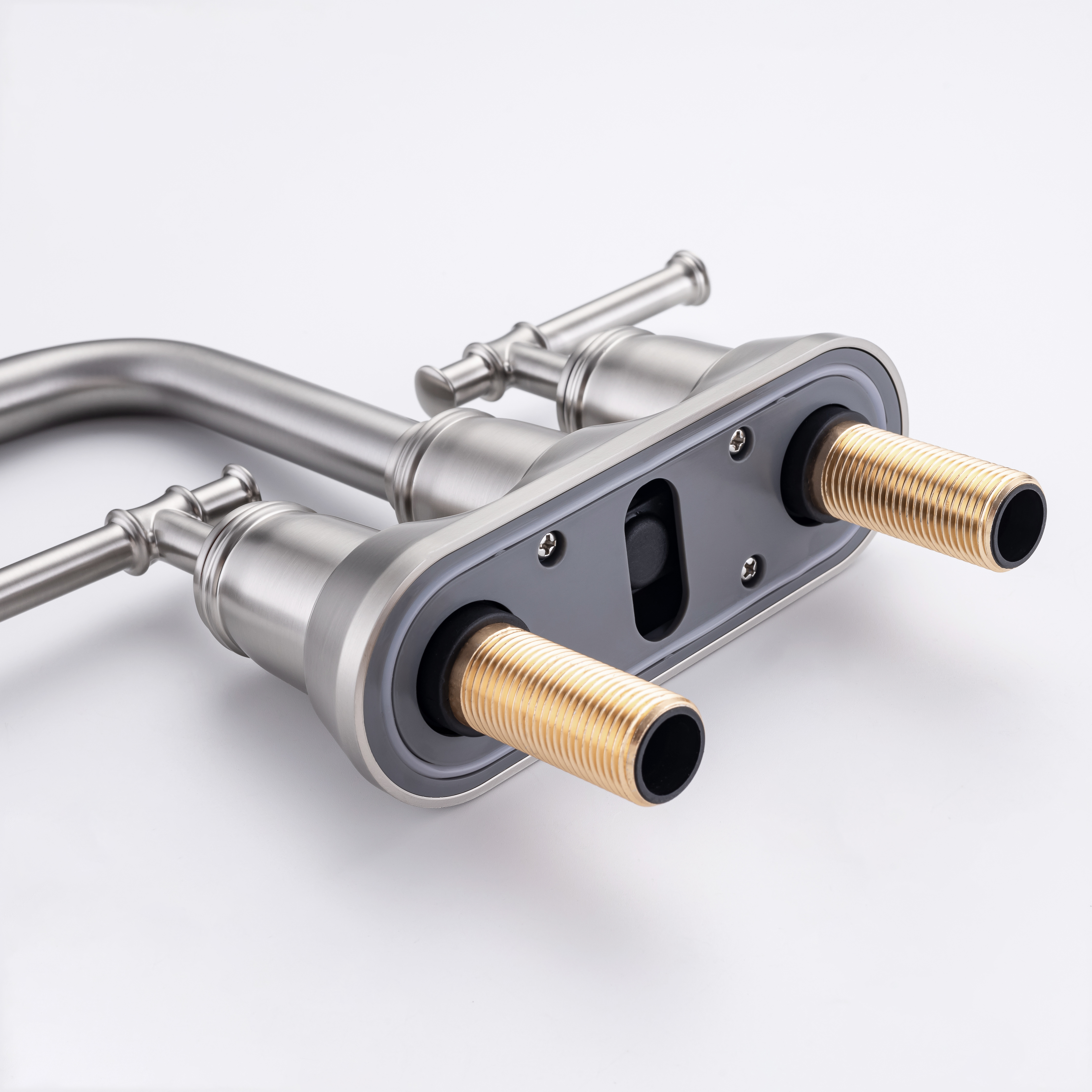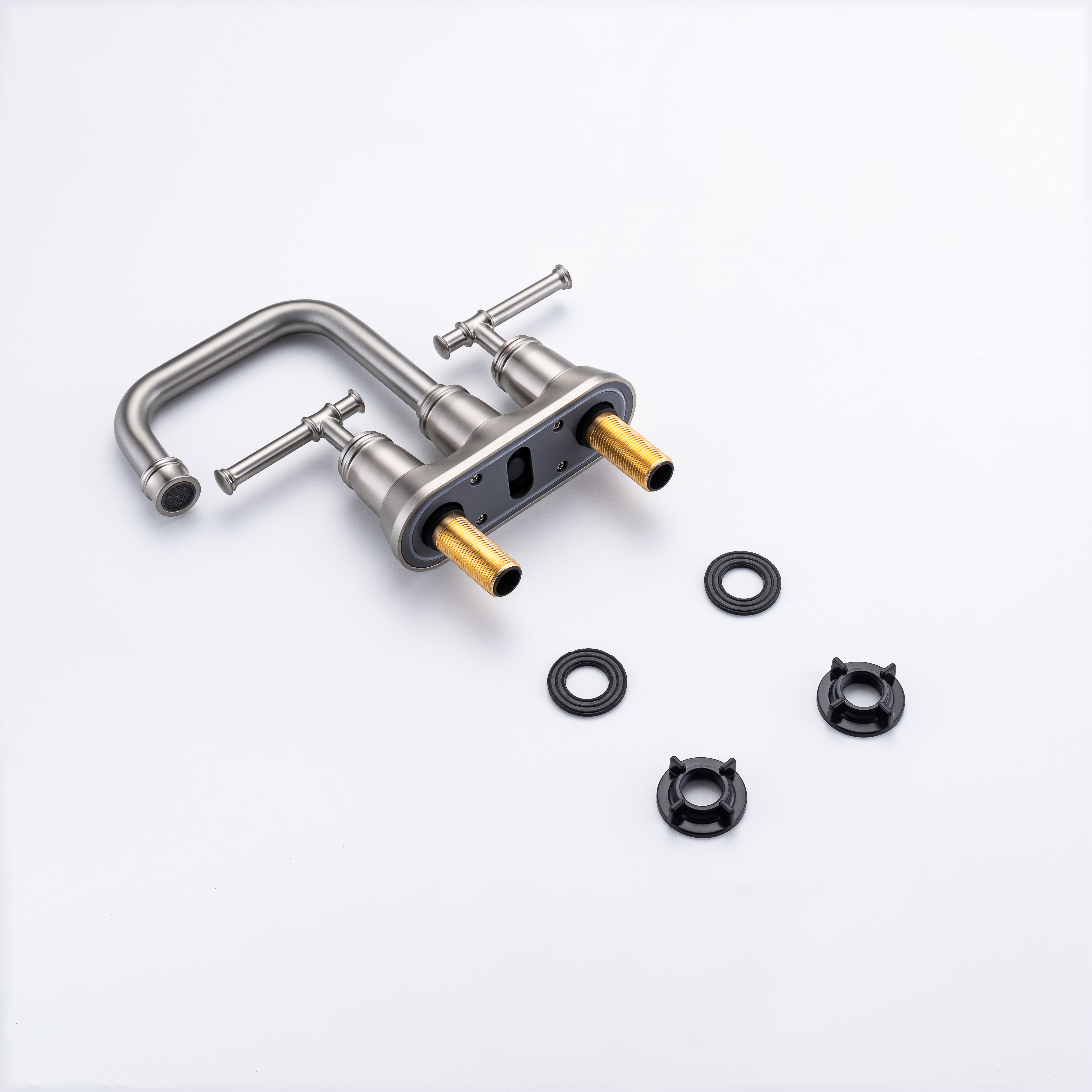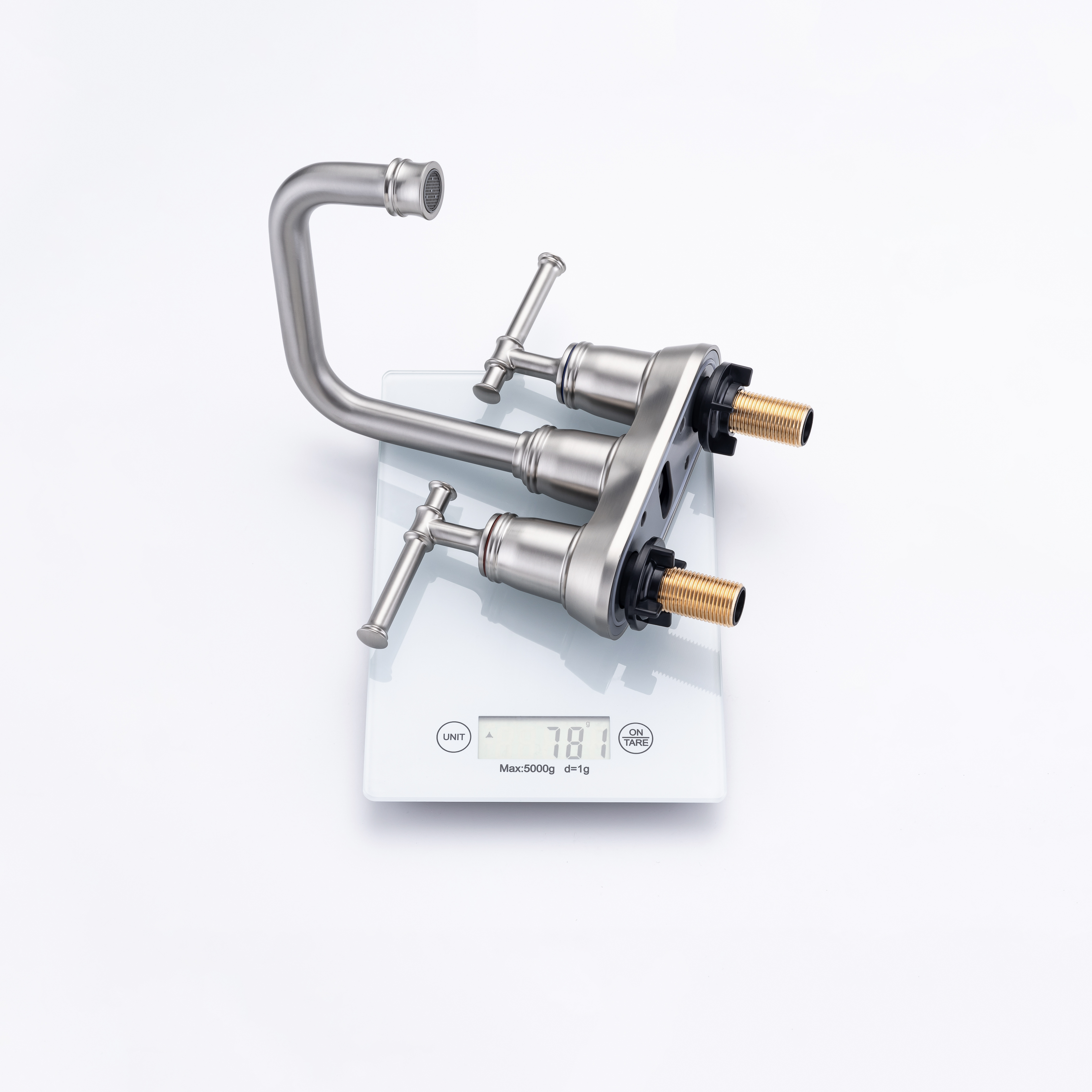 Vintage vanity faucet: Exquisite Centerset bathroom faucet in brushed nickel finish, shiny surface, anti-scratch, non-corrosion, no water spot and fingerprint.