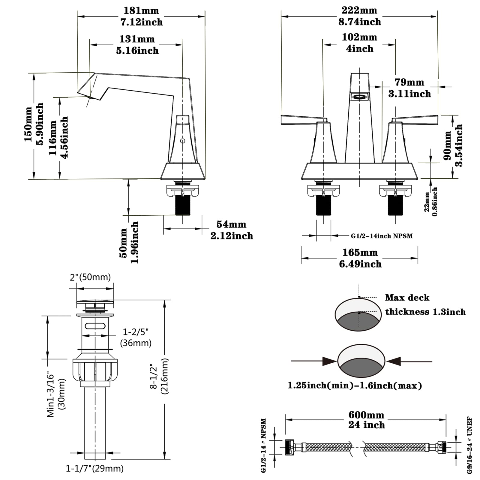 Installation ❤ —— Installation is easier than ever with the supwork two handle bathroom faucet mounting assembly. Mounts the faucet tightly to the deck, helping prevent the lavatory faucet from loosening over time. Easily installs on decks up to 2-1/2 In. thick, like granite or quartz. Whether you’re a first timer just learning how to install a faucet or a seasoned installation professional, save your back and your knees with the supwork bathroom mounting assembly.