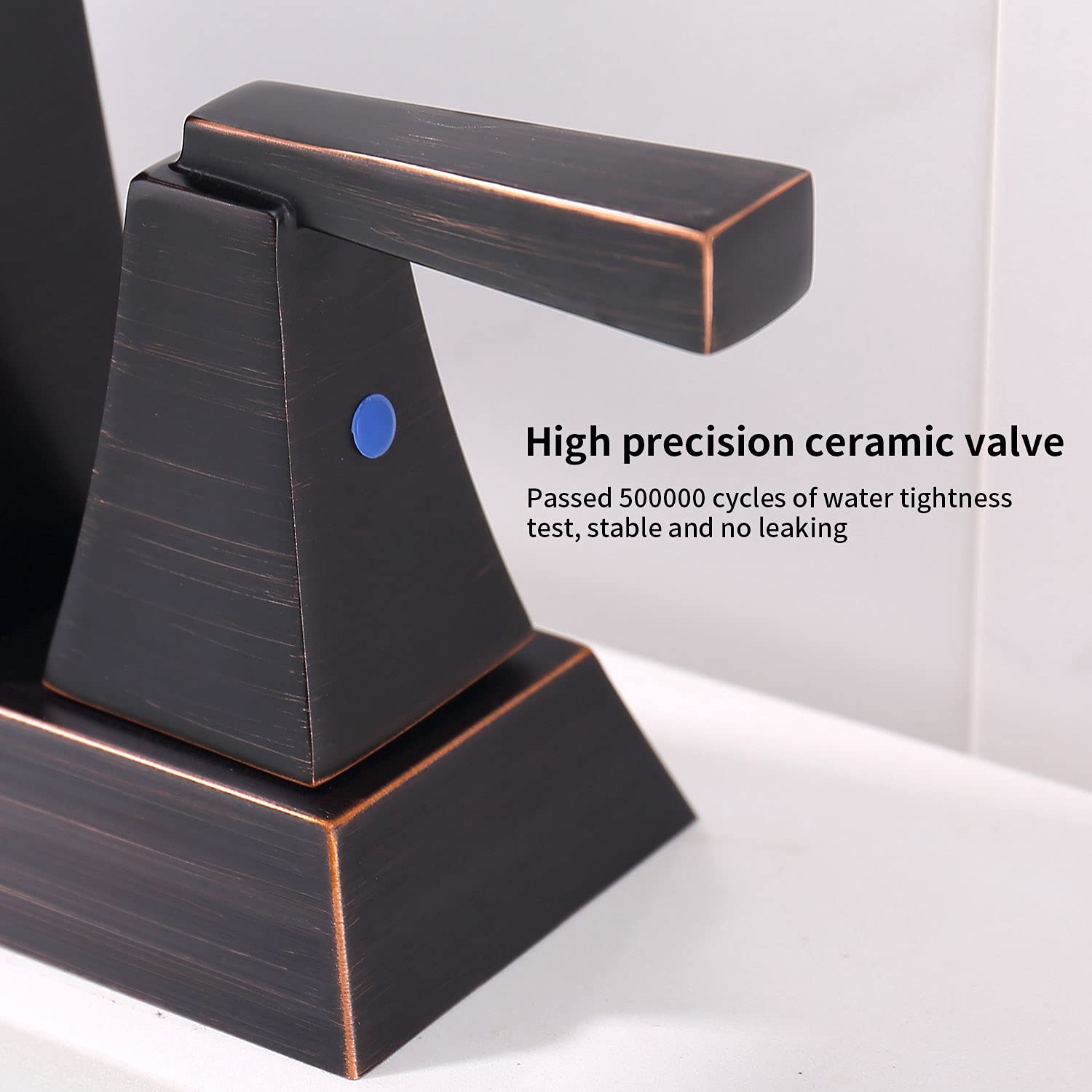 Premium material ❤ —— Bathroom faucet oil rubbed bronze use seal technology with ceramic disc, requires no lubrication and eliminates wear on seals for life which reduces leak points, is less hassle to install and lasts twice as long as the industry standard. You can install with confidence. Built to last, the bathroom faucet has a gloss finish. Use it every day. Clean it as you wish. You'll never scrub or wear off the beauty of a finish. Bathroom faucets finish won't tarnish or flake.