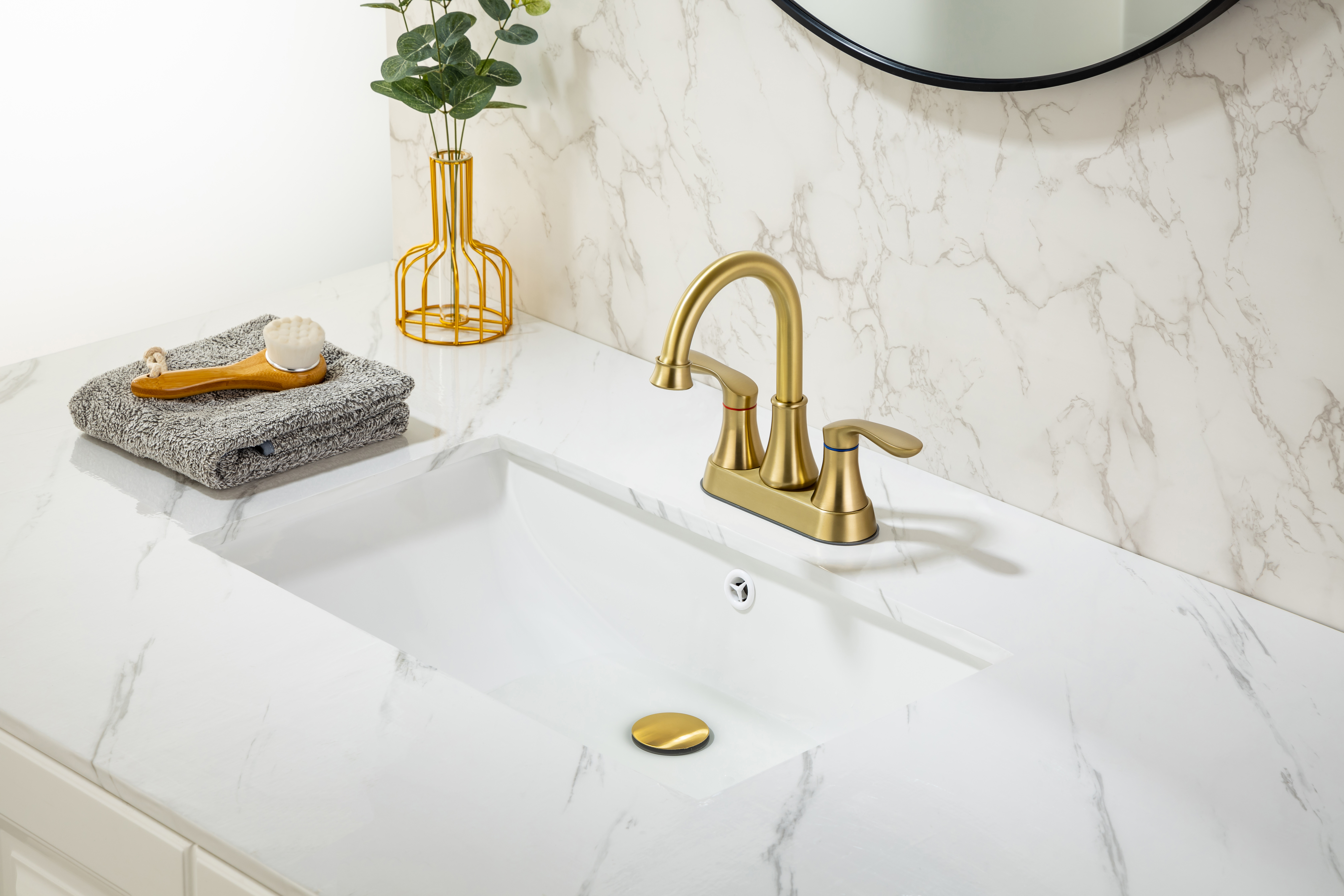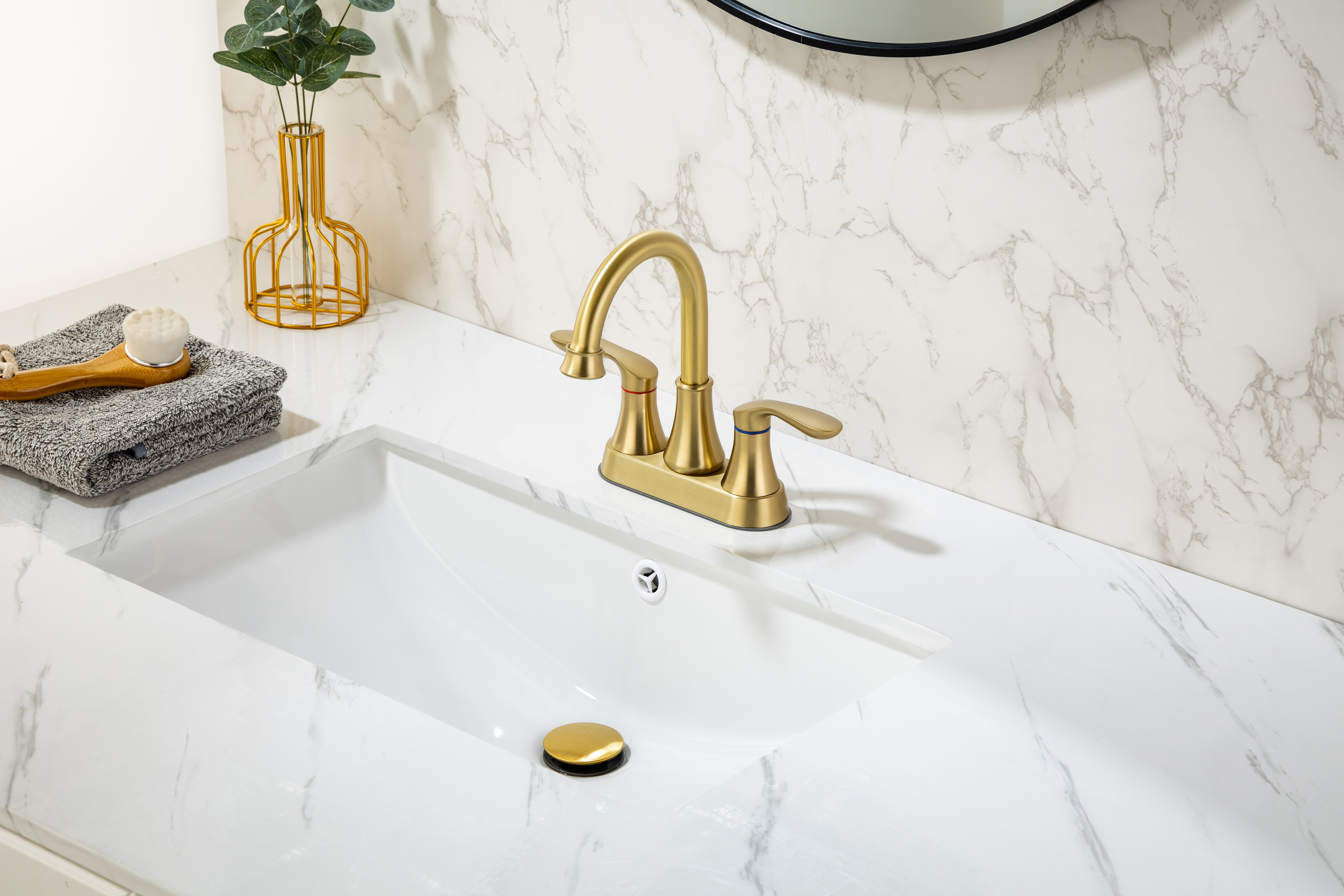 3-hole mount with 4-inch centerset design and only 3 parts sink drain stopper for quick and easy installation.