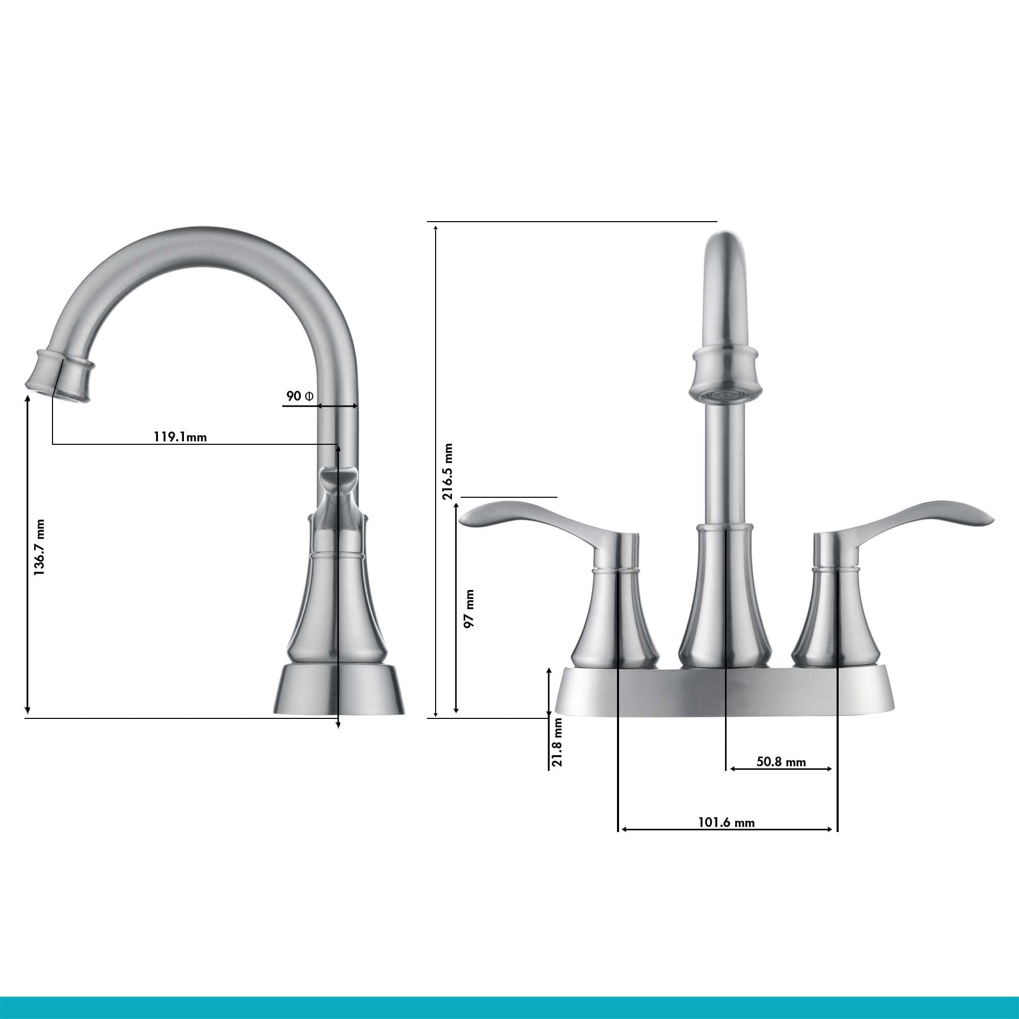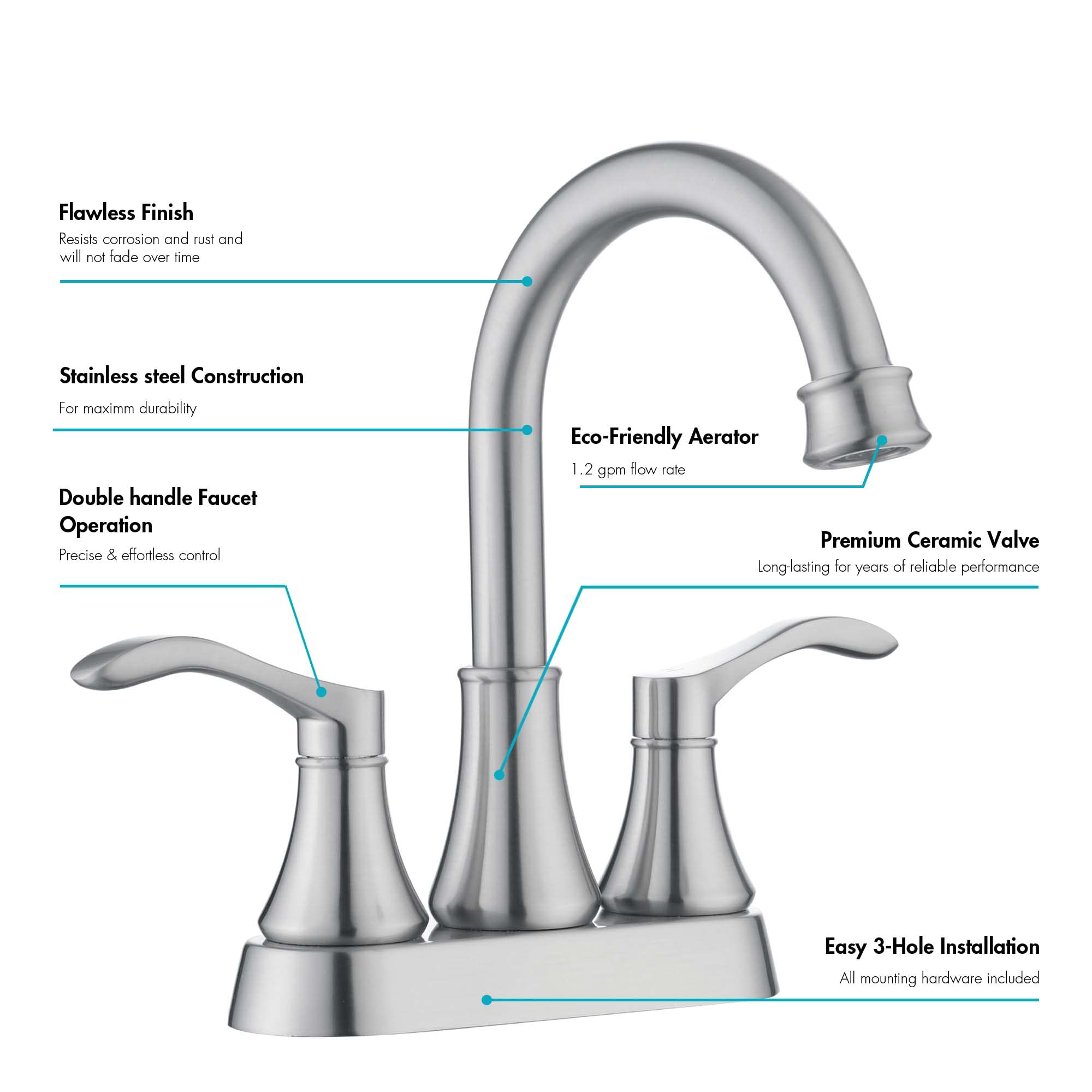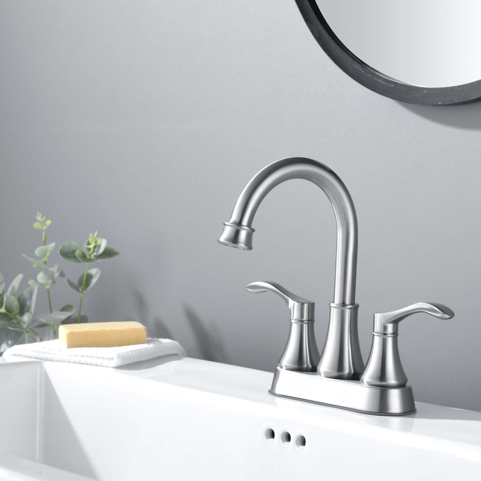 Mounting Type Deck Mount Finish Type Brushed Material Stainless Steel Color Brushed Nickel Number of Handles 2 Included Components 2 Handles Bathroom Sink Faucet, Brushed Nickel Centerset RV Bathroom Faucets for 3 Hole, with Stainless Steel Pop Up Drain Sets Number Of Holes 3 Handle Type Lever Style Faucet Installation Method Centerset Handle Material Stainless Steel Item Weight 3.97 pounds Product Dimensions 14.57 x 11.02 x 4.13 inches Finish Brushed Item Package Quantity 1 Batteries Included? No Batteries Required?