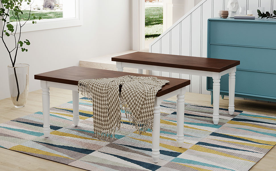Complete with 2 long benches, this dining bench set is perfect for seating up to 4 people. Intricately carved legs decorate your home with a tasteful farmhouse styles. Enjoy your dinner or have a drink in the afternoon or start a nice morning with these retro dining benches.