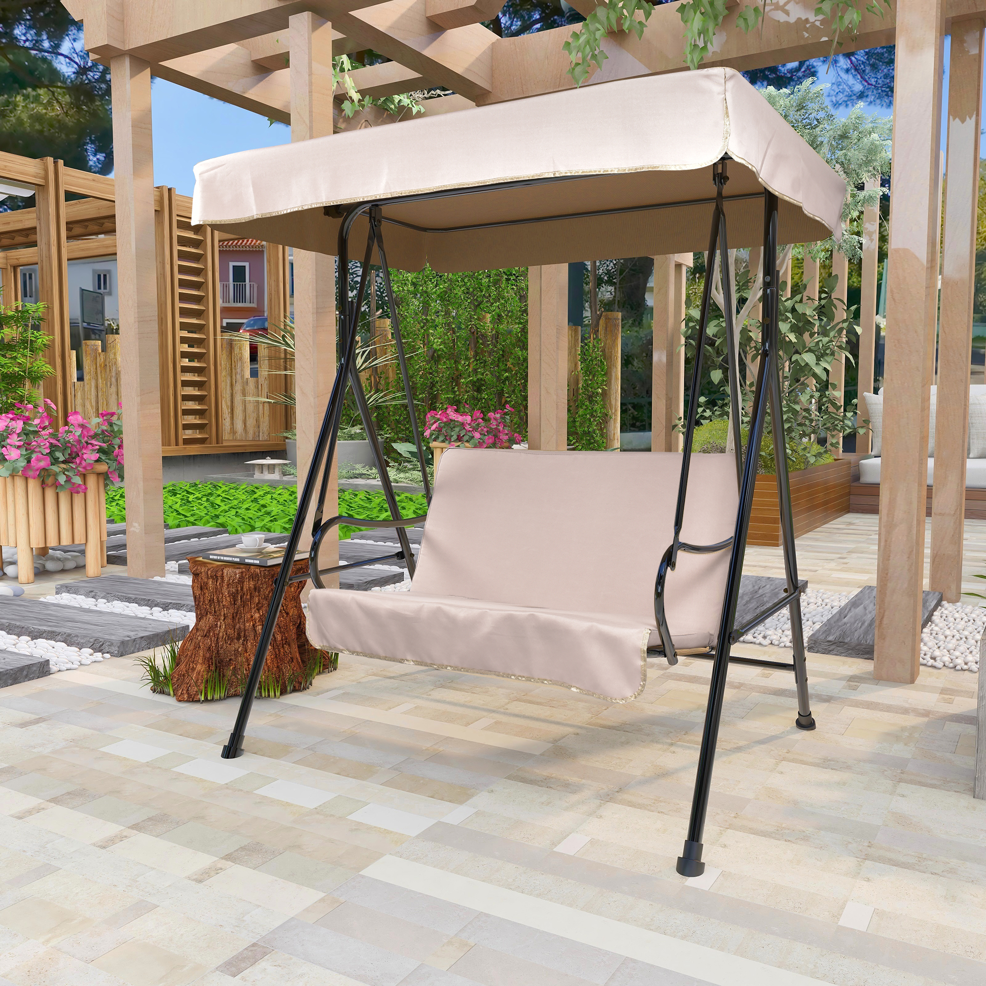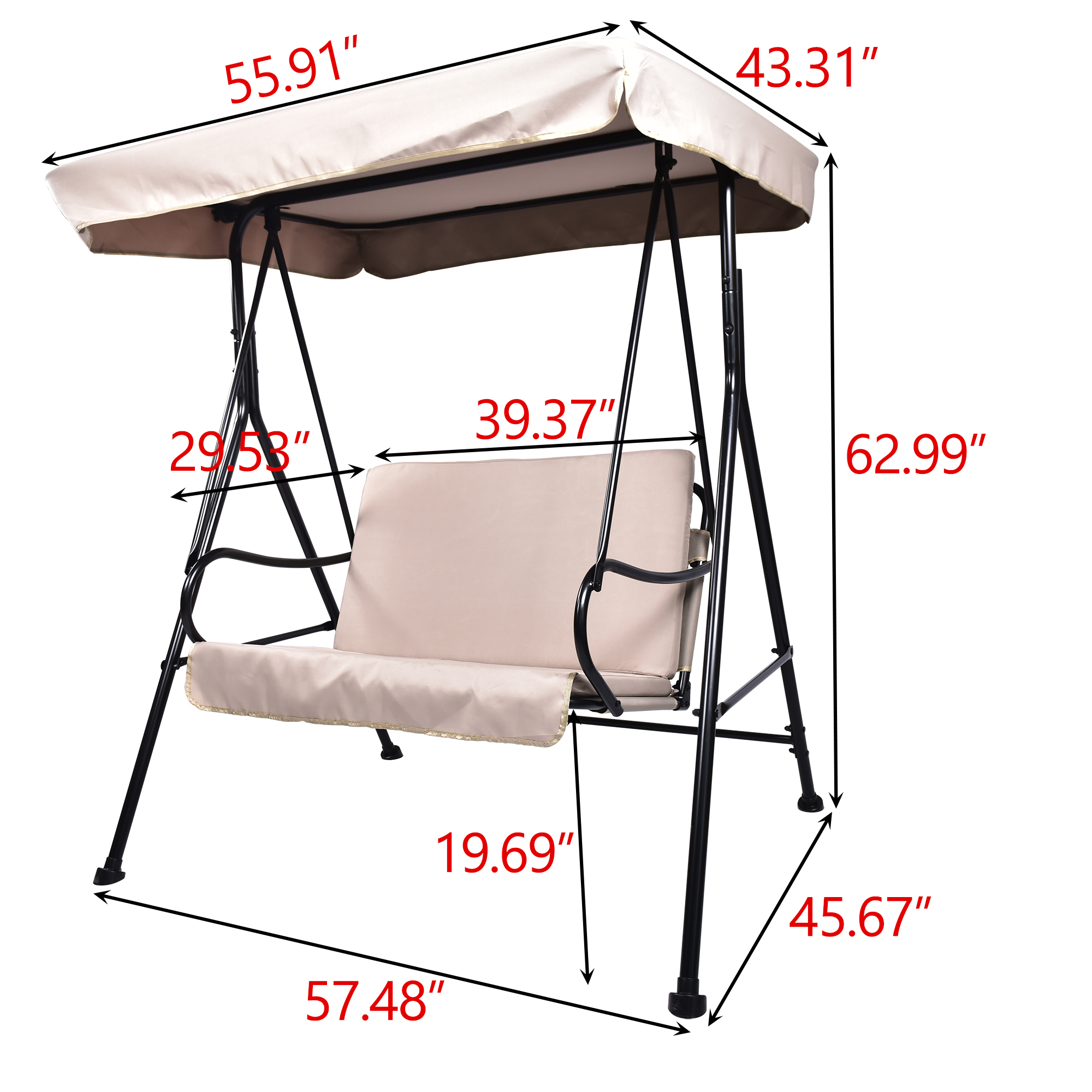 2-Seat Outdoor Patio Porch Swing Chair, Porch Lawn Swing With Removable Cushion And Convertible Canopy, Beige