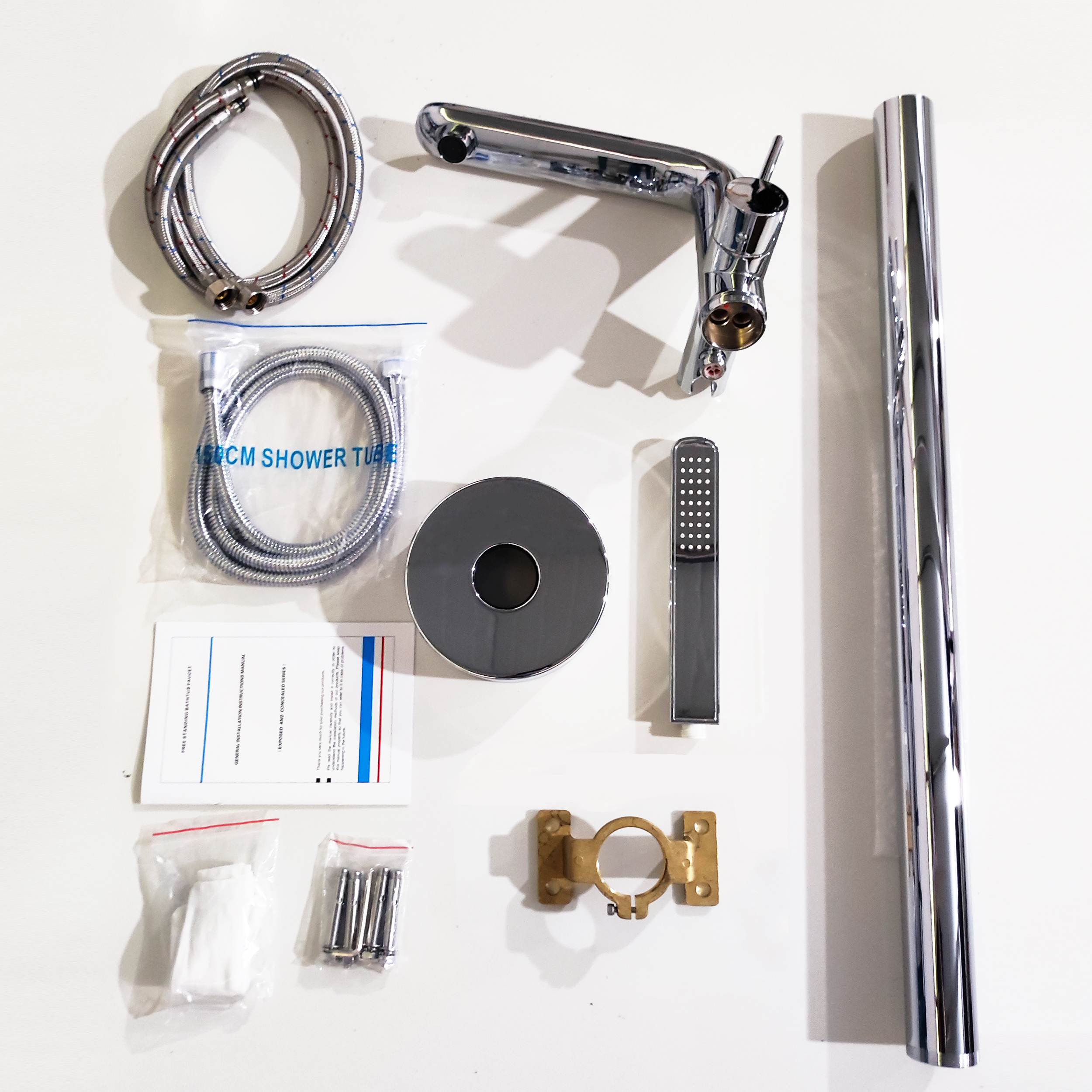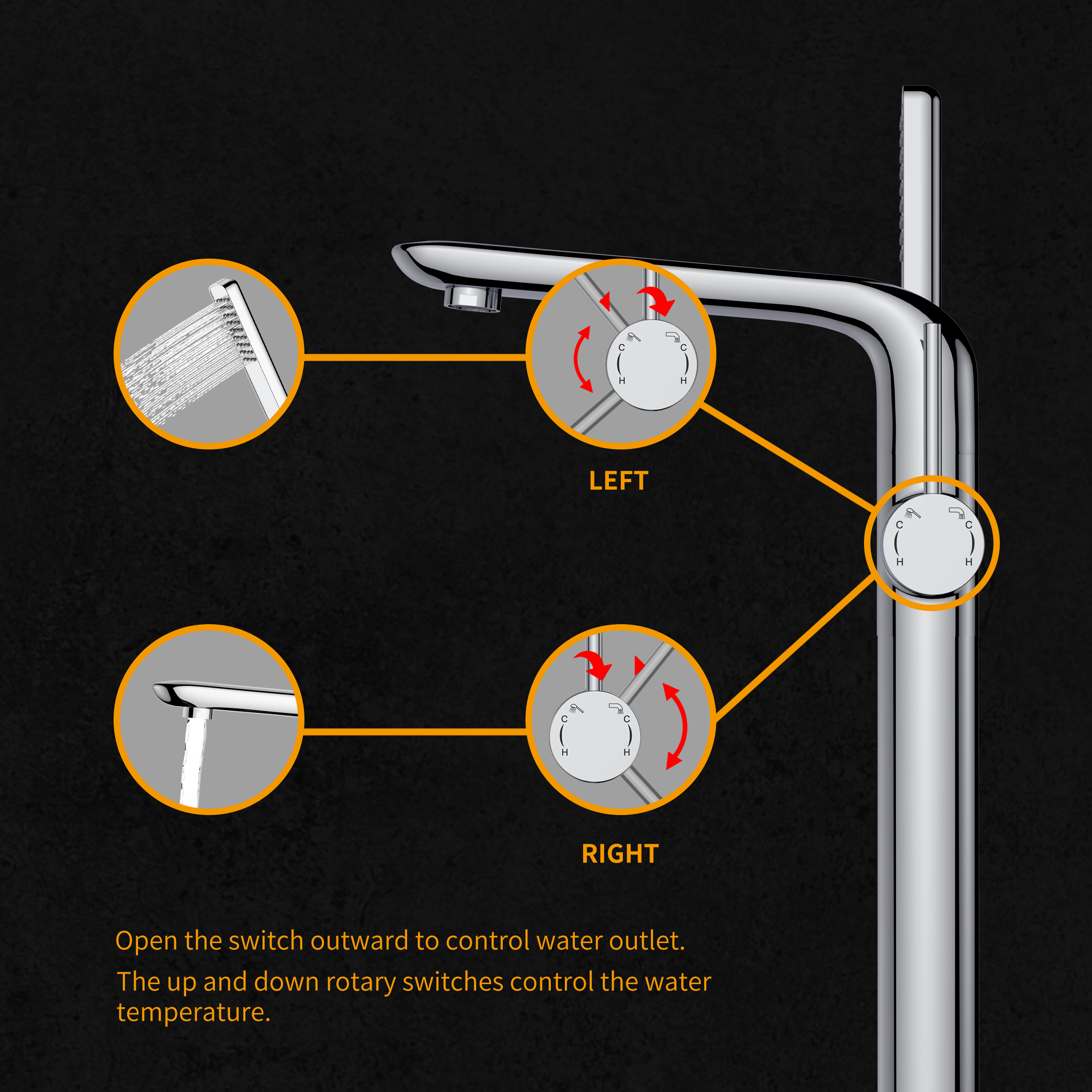 This is a floor-mounted bathtub faucet with modern design, in line with various decoration styles, it can make your bathroom more luxurious, and the bathtub shower experience makes you moreRelax, feel like in a luxury hotel spa, all the accessories are included in our package, you can install and use according to the user manual,As well as NPT 1/2 connectors, compatible with most existing floor tub faucets.