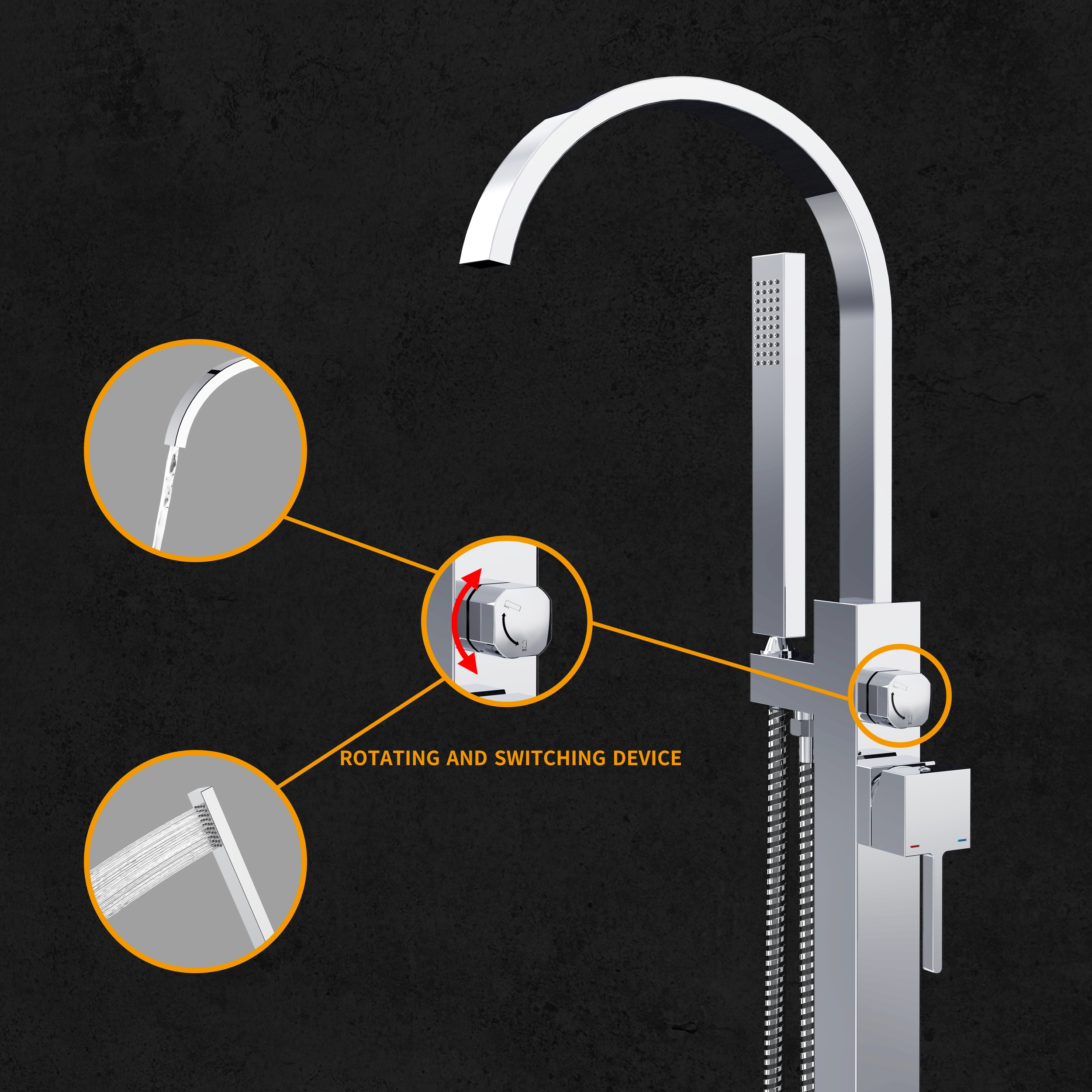 2 spouts with hand shower Double Handle Floor Mounted Clawfoot Tub Faucet,Chrmoe