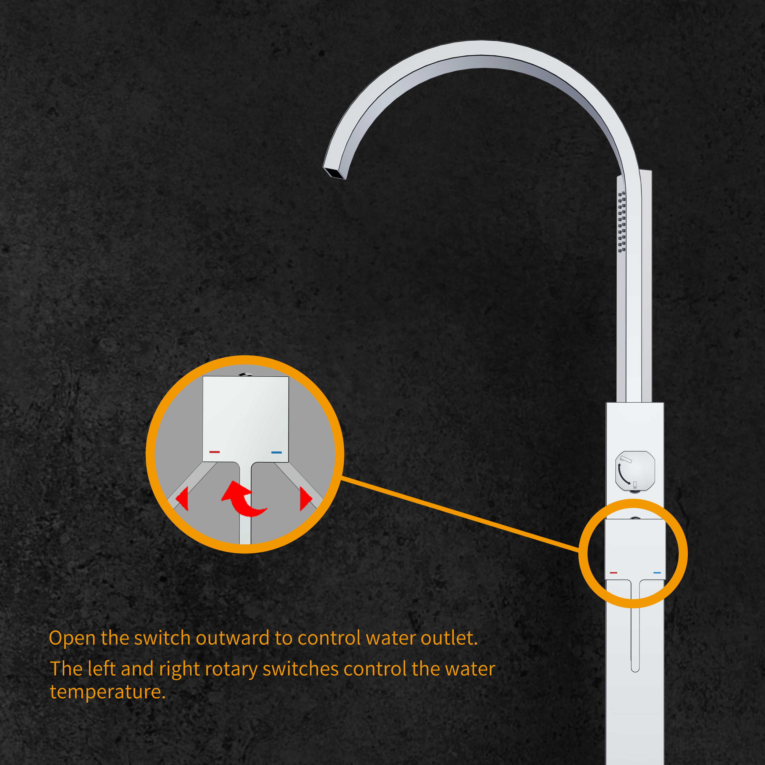 This is a floor-mounted bathtub faucet with modern design, in line with various decoration styles, it can make your bathroom more luxurious, and the bathtub shower experience makes you moreRelax, feel like in a luxury hotel spa, all the accessories are included in our package, you can install and use according to the user manual,As well as NPT 1/2 connectors, compatible with most existing floor tub faucets.