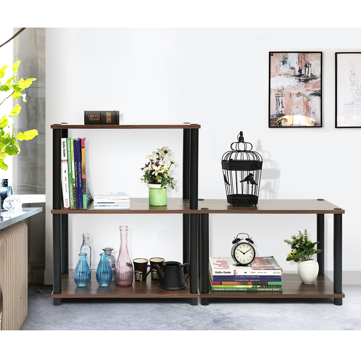 Storage Shelf, End Table, Eye-Catcher: Premium wooden board in brown combines with the black metal frame, this is a trendy furniture in retro design. People will be attracted by it.