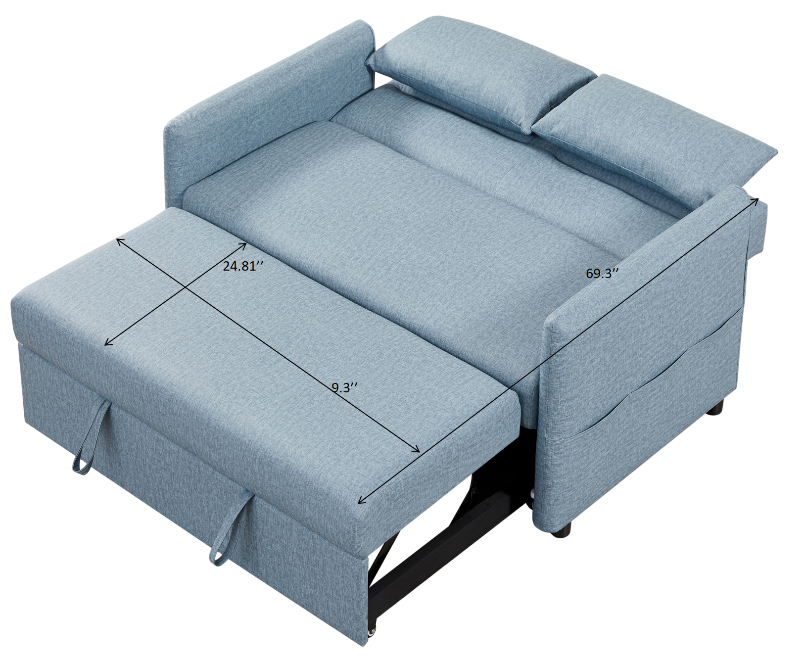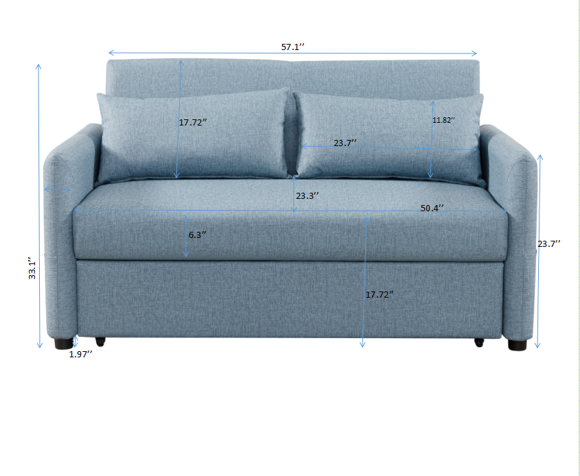 product description feature1: Convertible design: This multifunctional sofa chair bed can be easily and quickly converted into armchairs, visitor chairs and recliners. To meet your various needs, and no longer worry about unexpected visitors, let them have a comfortable bed to sleep in.2: Adjustable and convenient: The folding bed chair has a 3-level adjustable backrest, which can provide a comfortable sitting or lying experience. The convenient strap can be easily pulled out of the broaching part to form a bed.3: Comfortable fabric: The seat cushion filled with high elastic foam and polyester fiber filling can provide a comfortable filling structure, bringing extra comfort and longevity.4: It can be assembled with your friends, it takes about 40 minutes.Material:Fabric: Textured LeatherWooden frame: EucalyptusFeet: plastic rounded corners, metal rubber wheelsChair Product size: 57.1’’*33.9’’*33.1’’Product size of broaching machine: 57.1’’*69.3’’*17.72’’Product net weight: 126.73 poundsChair Packing size: 51.6’’*44.1’’*6.5’’ Gross weight: 56 poundsBroaching machine packaging size: 50.4’’*33.7’’*13.8’’ Gross weight: 90.4 poundsWeight bearing: 500lbs2 boxes/set