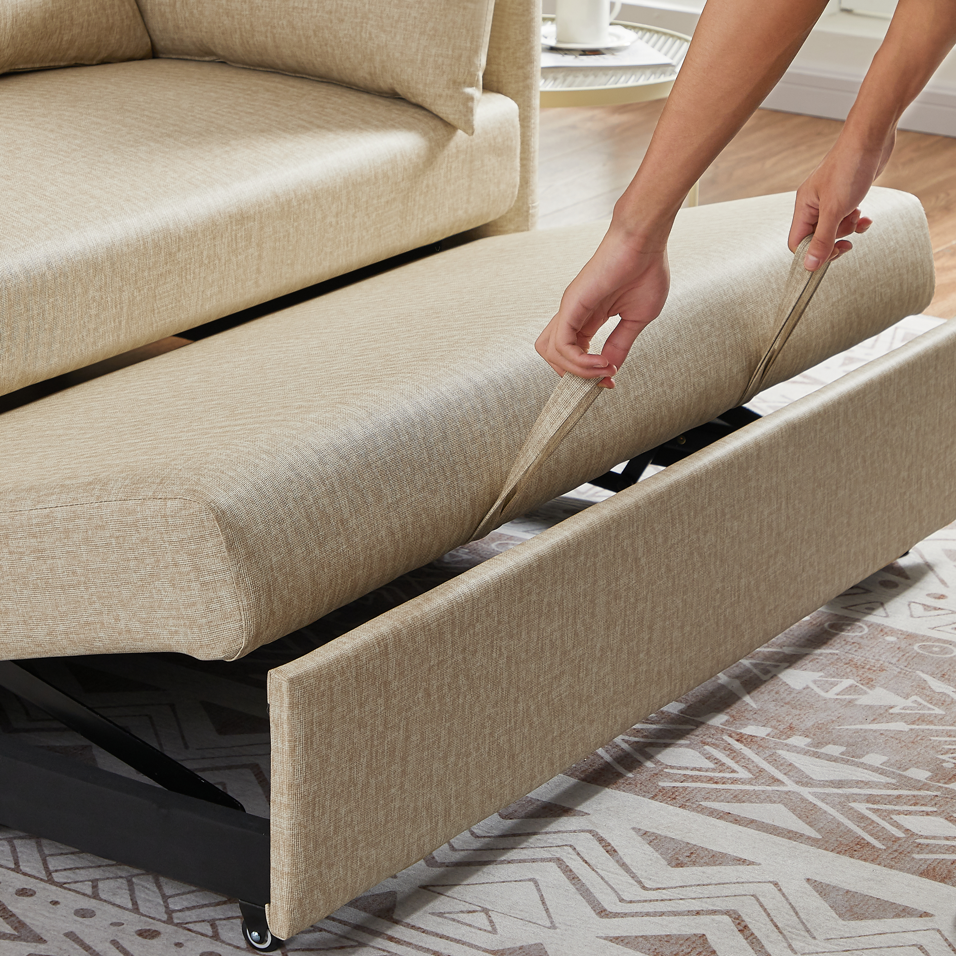 1: Convertible design: This multifunctional sofa chair bed can be easily and quickly converted into armchairs, visitor chairs and recliners. To meet your various needs, and no longer worry about unexpected visitors, let them have a comfortable bed to sleep in.